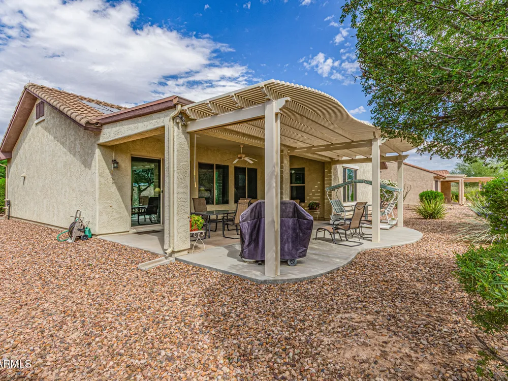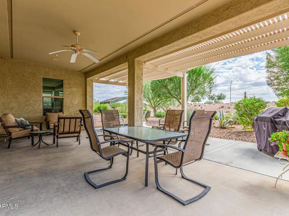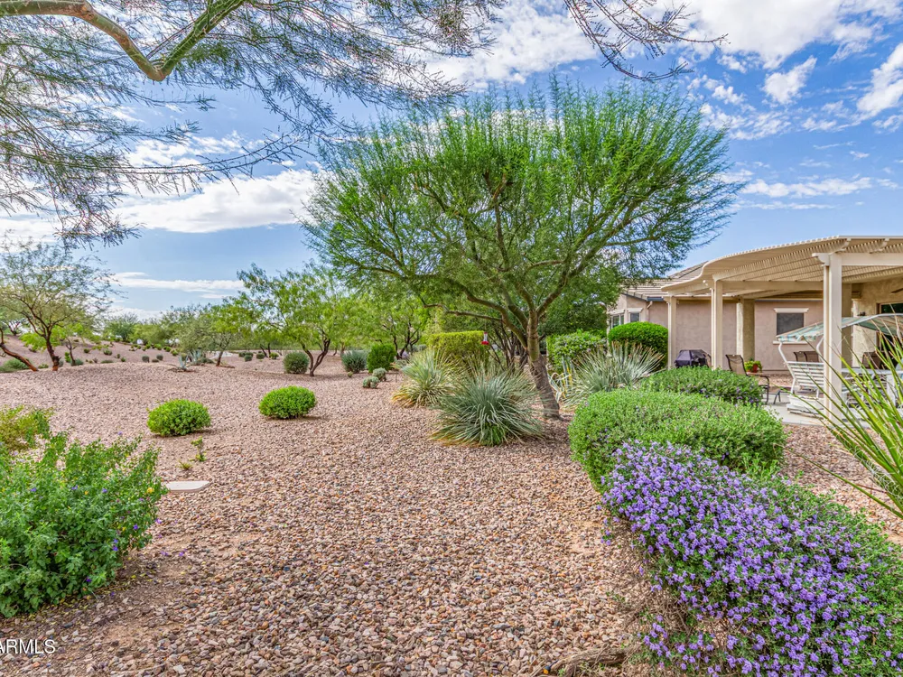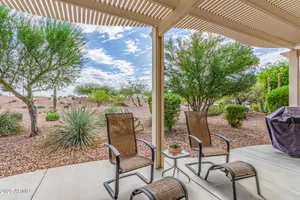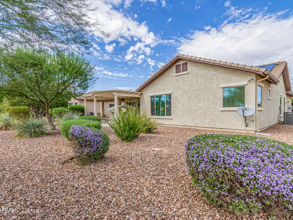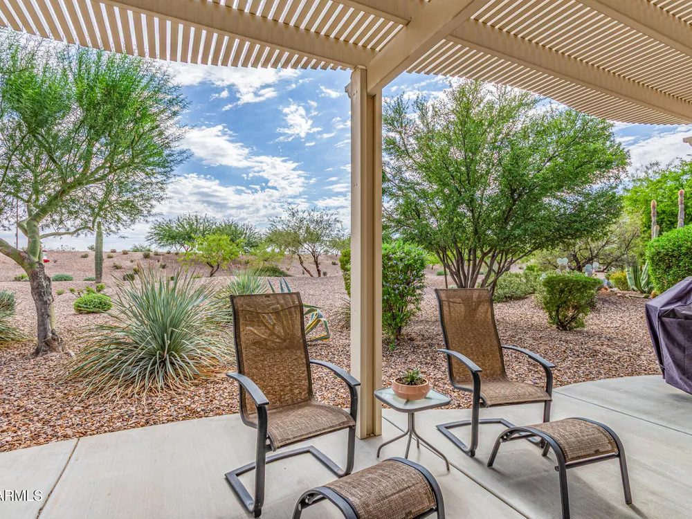 LIVE YOUR RETIREMENT DREAMS!! They don't build 'em like this thoughtfully designed Concord anymore! The FULL 3-CAR GARAGE offers 724 SF for all the vacation vehicles. Outdoor living is perfect w/ an extended covered patio & pergola, overlooking peaceful common area! The home features a generous kitchen w/ granite counters, pull-outs, pendants, glass cooktop, staggered raised panel cabinets w/crown molding, double pantry & charming bay window in the breakfast room. Diagonal tile flooring extends thru-out the home, carpet in bedrooms & den. Enjoy the oversized Primary Suite w/ double vanity + makeup vanity, tiled shower & soaking tub for total relaxation. Functional laundry room is fully equipped w/ upper/lower cabinets, utility/coat closet. Energy savings w/ Solar! This home offers it all! Sun City Anthem at Merrill Ranch offers a 48,000 SF recreation center w/ craft rooms for quilting, pottery, glass works, jewelry & crafts, spacious ballroom w/ stage for dancing, theatrical productions, concerts & more. PLUS full gym, work out rooms, indoor lap pool & spa, walking track, cafe area, card rooms, poker tables, pool table, ping pong table, business center, class room for interesting seminars! Troon Poston Butte Golf Course is one of the nicest in the area. Sun City offers Pickleball, Tennis, Bocce Ball, Horseshoes, Shuffleboard, clubs for all activities.......LIVE WHERE THE SURROUNDINGS DELIGHT, INSPIRE & CHALLENGE YOU!