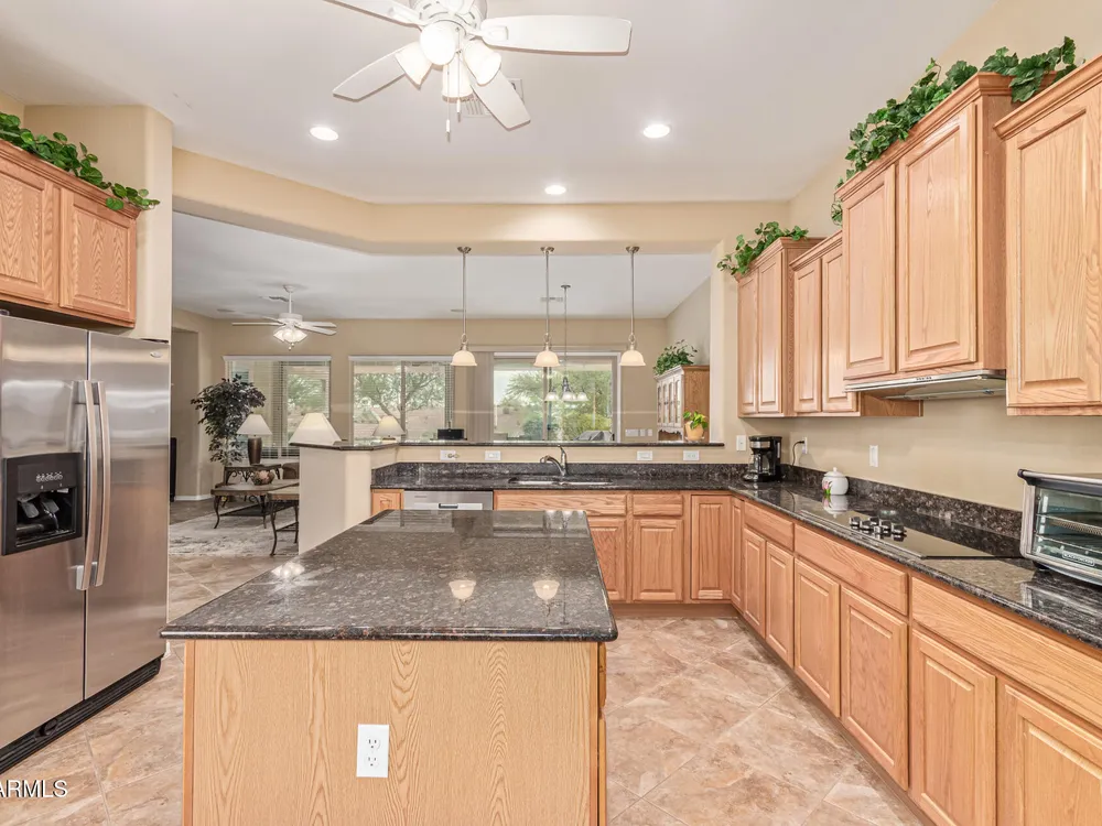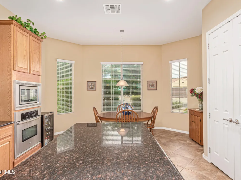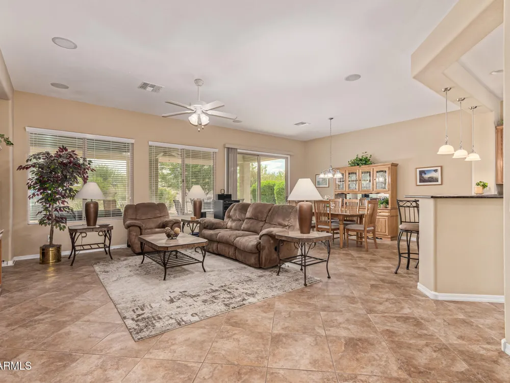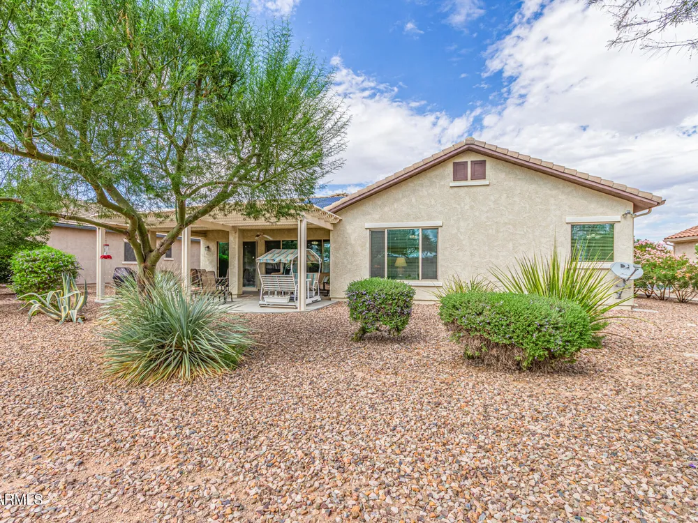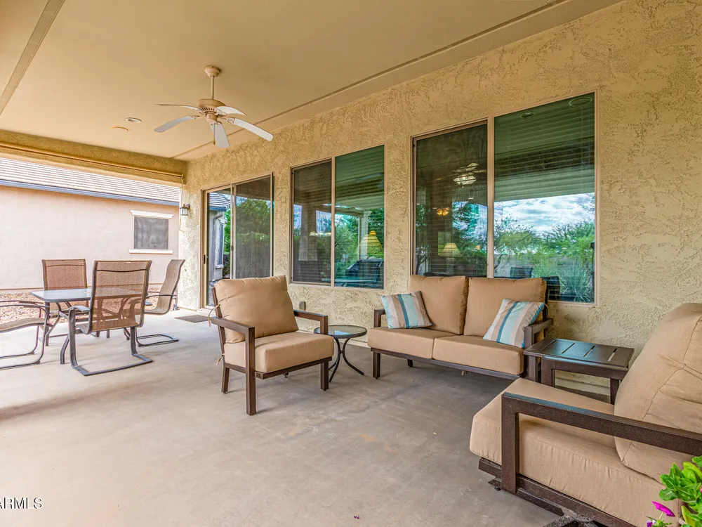 LIVE YOUR RETIREMENT DREAMS!! They don't build 'em like this thoughtfully designed Concord anymore! The FULL 3-CAR GARAGE offers 724 SF for all the vacation vehicles. Outdoor living is perfect w/ an extended covered patio & pergola, overlooking peaceful common area! The home features a generous kitchen w/ granite counters, pull-outs, pendants, glass cooktop, staggered raised panel cabinets w/crown molding, double pantry & charming bay window in the breakfast room. Diagonal tile flooring extends thru-out the home, carpet in bedrooms & den. Enjoy the oversized Primary Suite w/ double vanity + makeup vanity, tiled shower & soaking tub for total relaxation. Functional laundry room is fully equipped w/ upper/lower cabinets, utility/coat closet. Energy savings w/ Solar! This home offers it all! Sun City Anthem at Merrill Ranch offers a 48,000 SF recreation center w/ craft rooms for quilting, pottery, glass works, jewelry & crafts, spacious ballroom w/ stage for dancing, theatrical productions, concerts & more. PLUS full gym, work out rooms, indoor lap pool & spa, walking track, cafe area, card rooms, poker tables, pool table, ping pong table, business center, class room for interesting seminars! Troon Poston Butte Golf Course is one of the nicest in the area. Sun City offers Pickleball, Tennis, Bocce Ball, Horseshoes, Shuffleboard, clubs for all activities.......LIVE WHERE THE SURROUNDINGS DELIGHT, INSPIRE & CHALLENGE YOU!