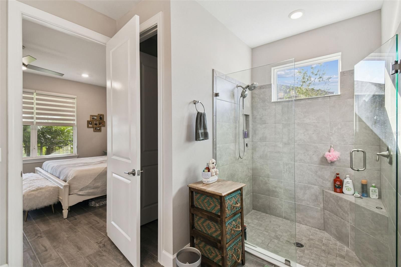 - Ceiling Fan(s), Living/Dining Room, Open Floorplan, Main Level Primary, Stone Counters, Thermostat, Walk-In Closet(s), Window Treatments