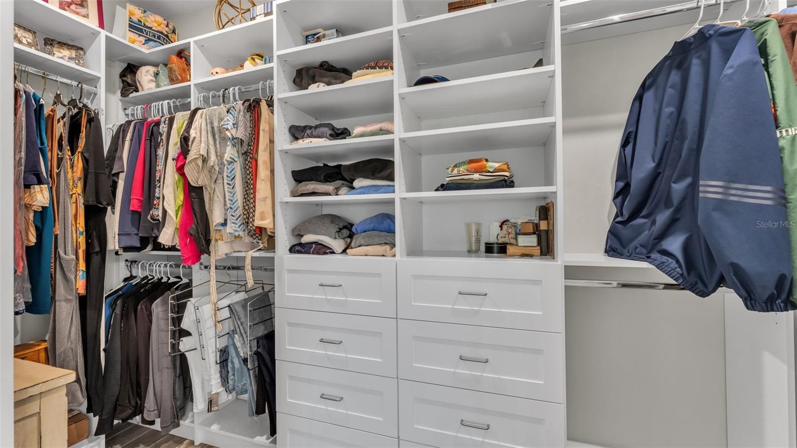 - Ceiling Fan(s), High Ceilings, Open Floorplan, Main Level Primary, Split Bedrooms, Stone Counters, Thermostat, Tray Ceiling(s), Walk-In Closet(s), Window Treatments