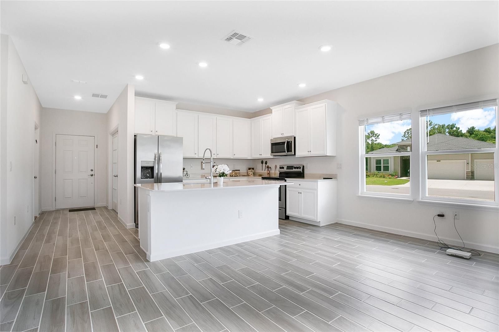 One or more photo(s) has been virtually staged. Exceptional Value in Ocala – Move-In Ready Under $300K! Welcome to this like-new Halle Model home, completed in July 2023, located in one of Ocala’s premier 55+ communities. With a motivated seller ready to consider all reasonable offers, this is an unbeatable opportunity for active adult buyers seeking quality, comfort, and convenience. 3 Bedrooms | 2 Bathrooms | Study/Den Spacious & Functional Layout: Enjoy 9-foot ceilings, abundant natural light, and recessed LED lighting throughout the open-concept living spaces. Modern Kitchen: Frigidaire appliances, elegant white 42” cabinets with crown molding, and stunning white Carrara Quartz countertops. Stylish Baths: Dual sinks in the primary suite, extra counter space in the guest bath, linen closets, and wood-look tile flooring for a sleek, cohesive design. Interior Laundry: Includes washer, dryer, utility sink, and cabinetry for added storage. Upgrades Galore: Ring Smart Home technology, Smart Eco Irrigation system, and durable wood-look tile throughout main living areas, bathrooms, and laundry. 2-Car Garage: Convenient pull-down attic access for additional storage. Screened-In Lanai: Ideal for relaxing and enjoying Florida’s weather in peace and privacy. Corner Lot: Exclusive homesite with room for a future private pool or personalized outdoor oasis. Community & Lifestyle Highlights Low-Maintenance Living: Low HOA fees with high-speed internet and cable included, no CDD, and lower insurance costs. Resort-Style Amenities: Pool, pickleball, bocce, shuffleboard. Golf Cart & Pet-Friendly: Designed for ease and connection. Peace of Mind: Includes a 10-year structural warranty. Close to Everything You Need: Near Top of the World, Del Webb, medical facilities, parks, trails, golf courses, and just a short drive to the World Equestrian Center, shopping, and dining.