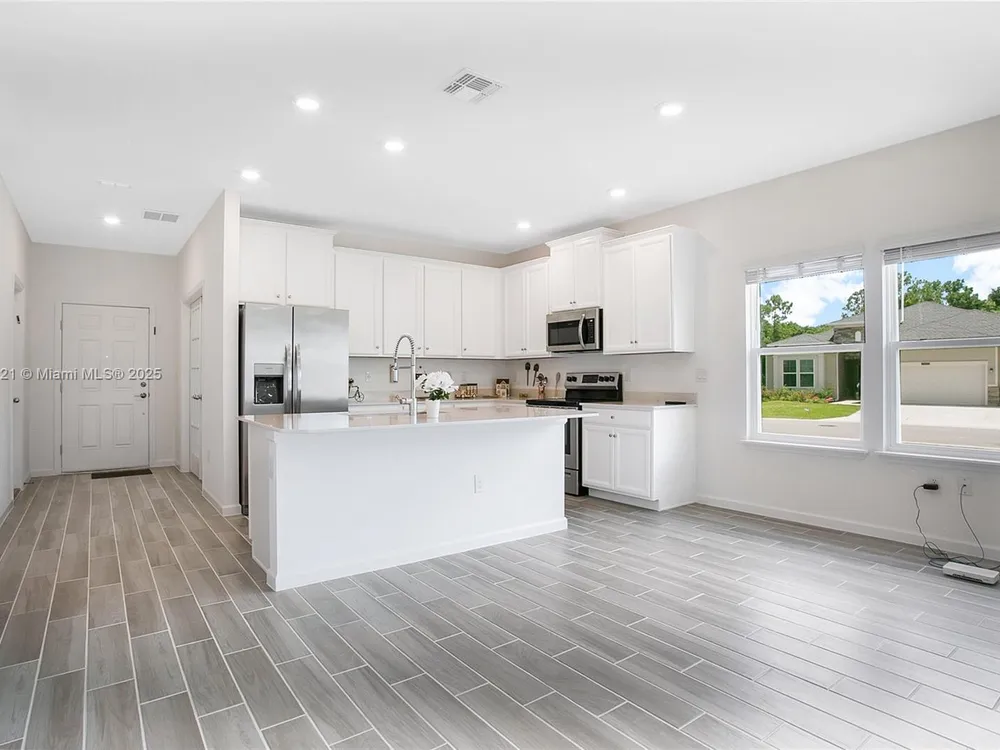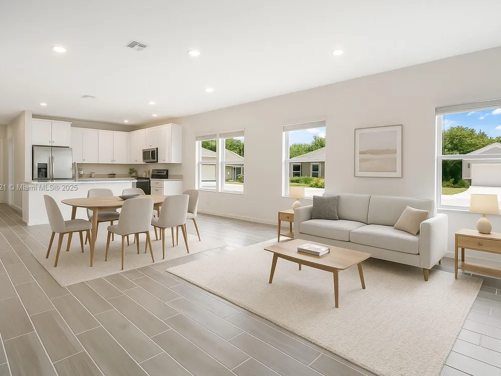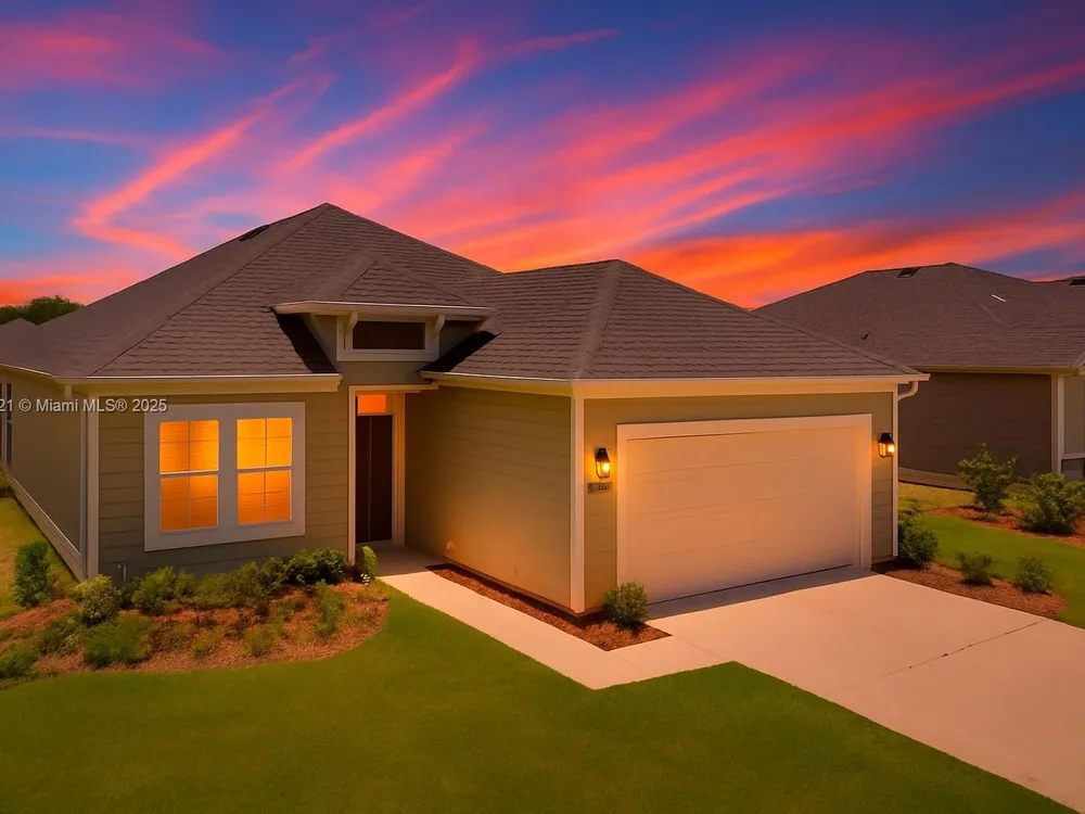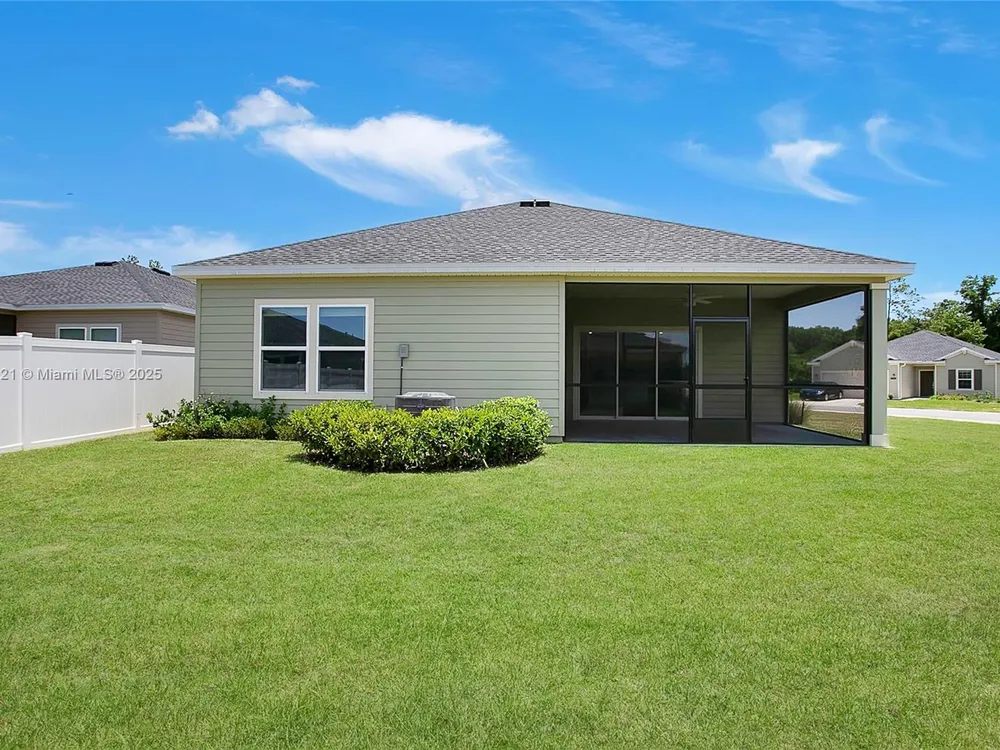 Exceptional Value in Ocala – Move-In Ready Under $300K! This like-new Halle Model, completed July 2023, offers 3 bedrooms, 2 baths, and a versatile den in one of Ocala’s premier 55+ communities. With 9’ ceilings, natural light, and wood-look tile throughout, it blends style and function. The kitchen features Frigidaire appliances, 42” white cabinets, and Carrara quartz counters. Primary suite has dual sinks and walk-in closet. Extras: smart home tech, eco irrigation, laundry w/ washer, dryer & sink, plus 2-car garage w/ attic. Relax in the screened lanai or enjoy the corner lot with room for a pool. Low HOA covers internet/cable; no CDD. Amenities include pool, pickleball, bocce & shuffleboard. Close to shopping, dining, medical, trails & World Equestrian Center. Motivated seller!
