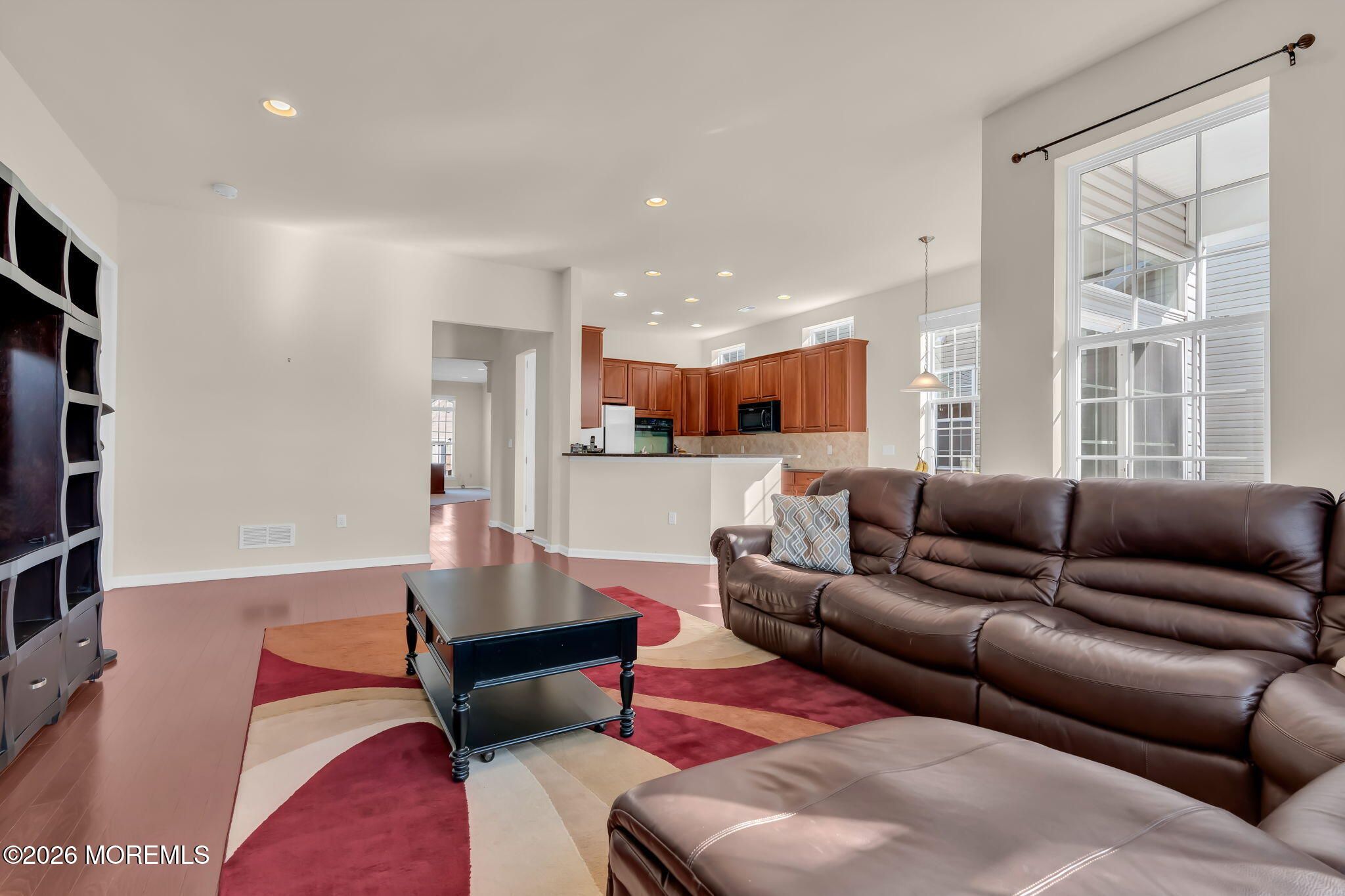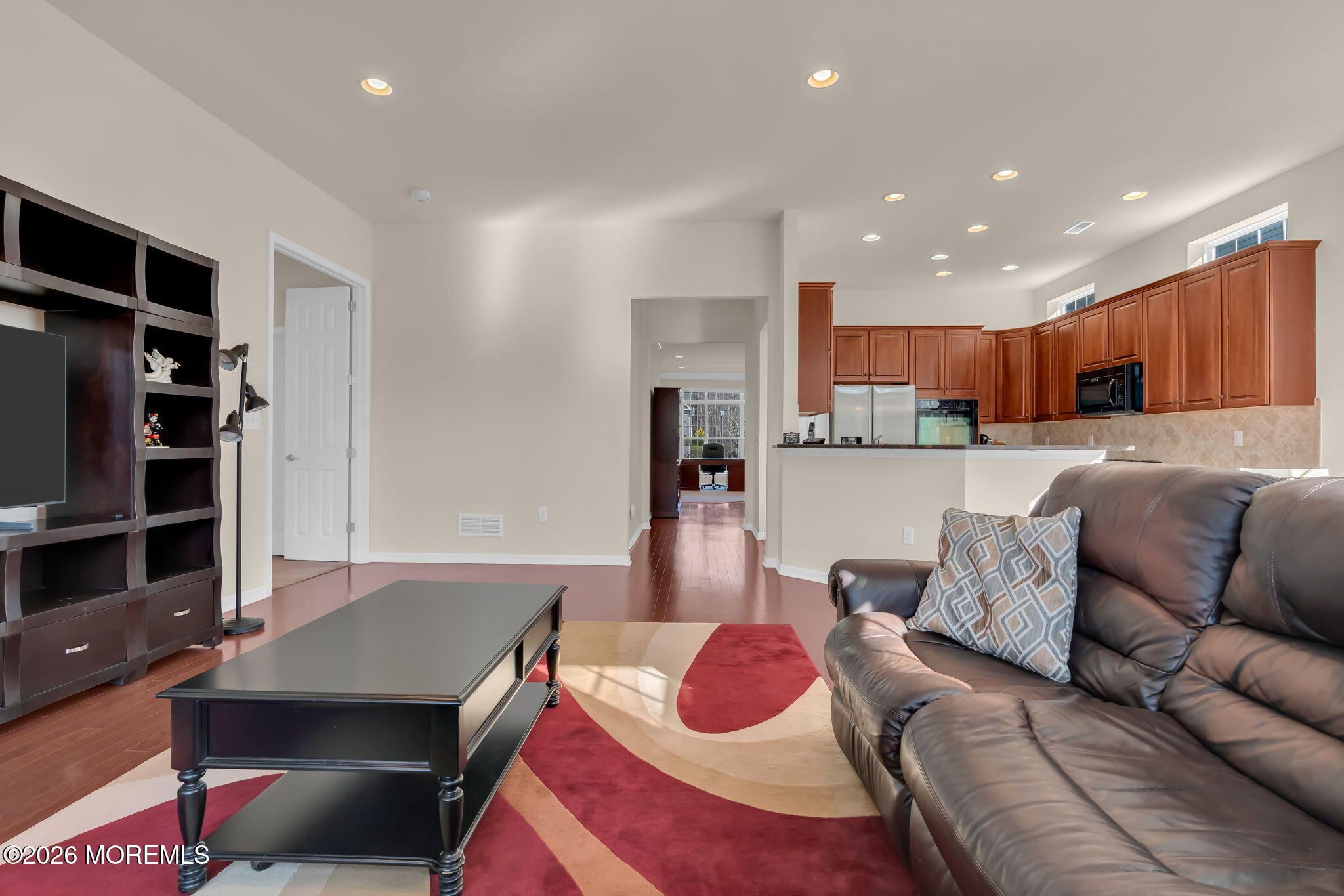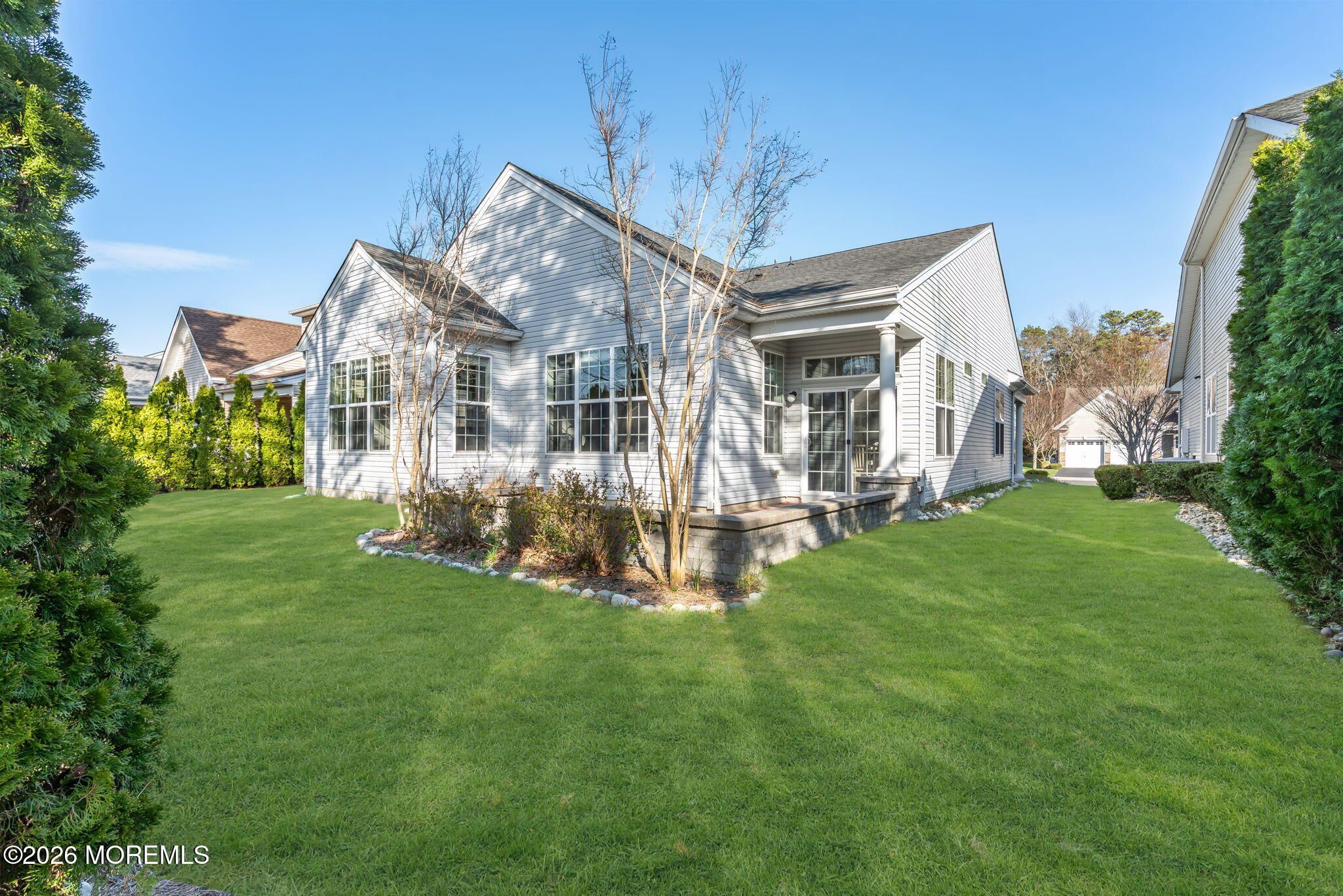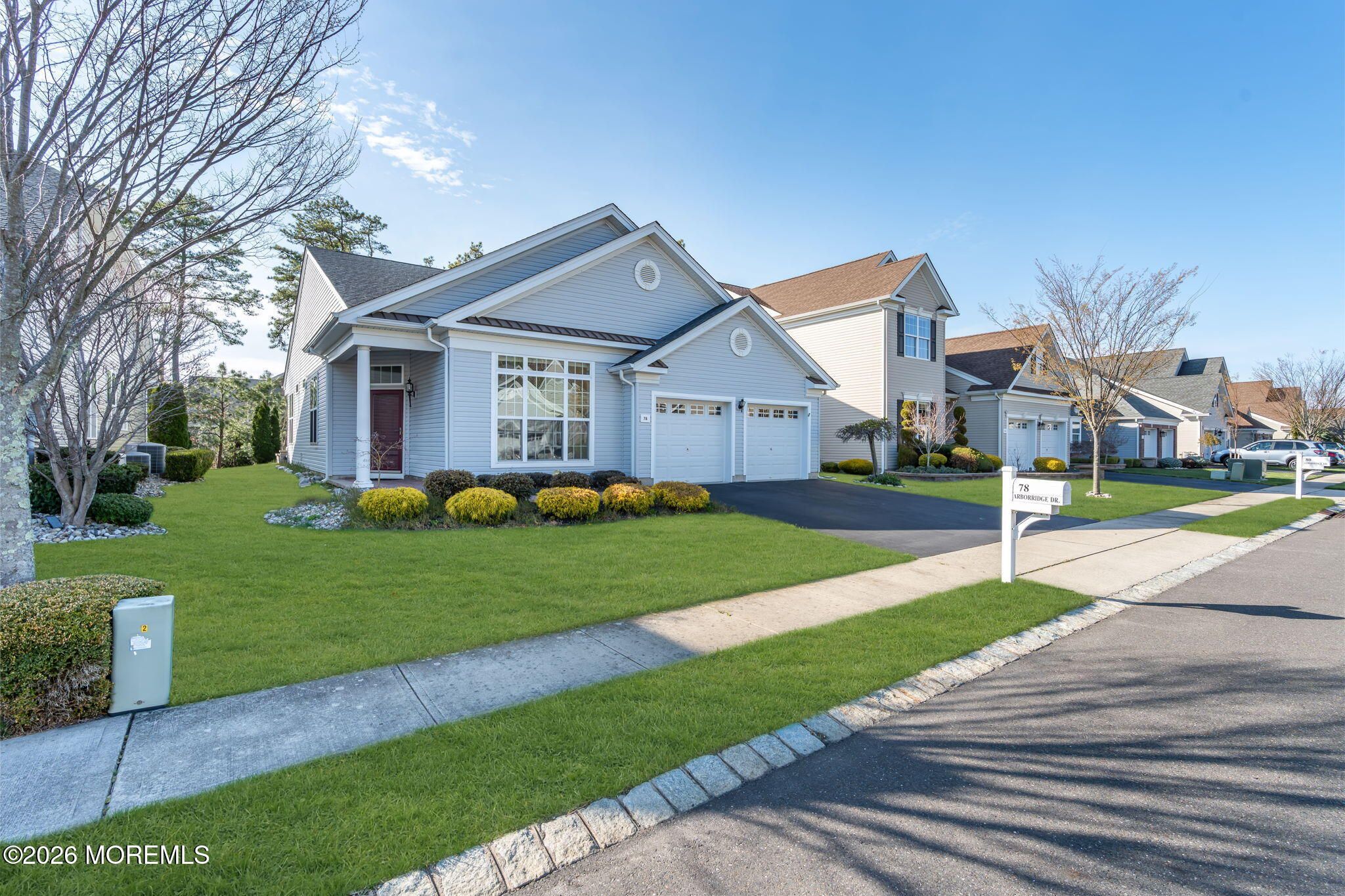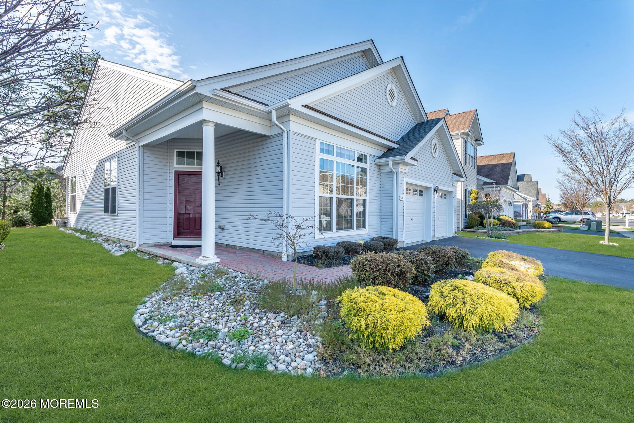 Check out this pristine Norwich model in the resort-style Sea Breeze 55+ community in Forked River, offering 2 bedrooms, 2 full bathrooms, and a 2-car garage. From the moment you arrive, you'll notice the great curb appeal with stunning landscaping. Step inside to find decorative molding, hardwood flooring, recessed lighting, and custom blinds throughout. The home opens to a spacious dining area with an adjacent bonus space, perfect for a home office. The eat-in kitchen features granite countertops, 42-inch cabinets, a breakfast counter, and a dining area with sliding doors leading to the patio. The cozy living room is spacious with ample natural light. The expanded primary suite offers a tray ceiling, walk-in closet, and a private en suite bathroom with double sinks, a full tile shower, and tile flooring. A laundry room is located off the garage. Outside, there is a paver patio with a paver wall, all backing to a peaceful walking path. Residents of Sea Breeze can enjoy a clubhouse, fitness center, pickleball and tennis courts, pool, lawn maintenance, and more. Don't miss the opportunity to own this turnkey home!