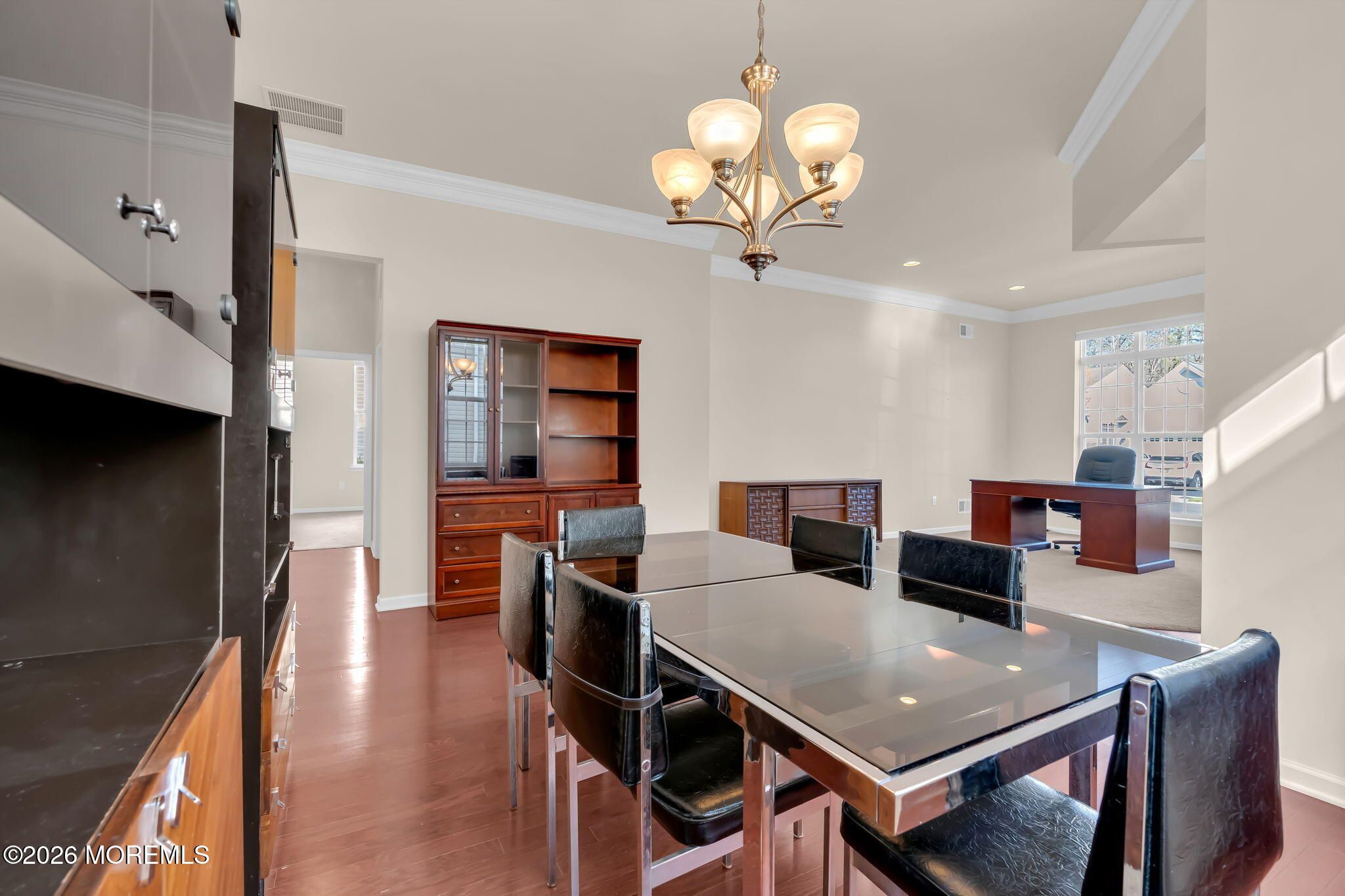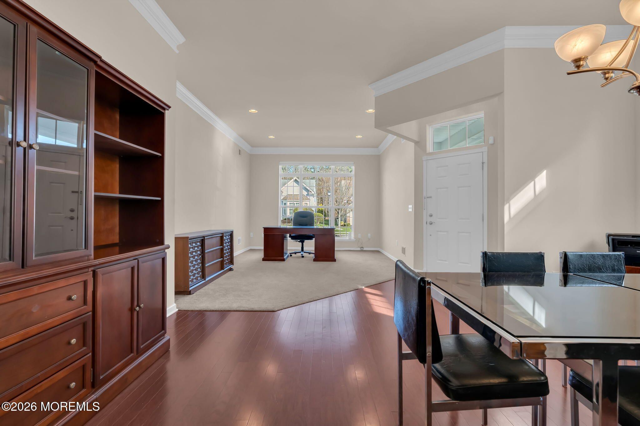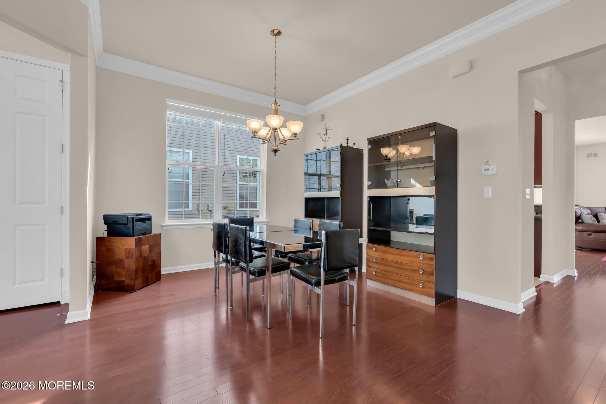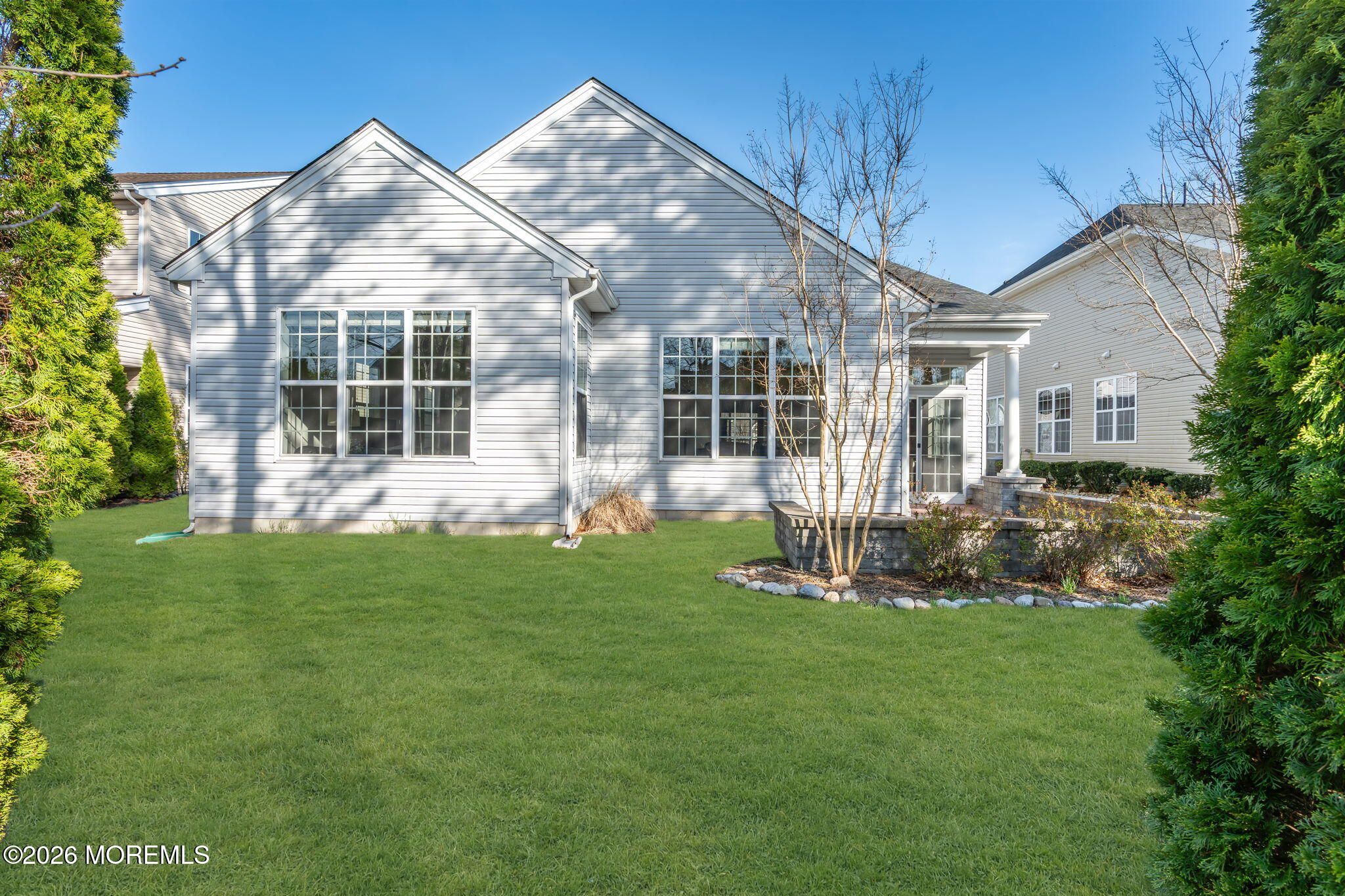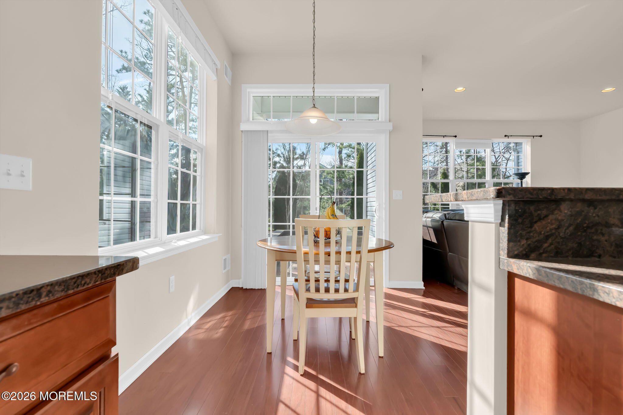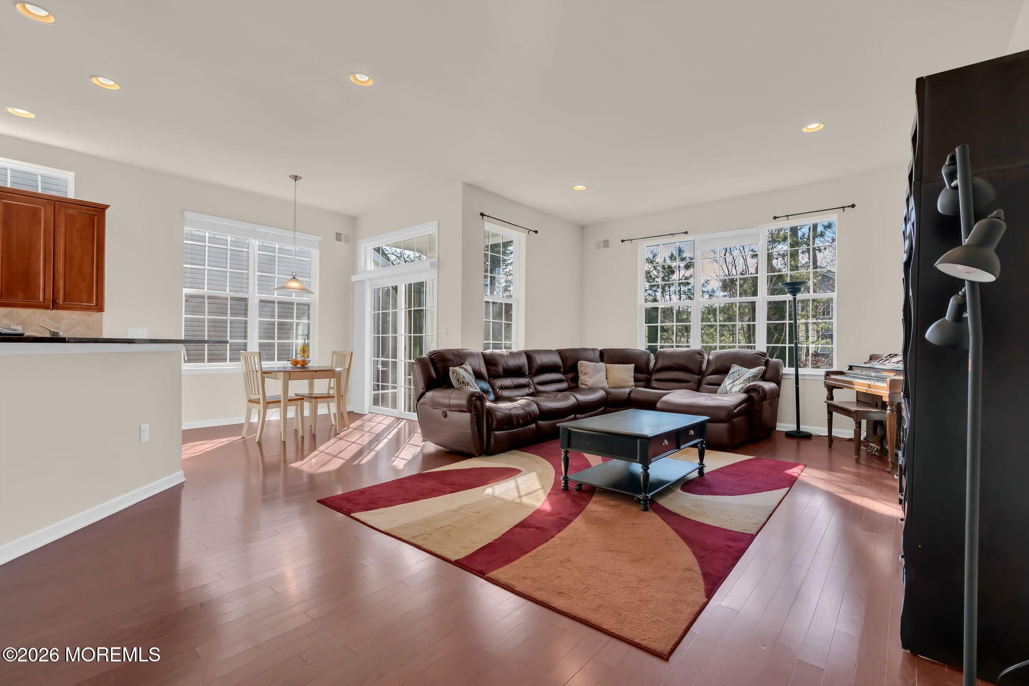 Check out this pristine Norwich model in the resort-style Sea Breeze 55+ community in Forked River, offering 2 bedrooms, 2 full bathrooms, and a 2-car garage. From the moment you arrive, you'll notice the great curb appeal with stunning landscaping. Step inside to find decorative molding, hardwood flooring, recessed lighting, and custom blinds throughout. The home opens to a spacious dining area with an adjacent bonus space, perfect for a home office. The eat-in kitchen features granite countertops, 42-inch cabinets, a breakfast counter, and a dining area with sliding doors leading to the patio. The cozy living room is spacious with ample natural light. The expanded primary suite offers a tray ceiling, walk-in closet, and a private en suite bathroom with double sinks, a full tile shower, and tile flooring. A laundry room is located off the garage. Outside, there is a paver patio with a paver wall, all backing to a peaceful walking path. Residents of Sea Breeze can enjoy a clubhouse, fitness center, pickleball and tennis courts, pool, lawn maintenance, and more. Don't miss the opportunity to own this turnkey home!