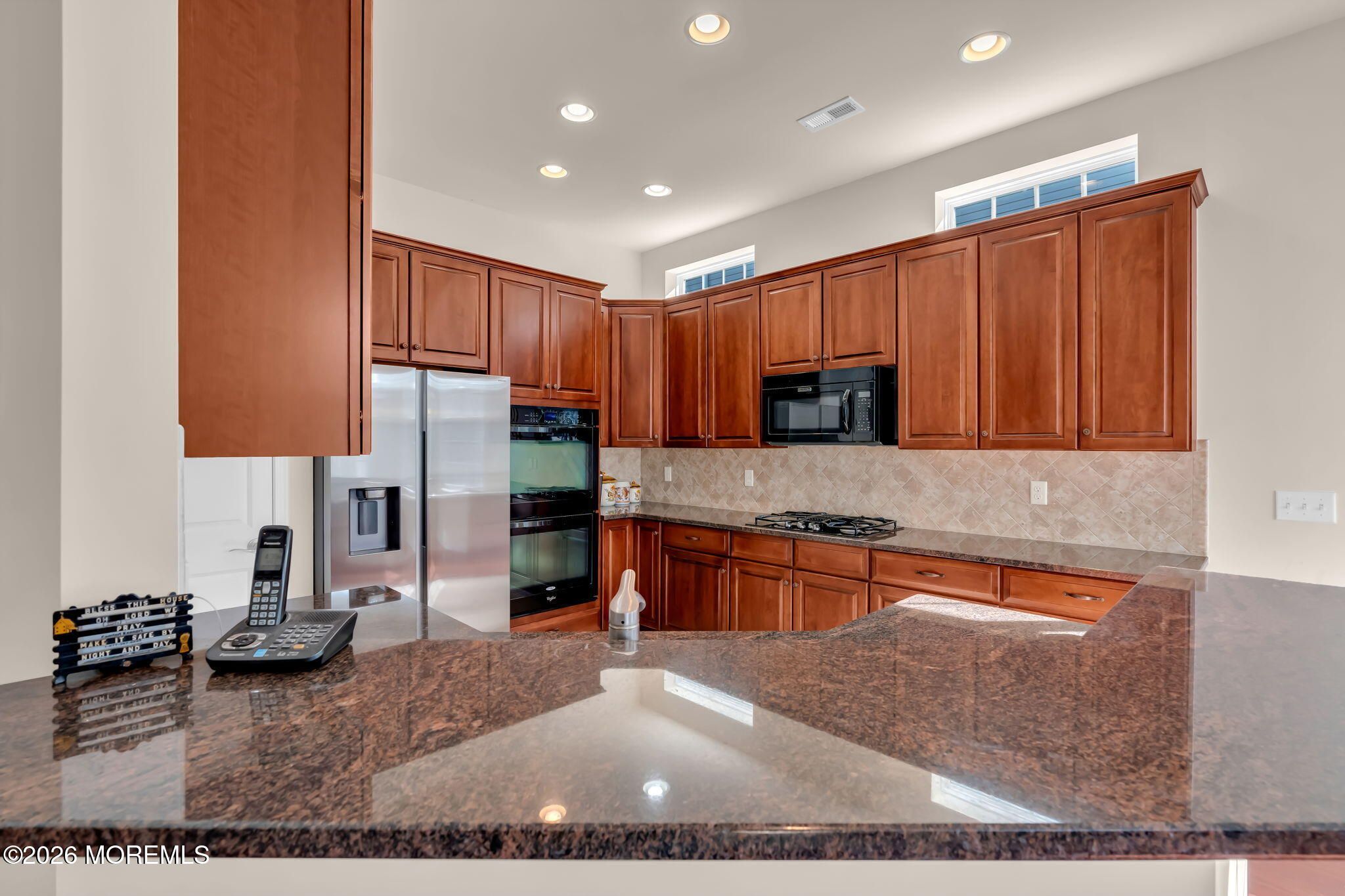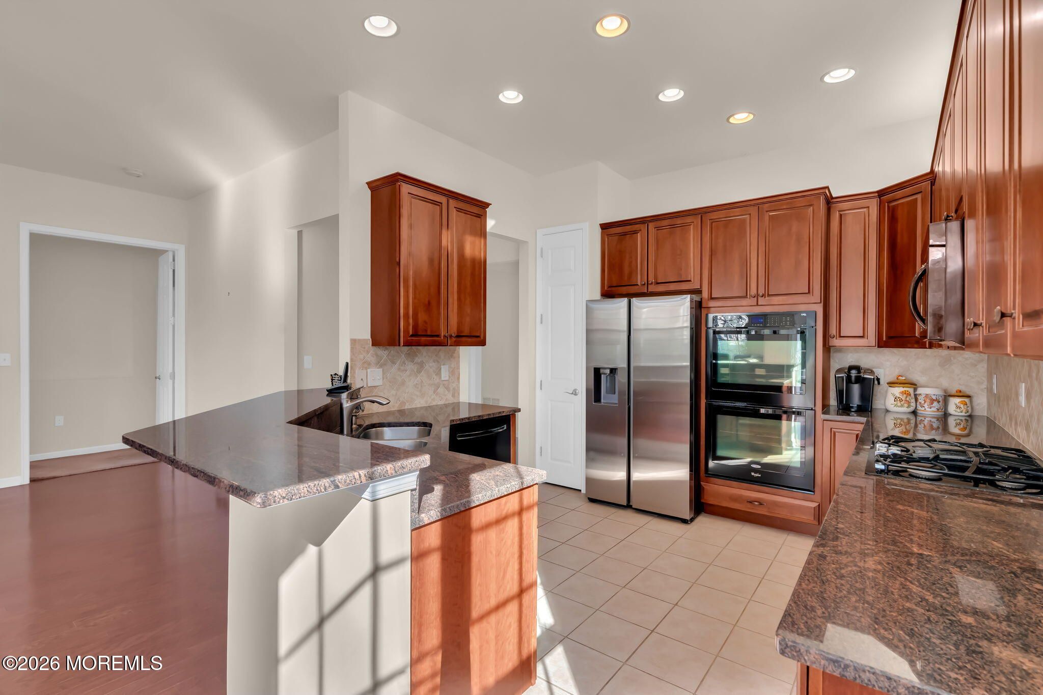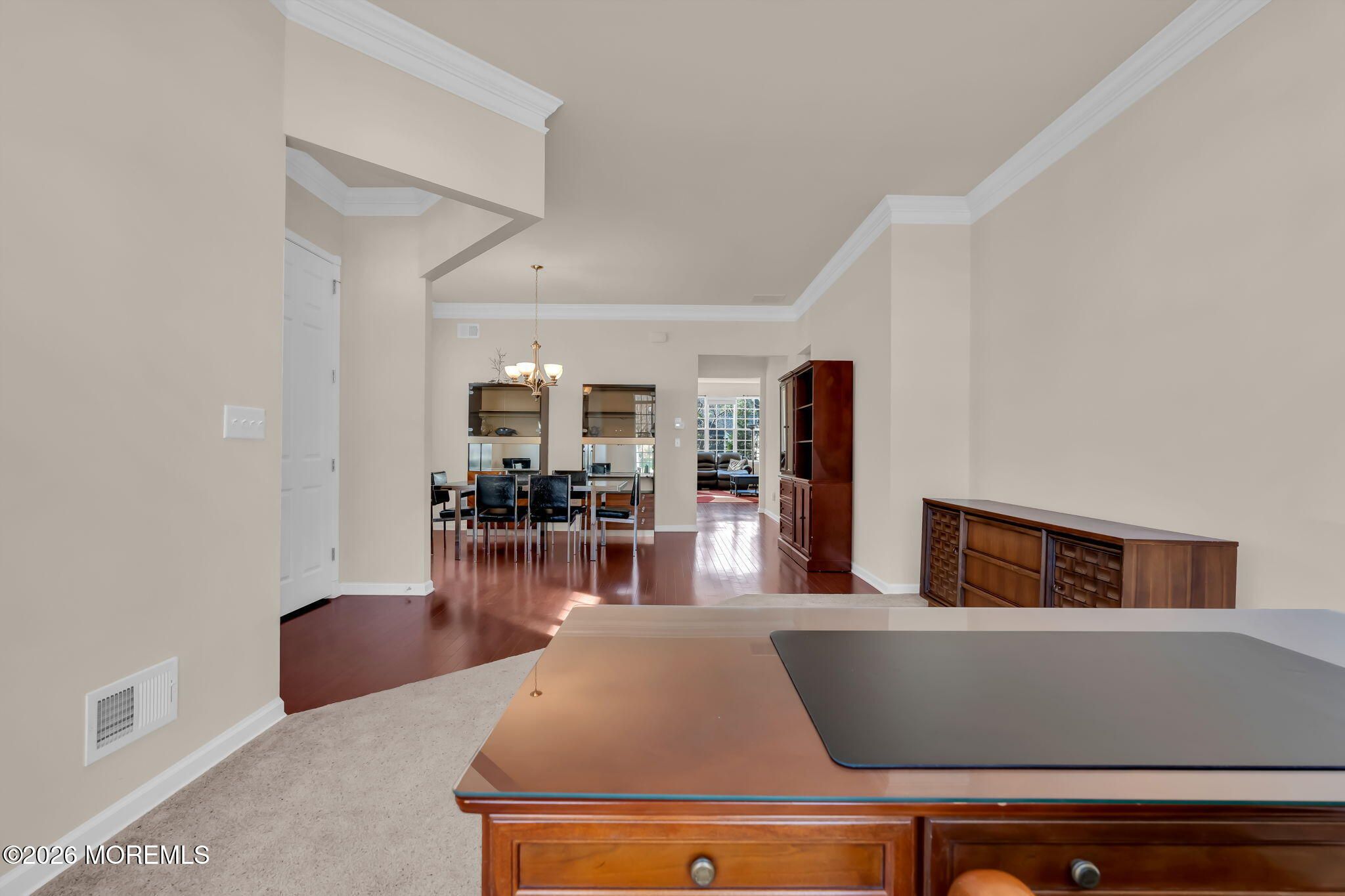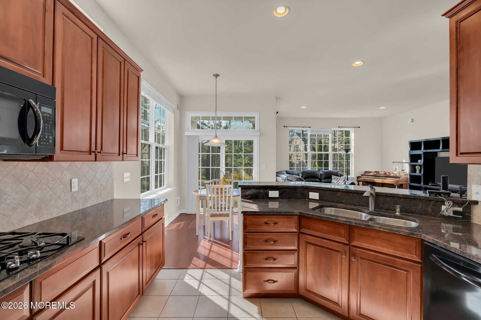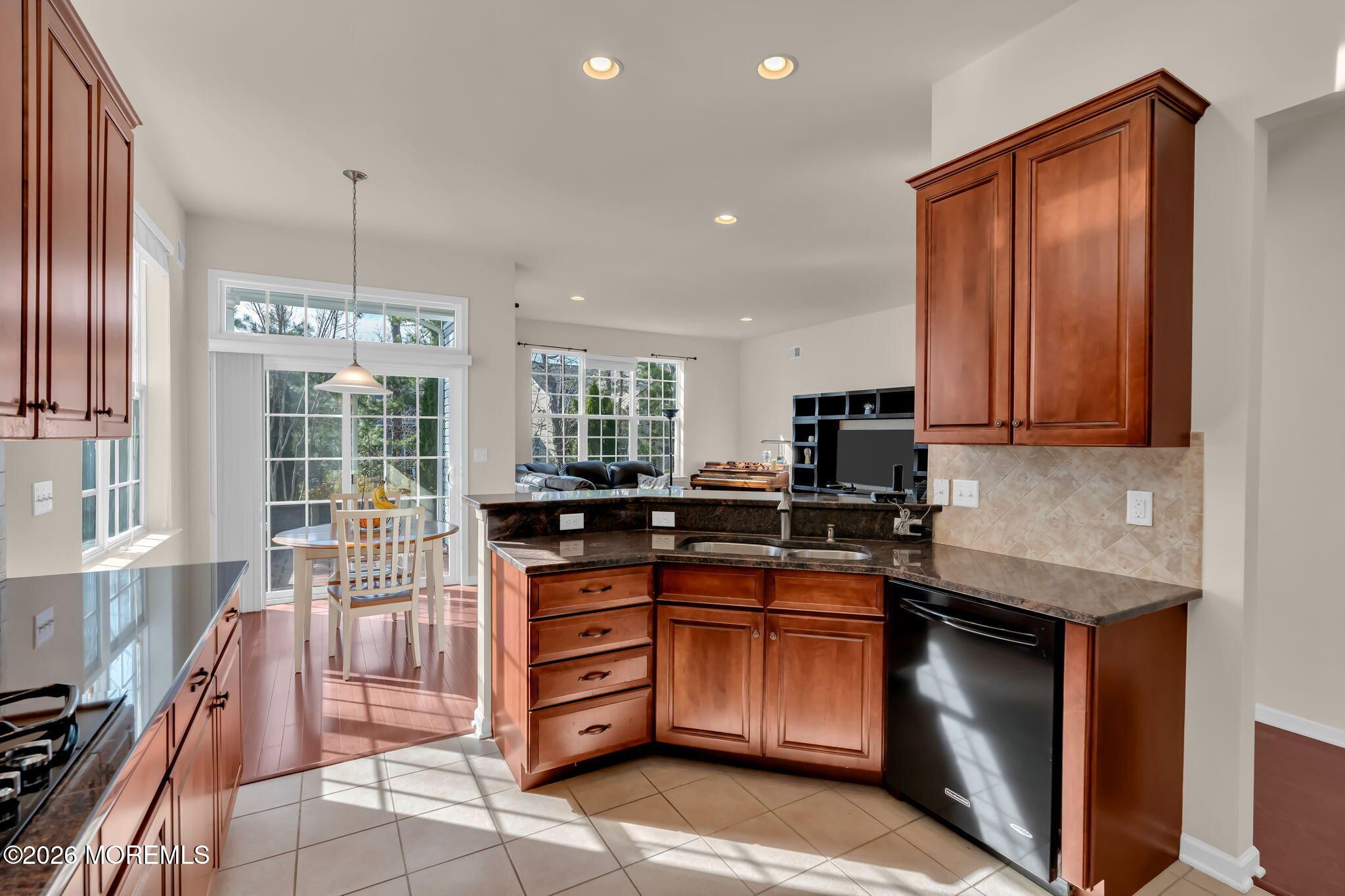 Check out this pristine Norwich model in the resort-style Sea Breeze 55+ community in Forked River, offering 2 bedrooms, 2 full bathrooms, and a 2-car garage. From the moment you arrive, you'll notice the great curb appeal with stunning landscaping. Step inside to find decorative molding, hardwood flooring, recessed lighting, and custom blinds throughout. The home opens to a spacious dining area with an adjacent bonus space, perfect for a home office. The eat-in kitchen features granite countertops, 42-inch cabinets, a breakfast counter, and a dining area with sliding doors leading to the patio. The cozy living room is spacious with ample natural light. The expanded primary suite offers a tray ceiling, walk-in closet, and a private en suite bathroom with double sinks, a full tile shower, and tile flooring. A laundry room is located off the garage. Outside, there is a paver patio with a paver wall, all backing to a peaceful walking path. Residents of Sea Breeze can enjoy a clubhouse, fitness center, pickleball and tennis courts, pool, lawn maintenance, and more. Don't miss the opportunity to own this turnkey home!