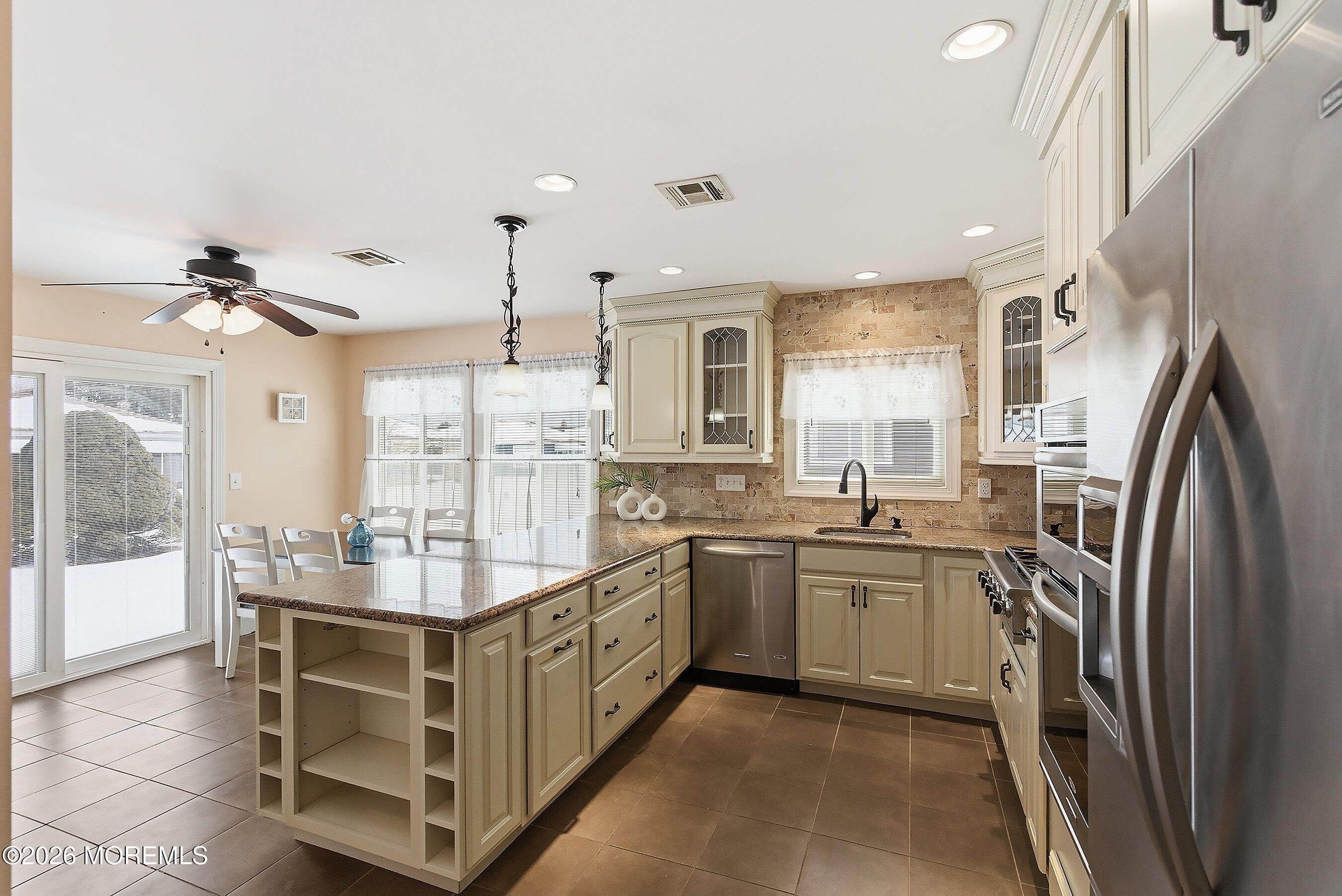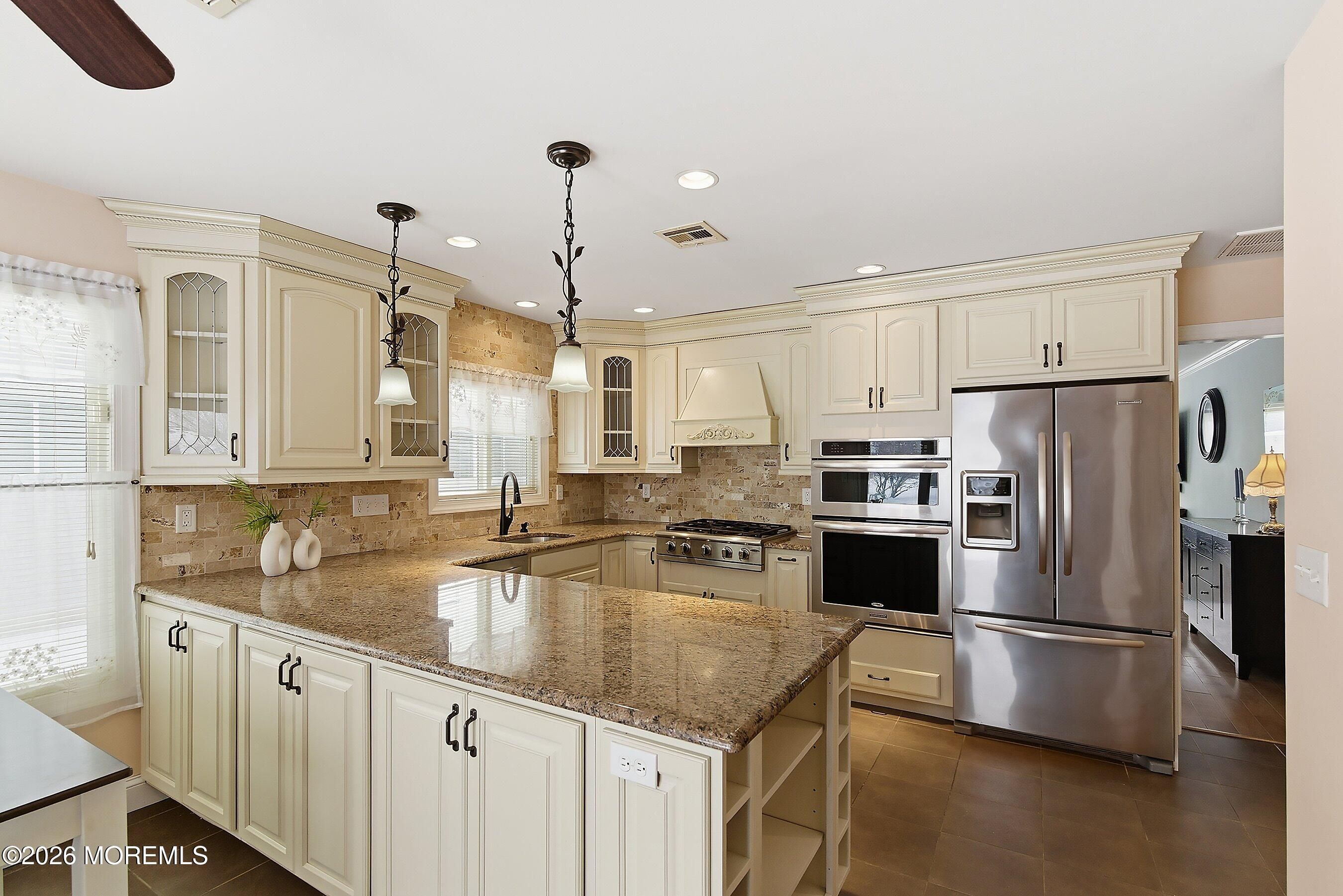 Welcome to this beautifully remodeled 2-bedroom, 2-bath home in the sought-after Holiday City Berkeley adult community. This residence showcases quality craftsmanship and high-end finishes throughout, including rich hardwood floors, premium stainless steel appliances, and a custom-designed kitchen with elegant cabinetry. The spacious primary suite features a private, fully renovated en-suite bath, complemented by a second stylishly updated full bath. Sliding doors open to the backyard, offering seamless indoor-outdoor living—perfect for relaxing or entertaining. Turn-key, thoughtfully updated, and move-in ready, this home offers comfort, style, and easy living in a wonderful community setting.