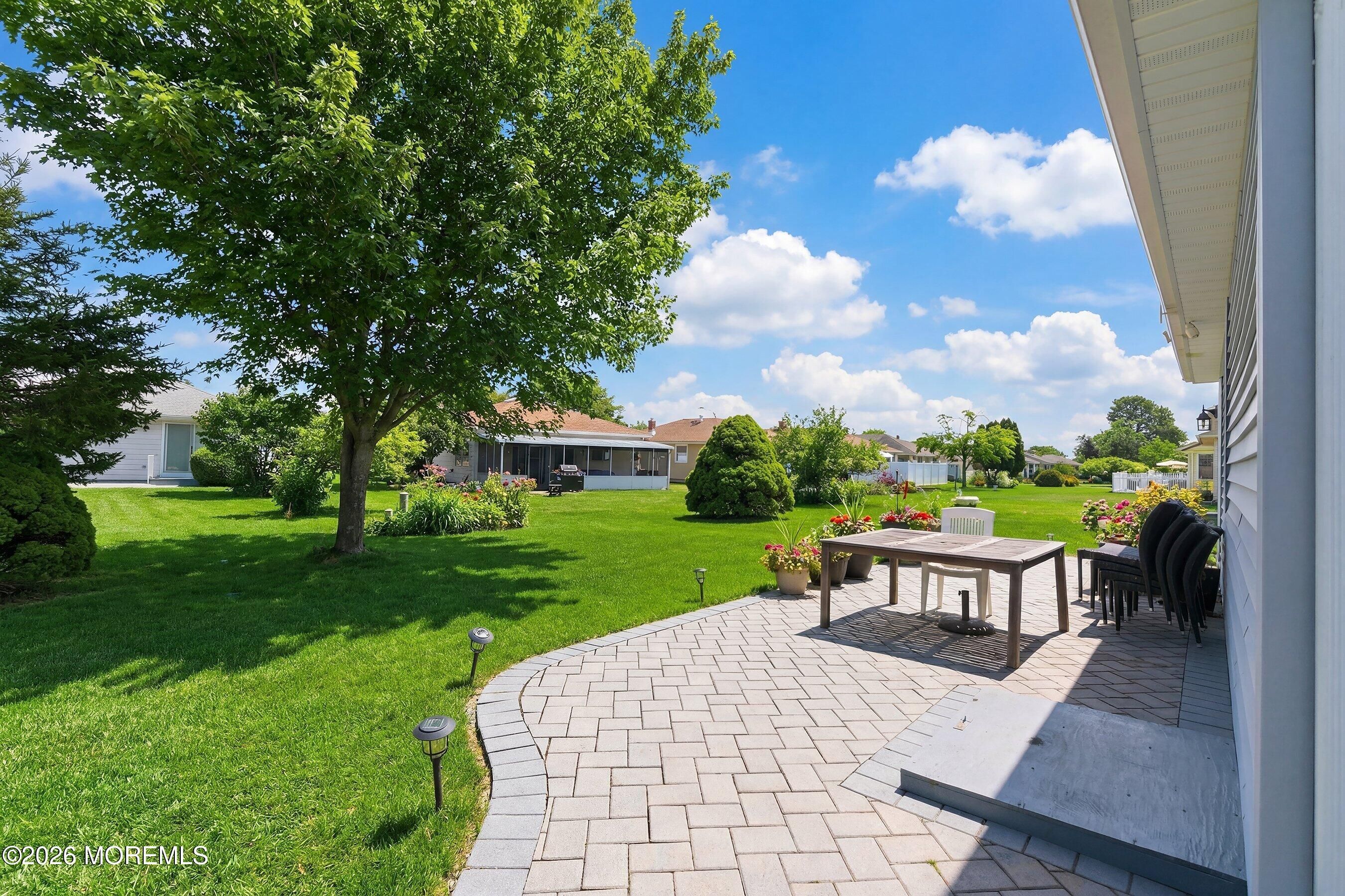 Welcome to this beautifully remodeled 2-bedroom, 2-bath home in the sought-after Holiday City Berkeley adult community. This residence showcases quality craftsmanship and high-end finishes throughout, including rich hardwood floors, premium stainless-steel appliances, and a custom-designed kitchen with elegant cabinetry. The spacious primary suite features a private, fully renovated en-suite bath with heated floor, complemented by main bath stylishly updated also w/ heated floor. Sliding doors open to beautiful paver and backyard, offering seamless indoor-outdoor living—perfect for relaxing or entertaining. Extra wide paver driveway, walkway and Paver patio. Turn-key, thoughtfully updated, and move-in ready, this home offers comfort, style, and easy living in a wonderful community.