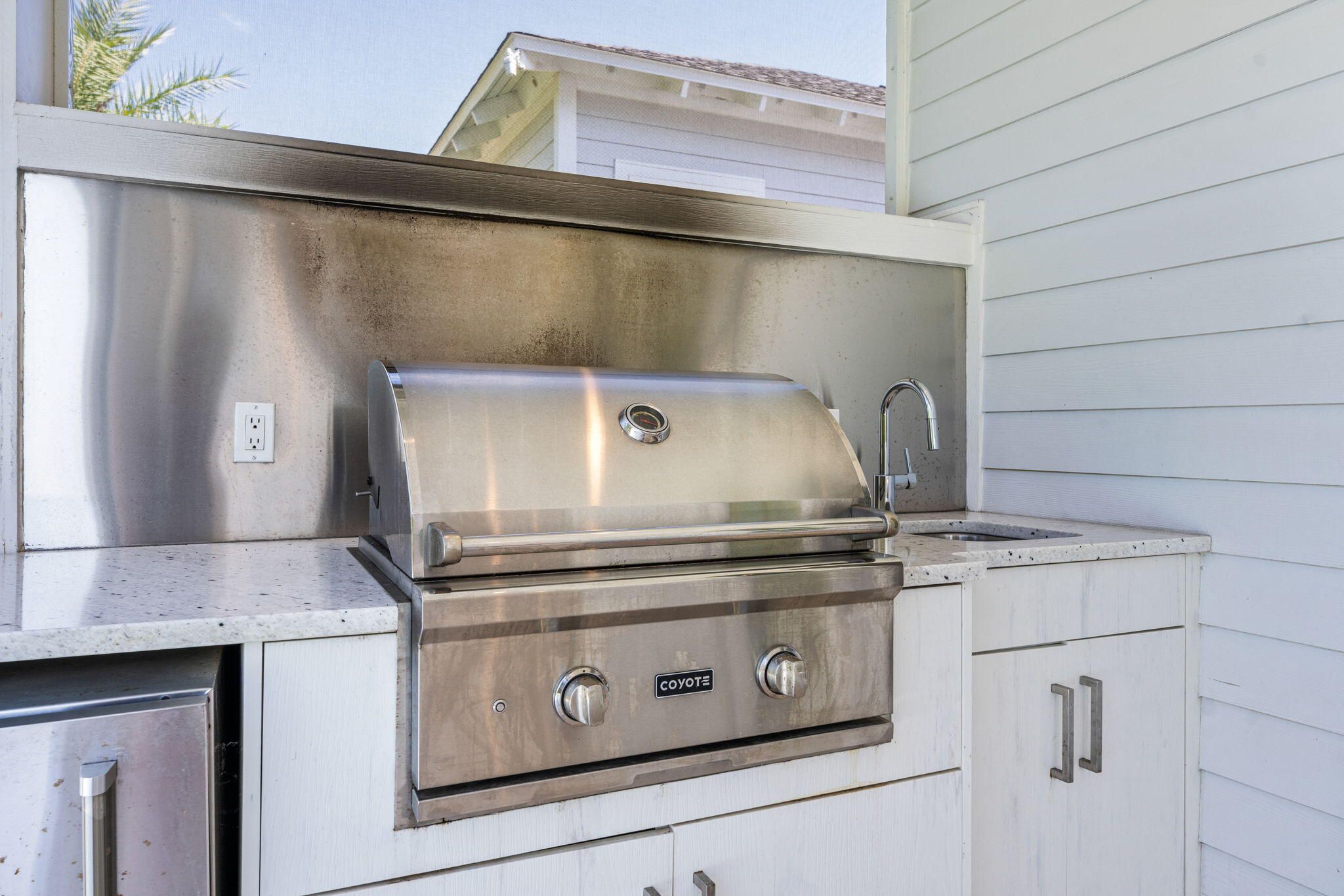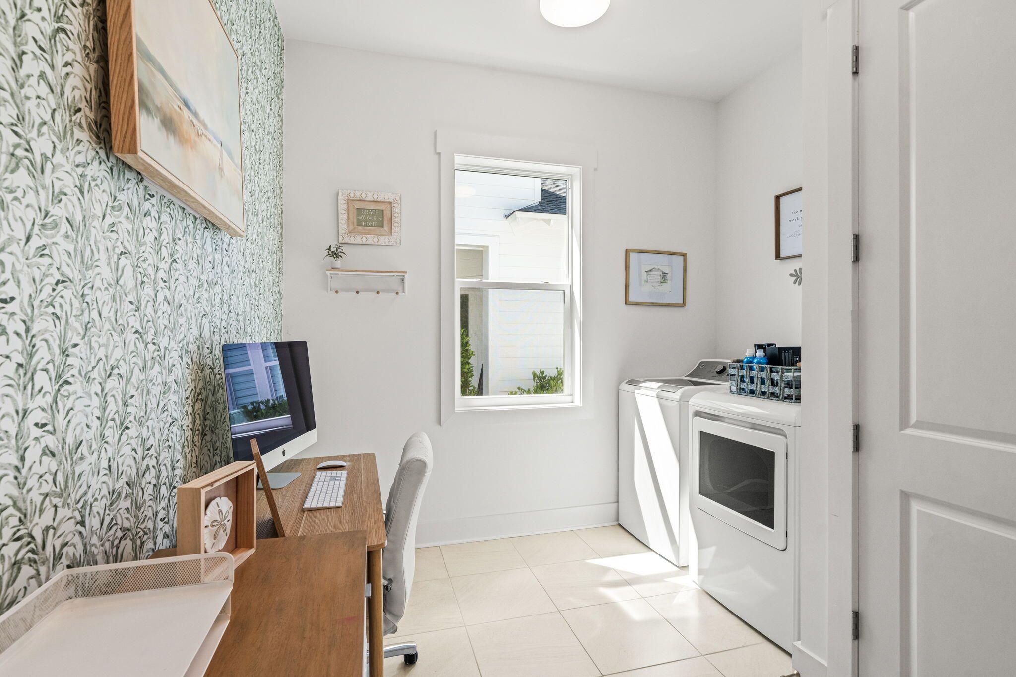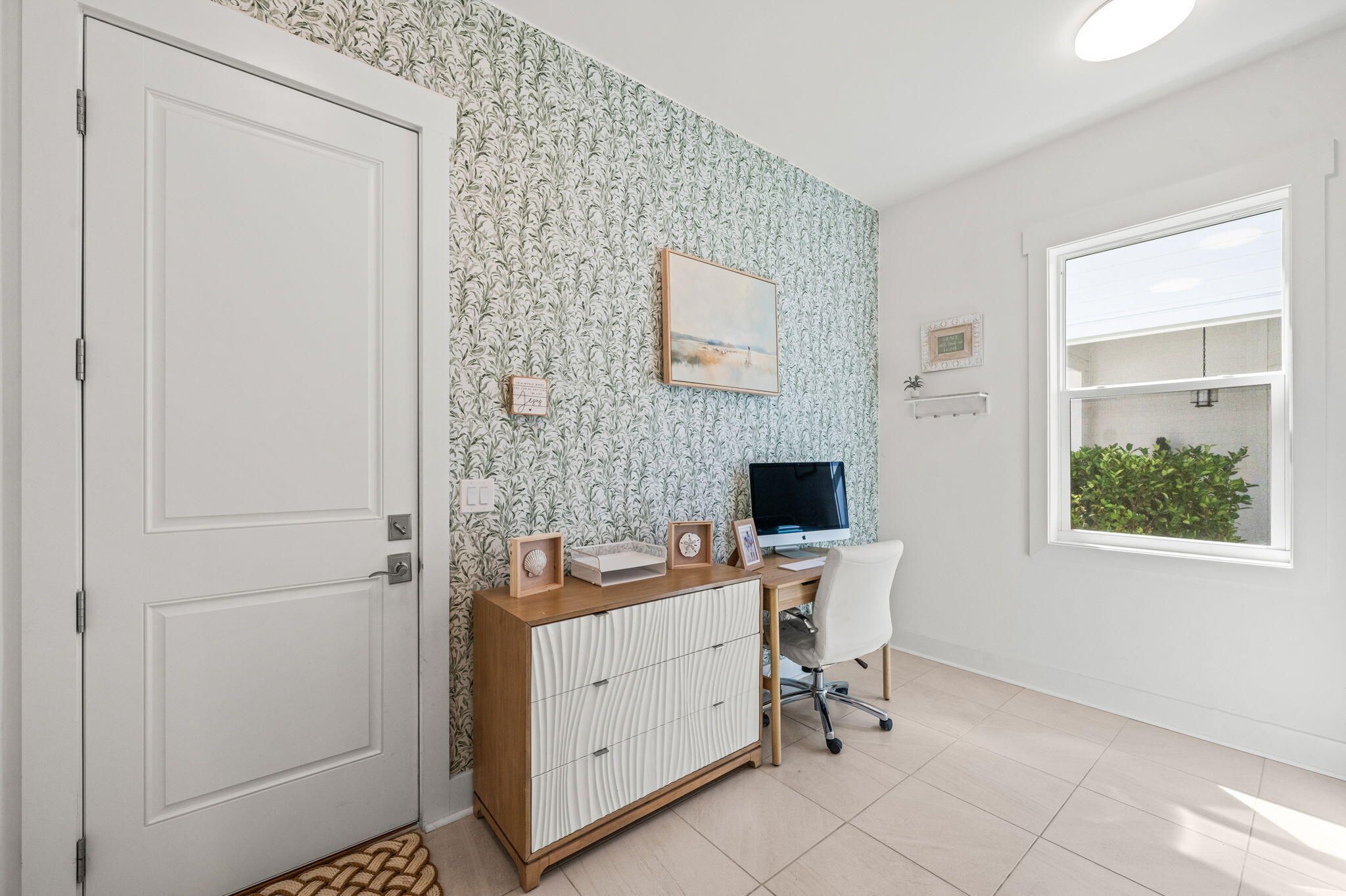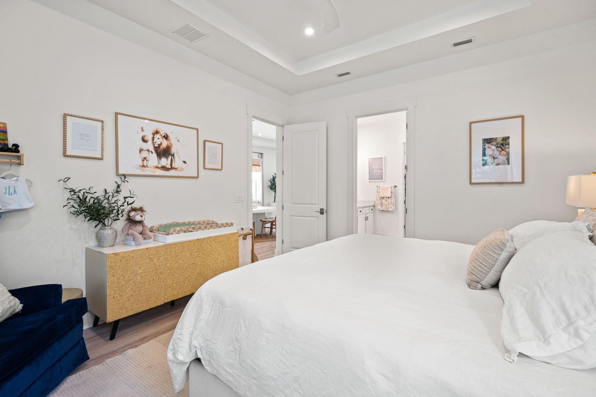 Nestled within the coveted NatureWalk at Watersound Origins, this impeccably designed 2022-built Clearwater floor plan blends coastal sophistication with everyday luxury. An open-concept great room and dining area features soaring tray ceilings, shiplap accent walls, and wide-plank hardwood floors. The chef's kitchen shines with white shaker cabinetry, brushed gold hardware, herringbone tile backsplash, stainless appliances, gas range, and a generous island with breakfast bar. The primary suite overlooks the covered lanai and offers dual vanities, a glass-enclosed shower, and a custom walk-in closet. A private second bedroom wing plus additional flex spaces serve as a home office, playroom, or guest retreat. Step outside to a private pool with travertine decking, outdoor kitchen, and serene pine-tree backdrop. Residents enjoy resort-style amenities including a community pool, clubhouse, fitness center, playground, and golf - all minutes from the sugar-white sands of 30A.