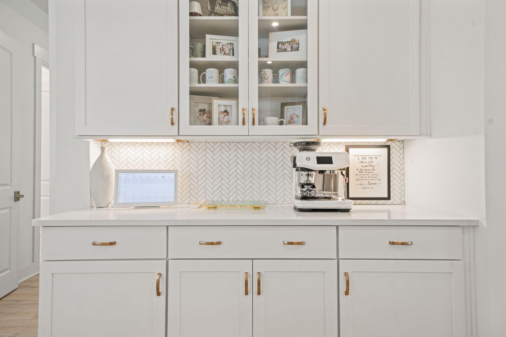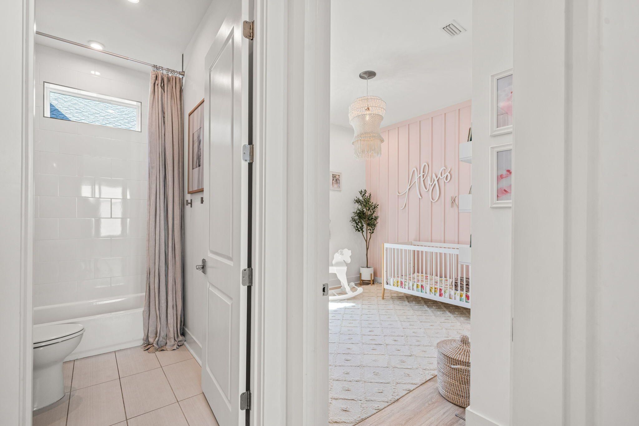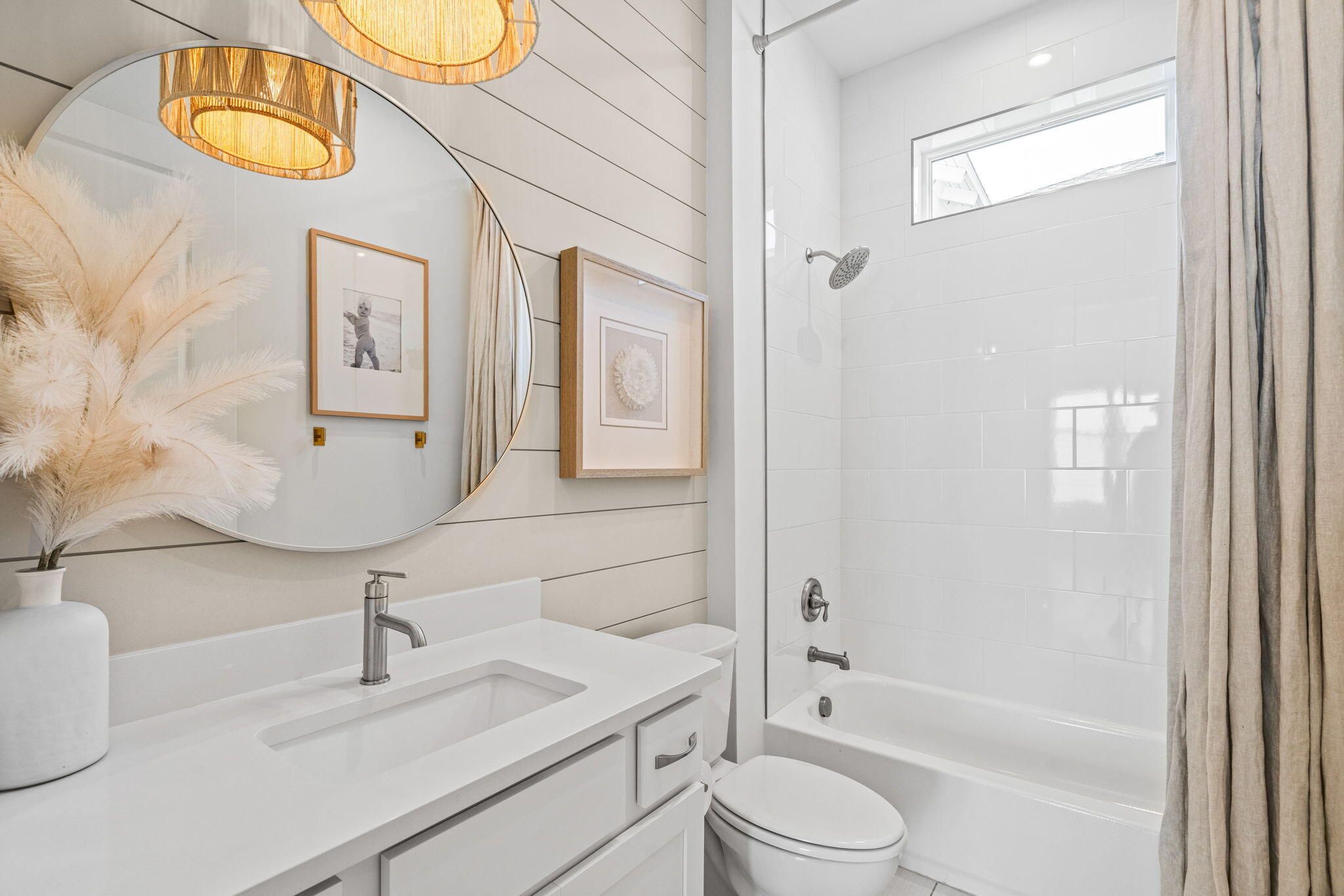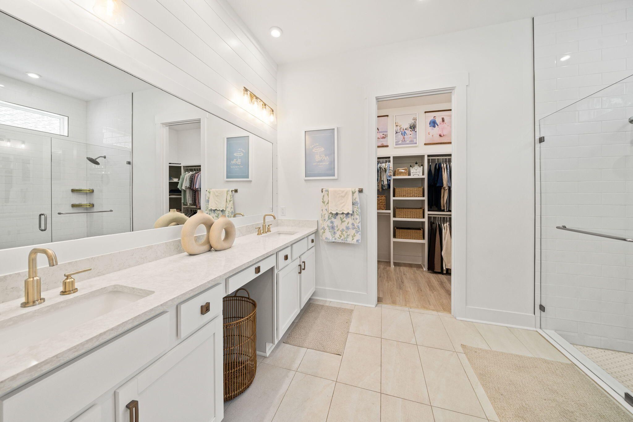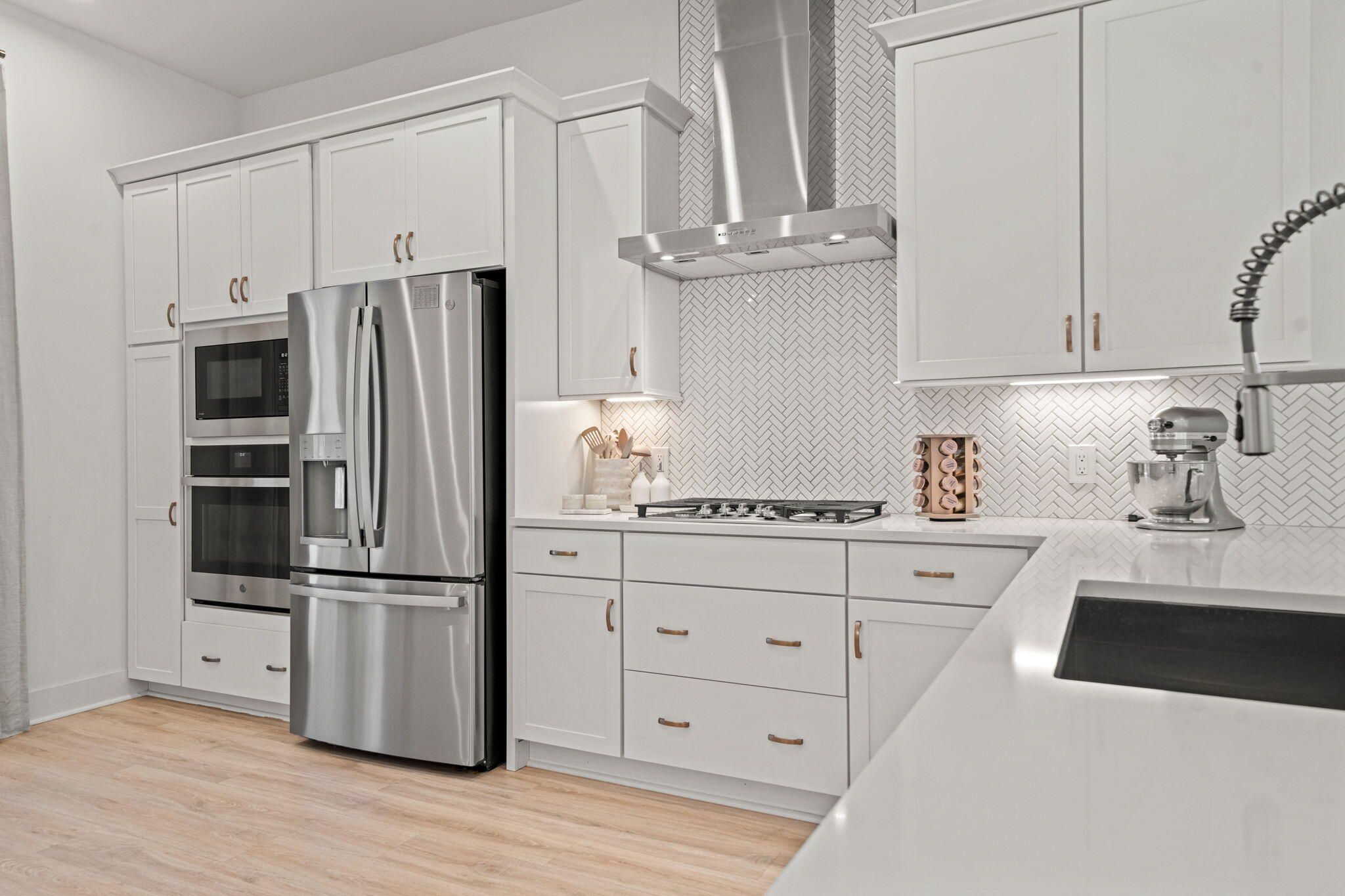 Nestled within the coveted NatureWalk at Watersound Origins, this impeccably designed 2022-built Clearwater floor plan blends coastal sophistication with everyday luxury. An open-concept great room and dining area features soaring tray ceilings, shiplap accent walls, and wide-plank hardwood floors. The chef's kitchen shines with white shaker cabinetry, brushed gold hardware, herringbone tile backsplash, stainless appliances, gas range, and a generous island with breakfast bar. The primary suite overlooks the covered lanai and offers dual vanities, a glass-enclosed shower, and a custom walk-in closet. A private second bedroom wing plus additional flex spaces serve as a home office, playroom, or guest retreat. Step outside to a private pool with travertine decking, outdoor kitchen, and serene pine-tree backdrop. Residents enjoy resort-style amenities including a community pool, clubhouse, fitness center, playground, and golf - all minutes from the sugar-white sands of 30A.