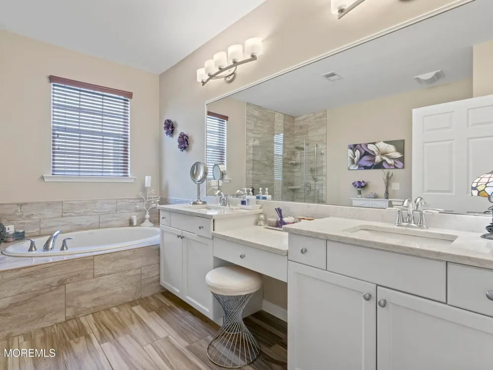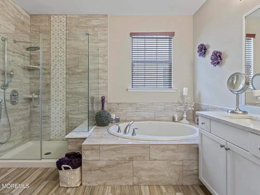 Welcome to the Escapes at Ocean Breeze! This beautifully appointed 3,389 sq. ft. home features 3 spacious bedrooms, 4 full baths, a loft, a study & a fully finished basement with its own full bath - offering endless possibilities for personalization. The first floor boasts two bedrooms & two bathrooms offer added convenience. The upgraded kitchen w/ stainless steel appliances flow seamlessly into a cozy informal eating area & an impressive living room, which features vaulted ceilings & a double-sided gas fireplace that leads into the bright & 4-season room letting in an abundance of natural light. The upstairs loft provides a versatile living space w/ views overlooking the great room, while an additional bedroom & full bath completes the upper level. 2-zone gas heating and central air conditioning. Conveniently located near Route 72, GSP, this home offers easy access to shopping, dining, parks, LBI & the beach - making it an ideal spot to enjoy both relaxation and convenience.