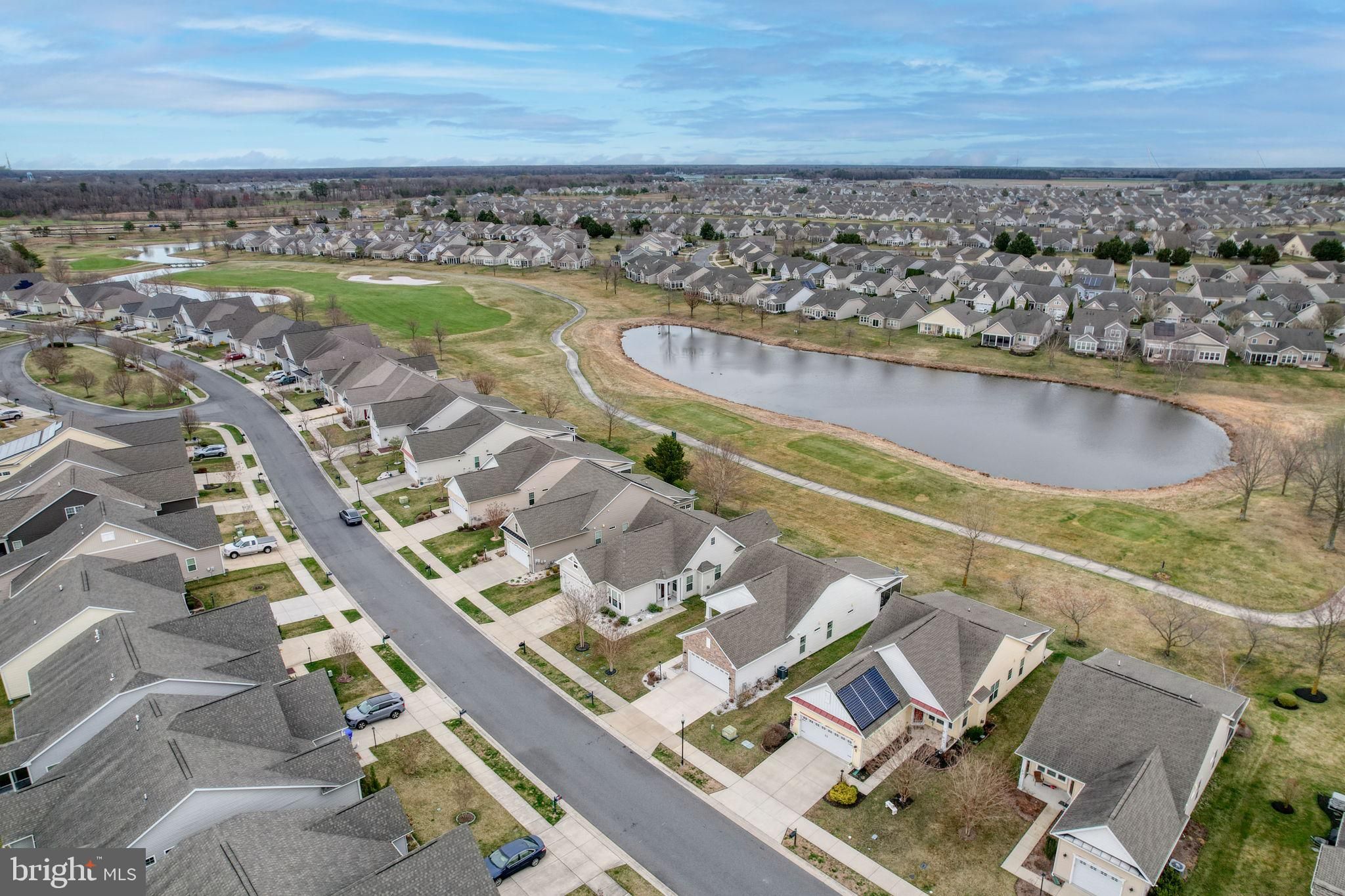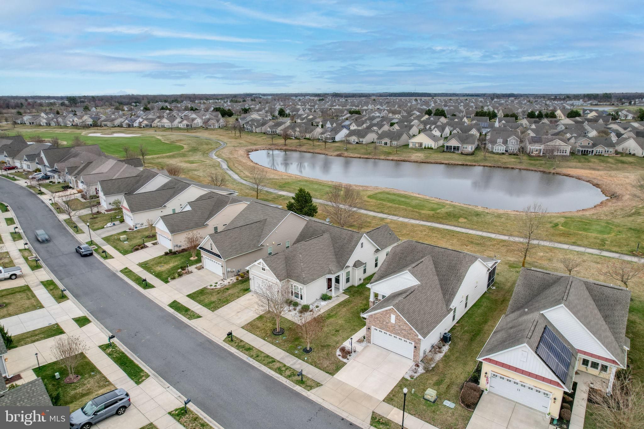 Sweeping golf course views and beautifully landscaped surroundings welcome you to this meticulously cared-for home in the highly desirable Heritage Shores active-adult community in Bridgeville, Delaware. Perfectly positioned along the tee boxes of the 15th hole of the Arthur Hills Golf Course—ranked among the top courses in the region—78 Whistling Duck Drive offers both scenic beauty and an exceptional lifestyle. A bright and welcoming foyer leads into a spacious, light-filled great room where large picture windows frame stunning views of the golf course and surrounding landscape. This open and inviting space is perfect for everyday living, entertaining friends, or hosting special gatherings with family. The heart of the home is the well-appointed gourmet kitchen, thoughtfully designed for both cooking and entertaining. Rich espresso-colored 42" cabinetry, granite countertops, stainless steel appliances, and a large center island with sink and dishwasher create a functional and stylish workspace. Whether enjoying a quick meal at the breakfast bar, hosting guests in the adjacent dining area, or dining outside on the patio while listening to the gentle sounds of a nearby fountain—or the occasional applause from golfers on the green—you’ll appreciate the many options for relaxed living and entertaining. The spacious primary suite provides a peaceful retreat, offering room for a comfortable sitting area, two generous walk-in closets, and a spa-inspired private bath with dual vanities and a frameless glass shower complete with a built-in bench. A second bedroom and full hall bath are conveniently located near the front of the home, providing privacy and comfort for visiting guests. Just off the kitchen, the laundry room offers easy access to the oversized garage for added convenience. The family room is surrounded by expansive views of the golf course and community green space, creating a tranquil setting where you can relax and enjoy the natural beauty that defines Heritage Shores. Residents of Heritage Shores enjoy an unmatched lifestyle with access to an 18-hole public golf course, an impressive clubhouse, a modern fitness and wellness center, multiple dining venues, a ballroom for social events, tennis and pickleball courts, and both indoor and outdoor swimming pools. Discover the vibrant lifestyle of one of southern Delaware’s most sought-after 55+ communities at 78 Whistling Duck Drive, where scenic beauty, comfort, and resort-style living come together effortlessly.