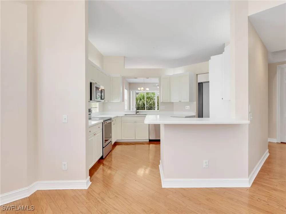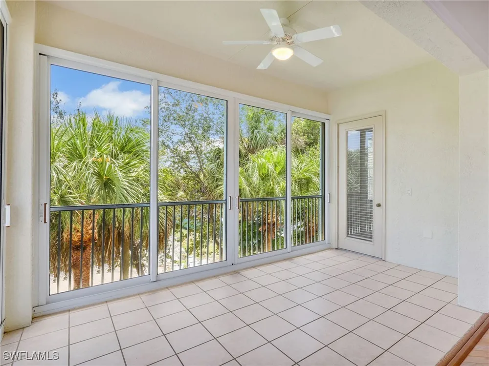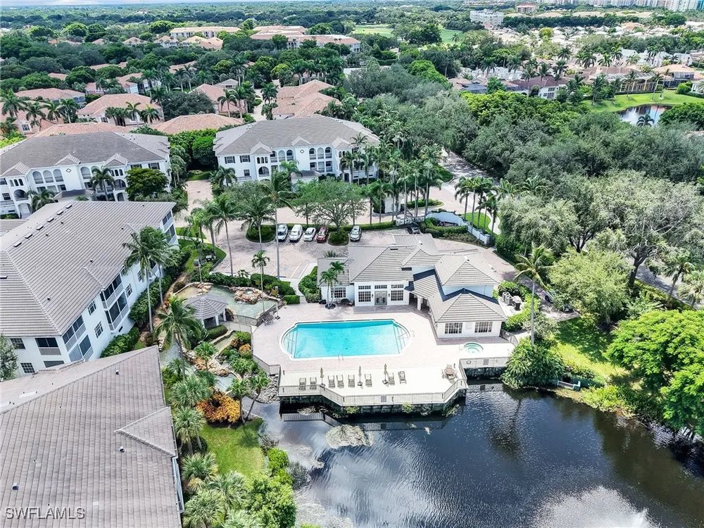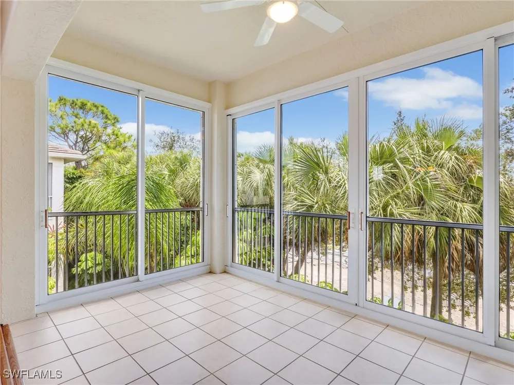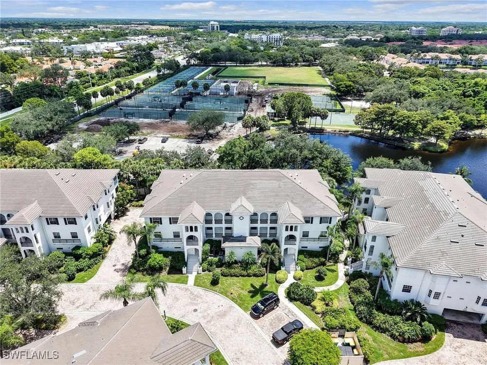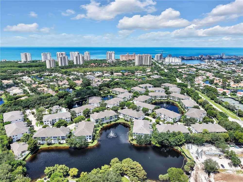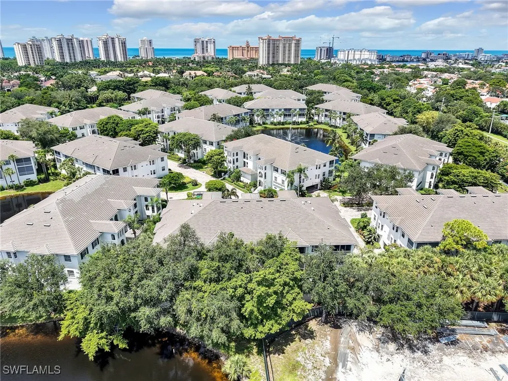 Welcome to this beautifully maintained, spacious 3 bedroom, plus den, 2 and one half bathroom condo located in the heart of North Naples. Nestled in the desirable Breakwater community of Pelican Bay, this second-floor end unit offers a light-filled open floor plan with almost 2,000 square feet of living space and serene, private views of lush tropical landscaping as well as a partial lake view. From the foyer, step into a bright and airy living area with gleaming hardwood floors, high ceilings, and a seamless flow from the dining space to the enclosed lanai. The expansive glass-enclosed lanai with sliding doors allows for year-round enjoyment of the Florida lifestyle while overlooking palm trees, mature greenery and partial lake. The kitchen features white cabinetry, solid-surface countertops, upgraded, newer, stainless steel appliances (refrigerator 2024, microwave, stove, dishwasher 2023), a breakfast bar, and a charming breakfast nook and den with bay windows. The spacious owner’s suite offers large windows, private lanai access, his and her walk-in closets, and a generous en-suite bath with dual vanities, a soaking tub, separate water closet, and a walk-in shower. Two additional, sizable bedrooms provide space for guests, a home office, or hobbies, and share a full guest bath. There is a convenient half bathroom right off the den for guests. Other features include large, in unit laundry with extra cabinets for storage and an oversized 2 car garage with ample storage. The freshly painted condo provides a neutral paint palette ready for your personal touch. The condo has been upgraded with hurricane impact doors and windows and had the outdated plumbing replaced in 2022. Breakwater is located less than 1 mile from the North Tram of Pelican Bay to bring you to the north end beach and restaurant, Marker 36. Here you will find one of the airy, bright, open restaurants, allowing you to relax and take in gorgeous views of nature, beautiful white sand beaches, and, the breathtaking Naples sunset while savoring quick bite or a complete meal with a full bar. Or just relax on the beach under an umbrella, on a lounger provided for the residents. Breakwater also provides a private gate, just steps away, to the nearly finished, brand new Pelican Bay community park. This park will have racquetball, bocce, basketball and clay tennis courts. A playground, walking trail system, pavilion, softball and soccer field are almost complete. Located just minutes from Naples' award-winning beaches, world-class dining, shopping, and golf, this condo is ideal as a year-round residence, vacation home, or investment property. Don't miss your opportunity to own this piece of paradise in one of Naples’ most peaceful communities.