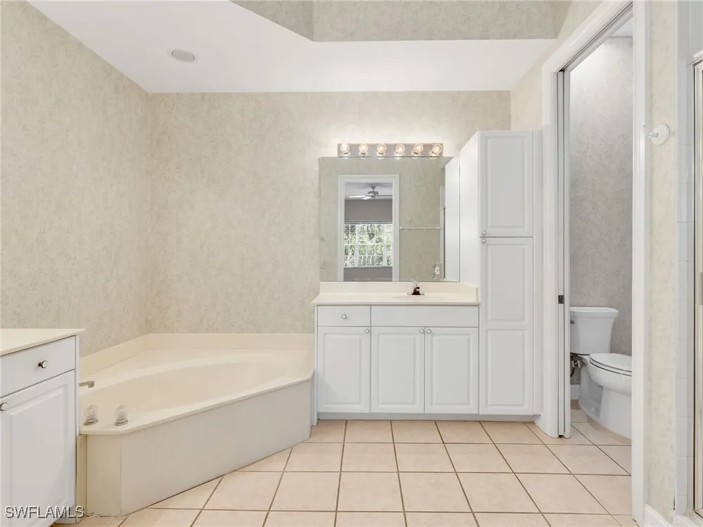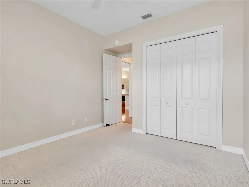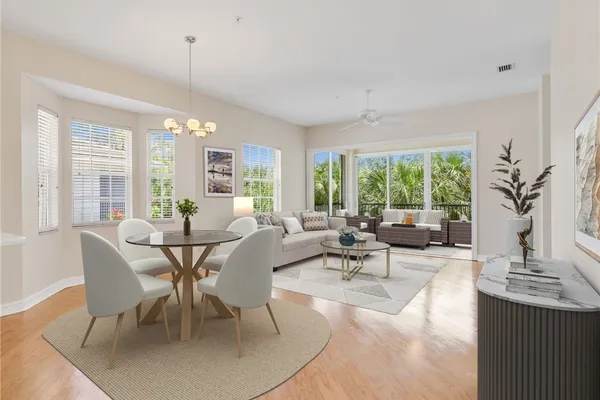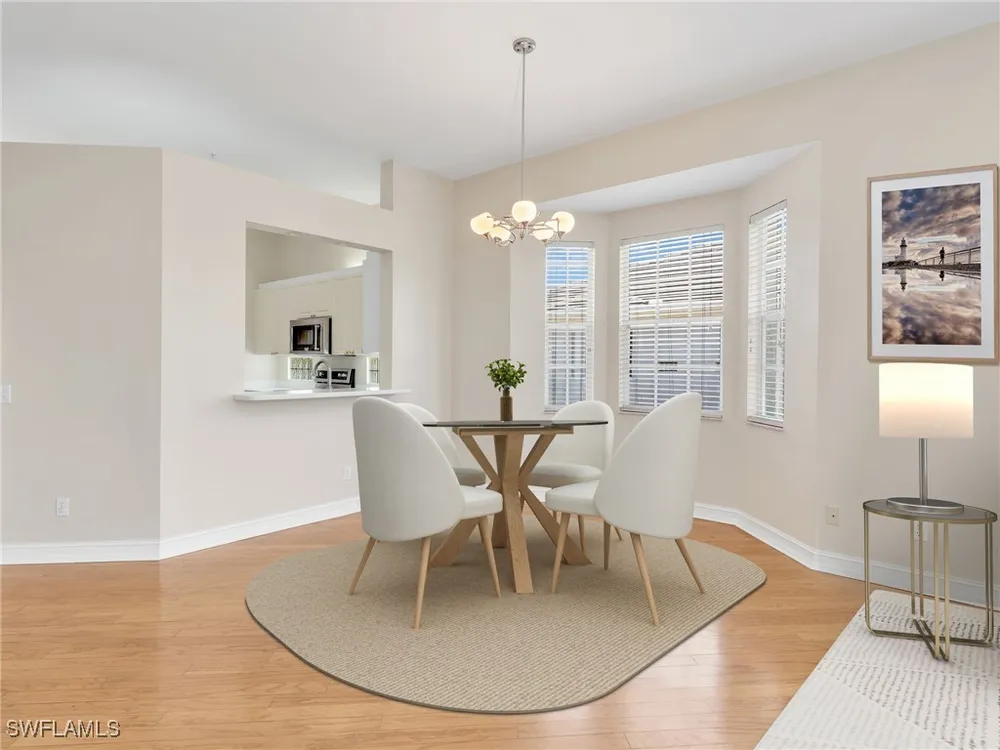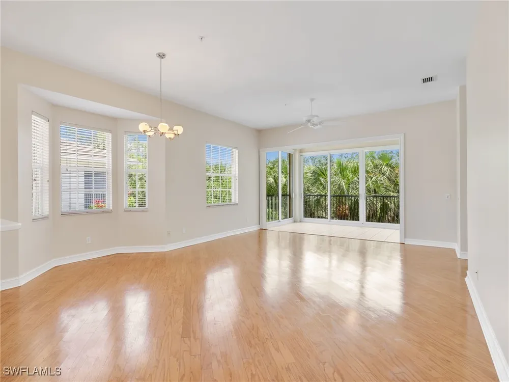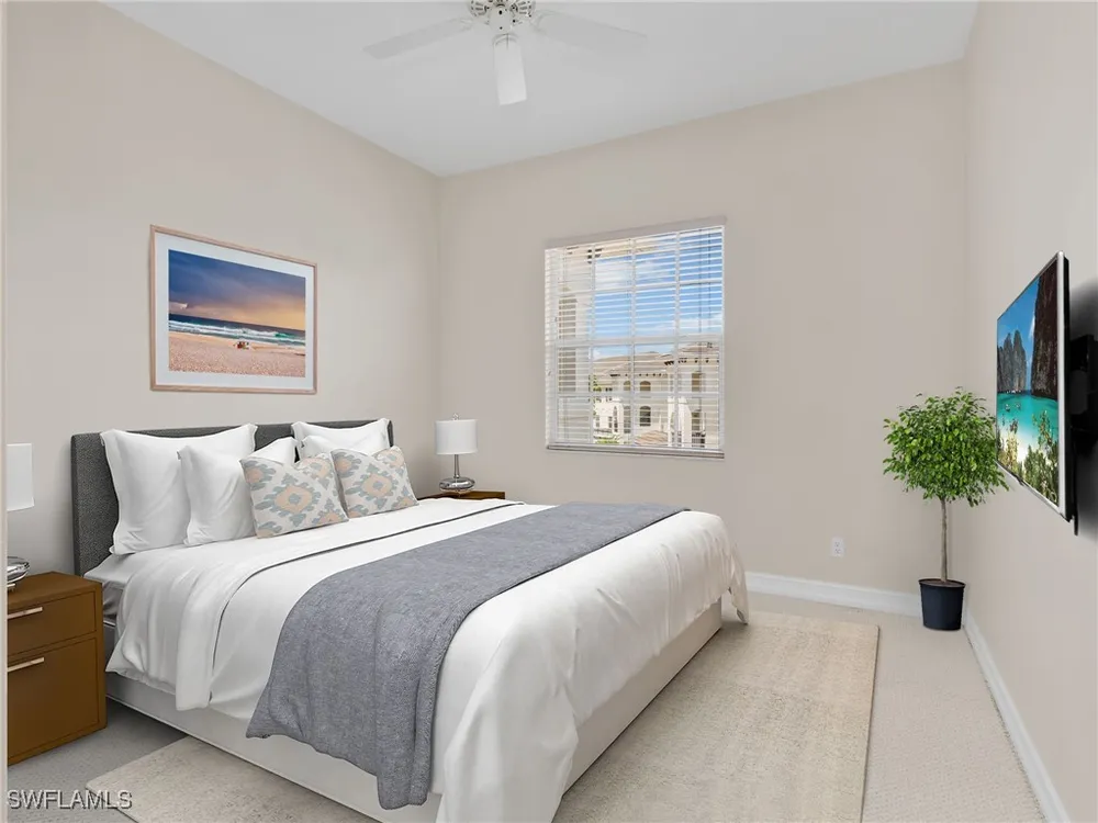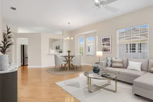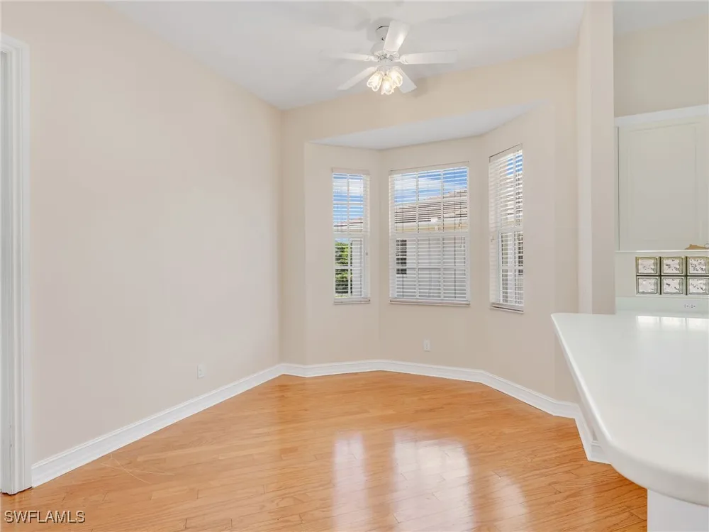 Welcome to this beautifully maintained, spacious 3 bedroom, plus den, 2 and one half bathroom condo located in the heart of North Naples. Nestled in the desirable Breakwater community of Pelican Bay, this second-floor end unit offers a light-filled open floor plan with almost 2,000 square feet of living space and serene, private views of lush tropical landscaping as well as a partial lake view. From the foyer, step into a bright and airy living area with gleaming hardwood floors, high ceilings, and a seamless flow from the dining space to the enclosed lanai. The expansive glass-enclosed lanai with sliding doors allows for year-round enjoyment of the Florida lifestyle while overlooking palm trees, mature greenery and partial lake. The kitchen features white cabinetry, solid-surface countertops, upgraded, newer, stainless steel appliances (refrigerator 2024, microwave, stove, dishwasher 2023), a breakfast bar, and a charming breakfast nook and den with bay windows. The spacious owner’s suite offers large windows, private lanai access, his and her walk-in closets, and a generous en-suite bath with dual vanities, a soaking tub, separate water closet, and a walk-in shower. Two additional, sizable bedrooms provide space for guests, a home office, or hobbies, and share a full guest bath. There is a convenient half bathroom right off the den for guests. Other features include large, in unit laundry with extra cabinets for storage and an oversized 2 car garage with ample storage. The freshly painted condo provides a neutral paint palette ready for your personal touch. The condo has been upgraded with hurricane impact doors and windows and had the outdated plumbing replaced in 2022. Breakwater is located less than 1 mile from the North Tram of Pelican Bay to bring you to the north end beach and restaurant, Marker 36. Here you will find one of the airy, bright, open restaurants, allowing you to relax and take in gorgeous views of nature, beautiful white sand beaches, and, the breathtaking Naples sunset while savoring quick bite or a complete meal with a full bar. Or just relax on the beach under an umbrella, on a lounger provided for the residents. Breakwater also provides a private gate, just steps away, to the nearly finished, brand new Pelican Bay community park. This park will have racquetball, bocce, basketball and clay tennis courts. A playground, walking trail system, pavilion, softball and soccer field are almost complete. Located just minutes from Naples' award-winning beaches, world-class dining, shopping, and golf, this condo is ideal as a year-round residence, vacation home, or investment property. Don't miss your opportunity to own this piece of paradise in one of Naples’ most peaceful communities.