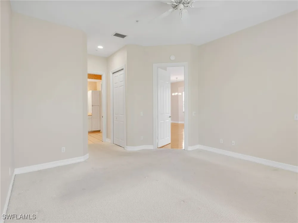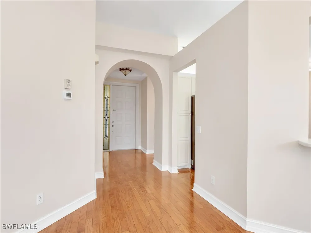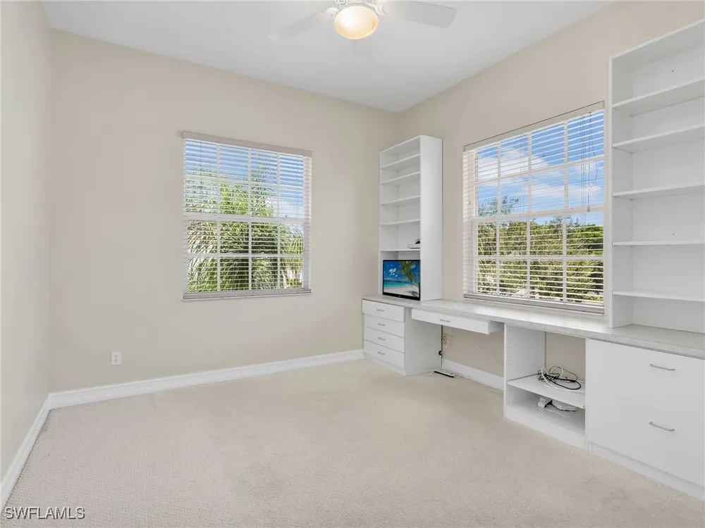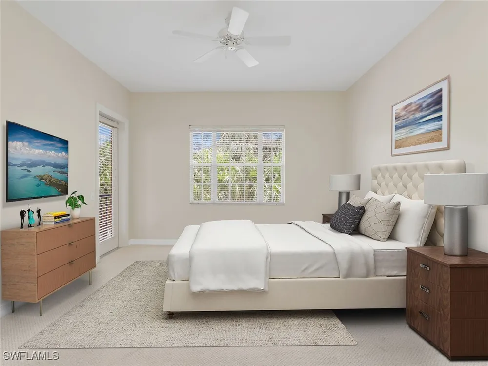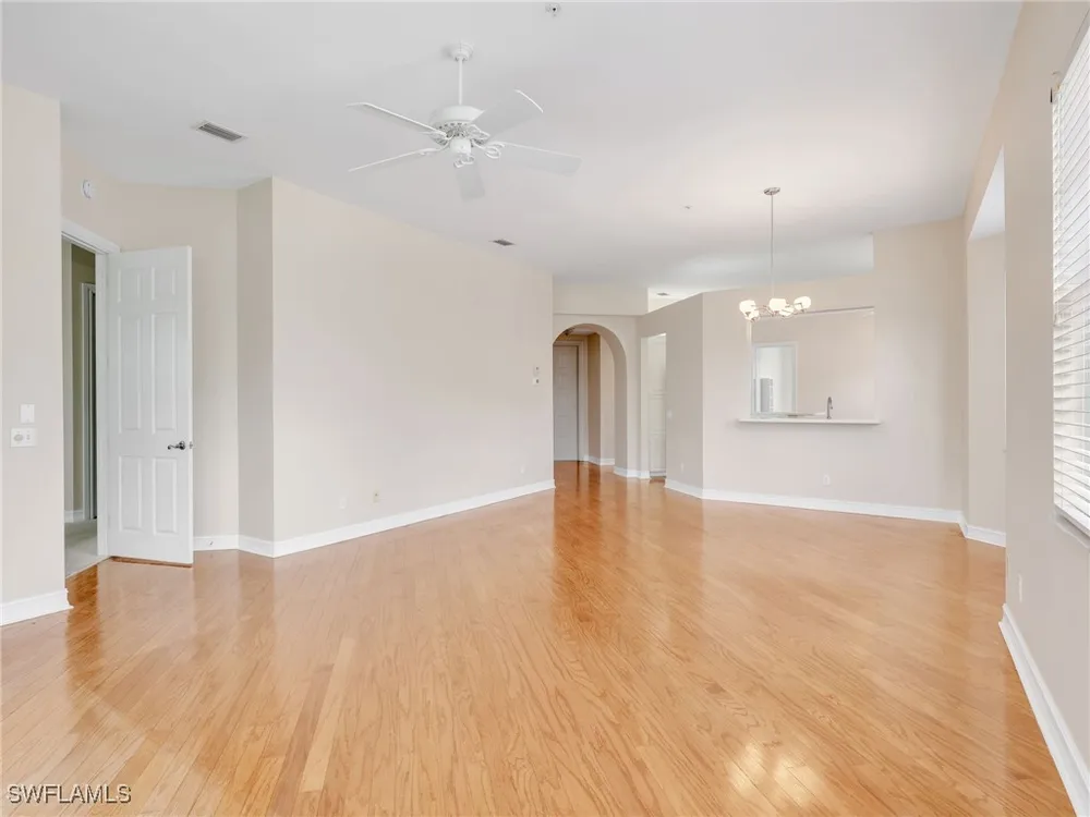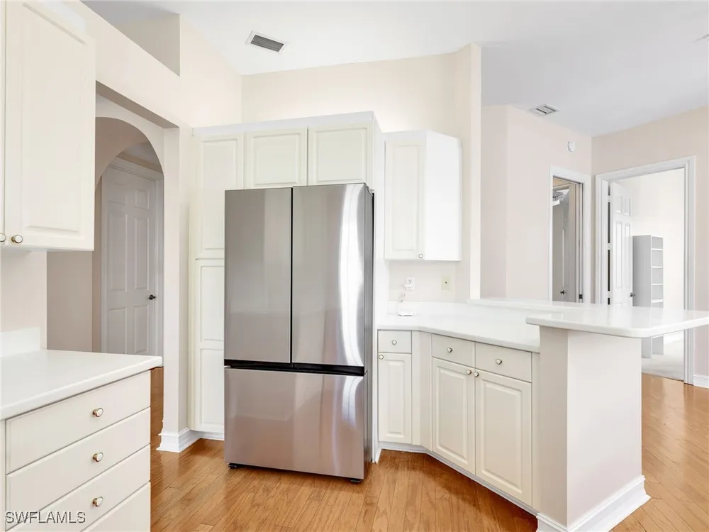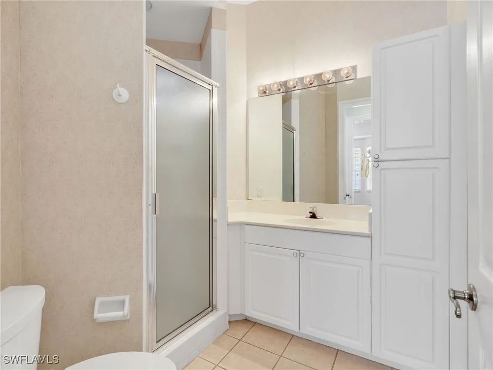 Welcome to this beautifully maintained, spacious 3 bedroom, plus den, 2 and one half bathroom condo located in the heart of North Naples. Nestled in the desirable Breakwater community of Pelican Bay, this second-floor end unit offers a light-filled open floor plan with almost 2,000 square feet of living space and serene, private views of lush tropical landscaping as well as a partial lake view. From the foyer, step into a bright and airy living area with gleaming hardwood floors, high ceilings, and a seamless flow from the dining space to the enclosed lanai. The expansive glass-enclosed lanai with sliding doors allows for year-round enjoyment of the Florida lifestyle while overlooking palm trees, mature greenery and partial lake. The kitchen features white cabinetry, solid-surface countertops, upgraded, newer, stainless steel appliances (refrigerator 2024, microwave, stove, dishwasher 2023), a breakfast bar, and a charming breakfast nook and den with bay windows. The spacious owner’s suite offers large windows, private lanai access, his and her walk-in closets, and a generous en-suite bath with dual vanities, a soaking tub, separate water closet, and a walk-in shower. Two additional, sizable bedrooms provide space for guests, a home office, or hobbies, and share a full guest bath. There is a convenient half bathroom right off the den for guests. Other features include large, in unit laundry with extra cabinets for storage and an oversized 2 car garage with ample storage. The freshly painted condo provides a neutral paint palette ready for your personal touch. The condo has been upgraded with hurricane impact doors and windows and had the outdated plumbing replaced in 2022. Breakwater is located less than 1 mile from the North Tram of Pelican Bay to bring you to the north end beach and restaurant, Marker 36. Here you will find one of the airy, bright, open restaurants, allowing you to relax and take in gorgeous views of nature, beautiful white sand beaches, and, the breathtaking Naples sunset while savoring quick bite or a complete meal with a full bar. Or just relax on the beach under an umbrella, on a lounger provided for the residents. Breakwater also provides a private gate, just steps away, to the nearly finished, brand new Pelican Bay community park. This park will have racquetball, bocce, basketball and clay tennis courts. A playground, walking trail system, pavilion, softball and soccer field are almost complete. Located just minutes from Naples' award-winning beaches, world-class dining, shopping, and golf, this condo is ideal as a year-round residence, vacation home, or investment property. Don't miss your opportunity to own this piece of paradise in one of Naples’ most peaceful communities.