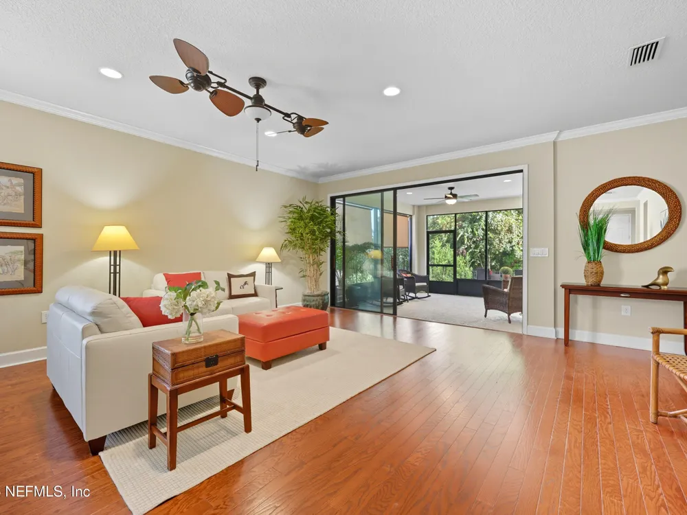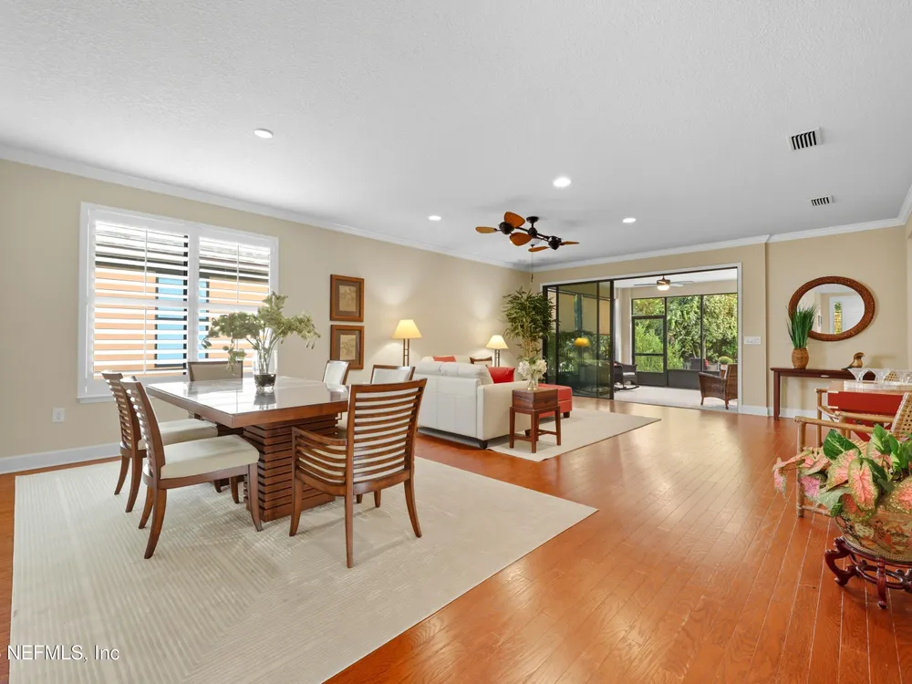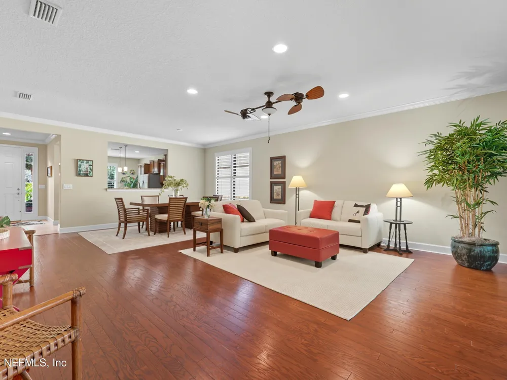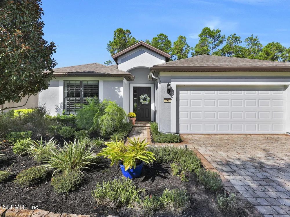 INCREDIBLE PRICE for this 2 bedroom with flex room, 2 bath home on a DOUBLE PRESEVE Lot ! Come visit 780 Wandering Woods in beautiful Ponte Vedra, FL, where charming meets modern comfort. This inviting home, provides a generous 1,922 sq. ft. and provides a serene and picturesque preserve setting in both the front and rear. Wandering Woods is a lovely tree-lined road with lots of preserve for a pleasant walk. Enjoy lots of natural light, a NEW ROOF and NEW energy efficient (low E windows). Enjoy your morning coffee or breakfast overlooking the front preserve. This Chef's Delight kitchen features expansive granite countertops and tons of cabinets with an inviting eat-in area. You'll appreciate the gleaming WOOD FLOORS along with PLANTATION SHUTTERS and CROWN MOLDING. This home boasts an abundance of large windows that fill the space with natural light. The OPEN living & dining rooms are designed to open to a covered, screened lanai leading to a paver patio, (See More) overlooking the rear preserve while watching your pets romp around the fenced-in yard. The flex room is perfect for those seeking an office or a den retreat. The house has been freshly painted. This home also has an Extended Garage giving you more space for tools, bikes and extra storage. Enjoy all the amenities that not only Del Webb offers here but also all the Nocatee pools and their amenities. Great fpr grandchildren and guests. Del Webb has an amazing resort pool with lap lanes, beach entry perfect for floating. The Anastasia Clubhouse is amazing with a Ballroom & Stage, Craft Room, Billiard room, Cafe, Card/Game Rooms, Exercise equipent Room, Exercise Class Room, Sauna, Steam, Hot tub, Massage Room and all the 60 Classes they have to offer! If this is not enough...try the Nocatee amenities with your guests too. Enjoy your next home in our beautiful 55+ community with fabulous amenities in Riverwood and throughoiut Nocatee.