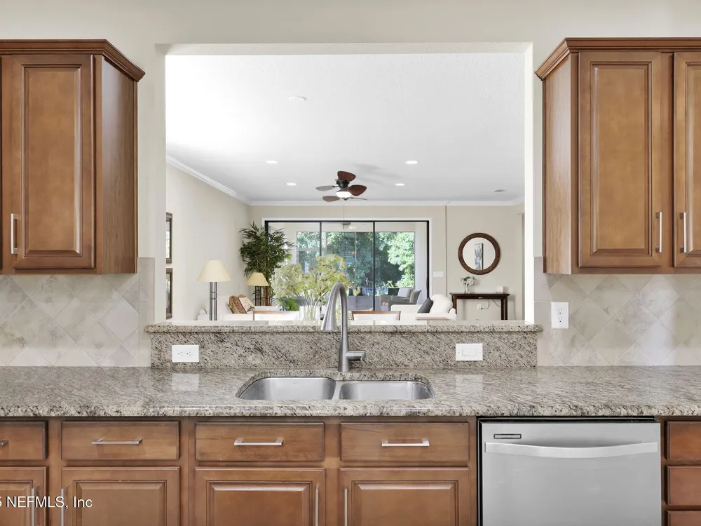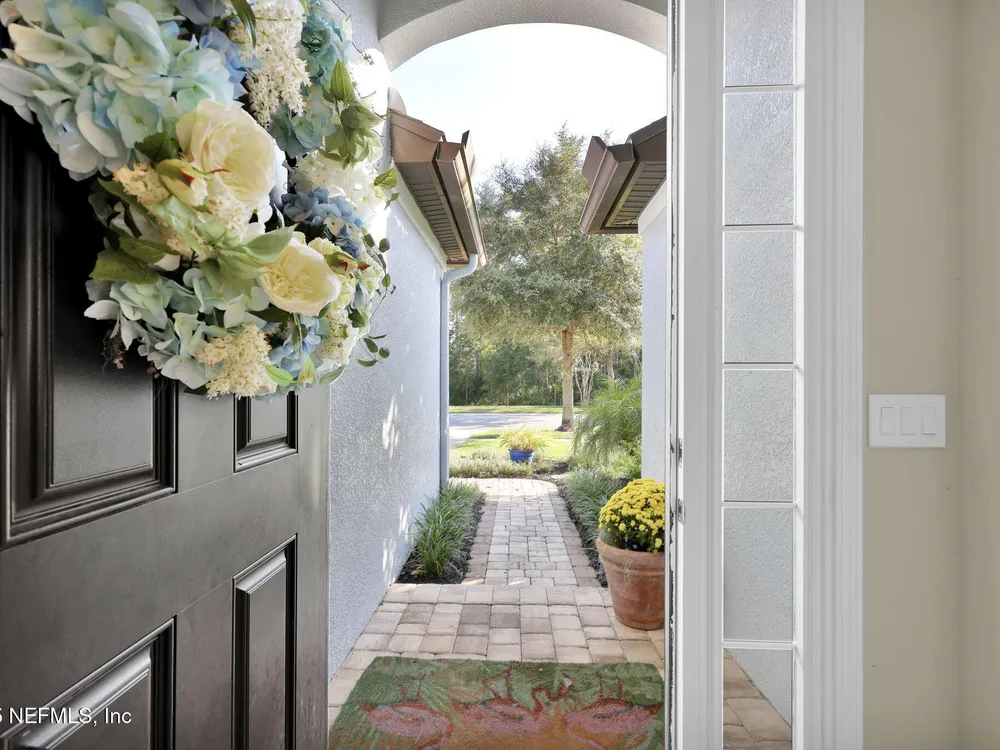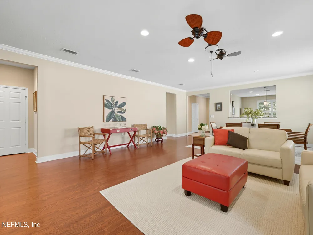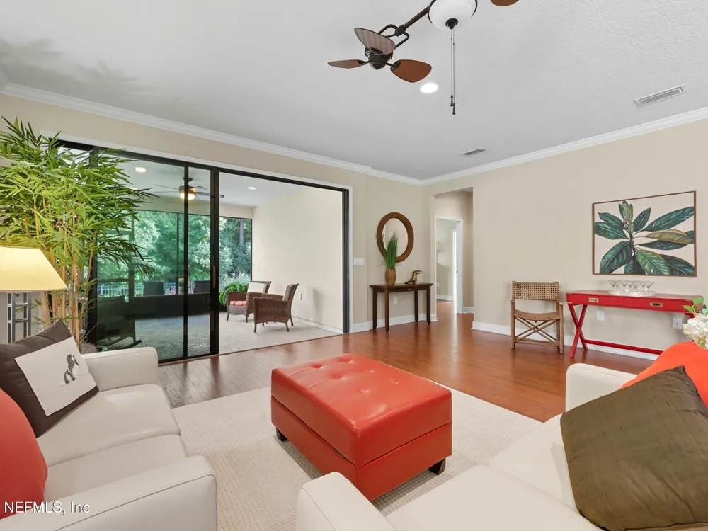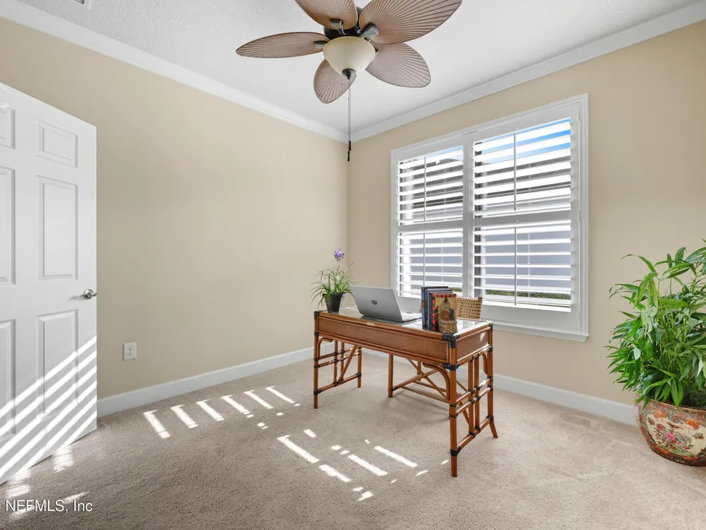INCREDIBLE PRICE for this 2 bedroom with flex room, 2 bath home on a DOUBLE PRESEVE Lot ! Come visit 780 Wandering Woods in beautiful Ponte Vedra, FL, where charming meets modern comfort. This inviting home, provides a generous 1,922 sq. ft. and provides a serene and picturesque preserve setting in both the front and rear. Wandering Woods is a lovely tree-lined road with lots of preserve for a pleasant walk. Enjoy lots of natural light, a NEW ROOF and NEW energy efficient (low E windows). Enjoy your morning coffee or breakfast overlooking the front preserve. This Chef's Delight kitchen features expansive granite countertops and tons of cabinets with an inviting eat-in area. You'll appreciate the gleaming WOOD FLOORS along with PLANTATION SHUTTERS and CROWN MOLDING. This home boasts an abundance of large windows that fill the space with natural light. The OPEN living & dining rooms are designed to open to a covered, screened lanai leading to a paver patio, (See More) overlooking the rear preserve while watching your pets romp around the fenced-in yard. The flex room is perfect for those seeking an office or a den retreat. The house has been freshly painted. This home also has an Extended Garage giving you more space for tools, bikes and extra storage. Enjoy all the amenities that not only Del Webb offers here but also all the Nocatee pools and their amenities. Great fpr grandchildren and guests. Del Webb has an amazing resort pool with lap lanes, beach entry perfect for floating. The Anastasia Clubhouse is amazing with a Ballroom & Stage, Craft Room, Billiard room, Cafe, Card/Game Rooms, Exercise equipent Room, Exercise Class Room, Sauna, Steam, Hot tub, Massage Room and all the 60 Classes they have to offer! If this is not enough...try the Nocatee amenities with your guests too. Enjoy your next home in our beautiful 55+ community with fabulous amenities in Riverwood and throughoiut Nocatee.
