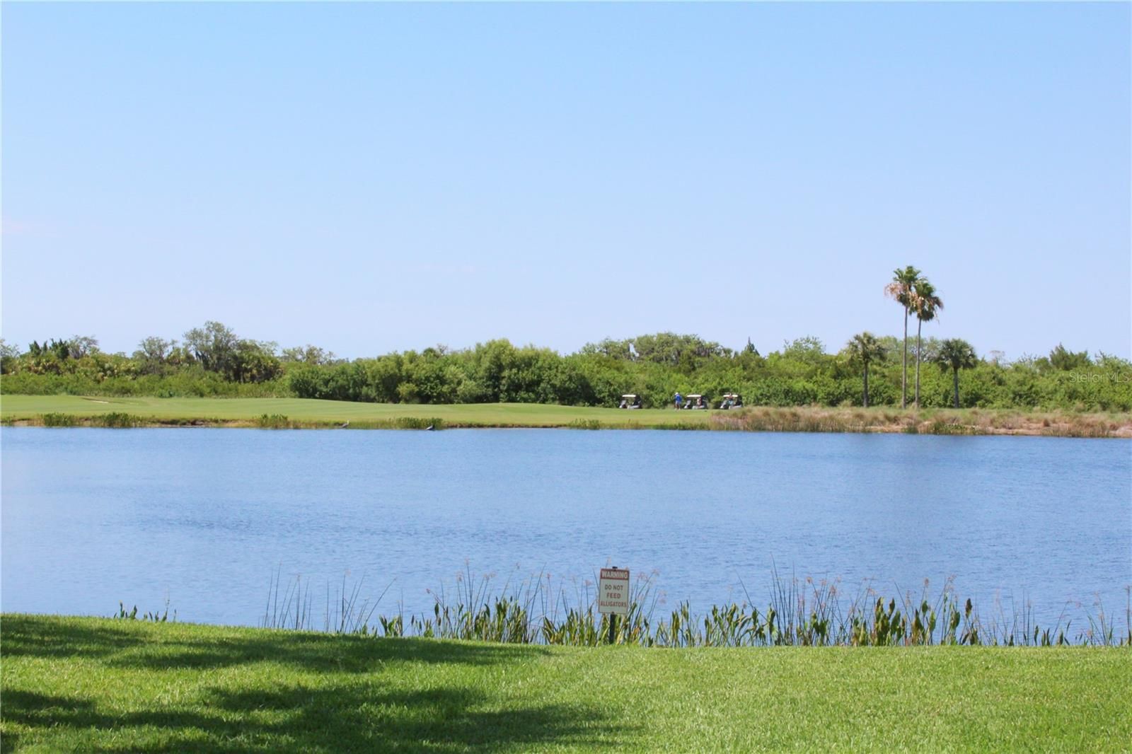 You’ll enjoy an active Florida lifestyle in this immaculately maintained "GOLF INCLUDED" 2 bedroom, 2 bath FULLY FURNISHED AND EQUIPPED residence on golf course. Open floor plan home is located in the gated golf community - River Strand Golf & Country Club in Bradenton, Florida. This lovely WATERFRONT 2nd floor (elevator) meticulously maintained condo offers it all: HURRICANE IMPACT glass throughout, spacious storage room right outside your door, assigned covered parking space, stainless steel appliances, ceramic tile flooring in the main areas, ceiling fans in all rooms and much more! Lanai overlooks the Golf Course and Lake which supports a wonderful array a lot of birds. The residence is located just across the street from one of community pools, 5min. from Golf Clubhouse with fully equipped fitness, gourmet restaurant, main pool with tiki bar and 9 tennis courts. River Strand is a private community with 24/7 security. The 27-hole championship golf course was designed by Arthur Hills, featuring spectacular views of the Manatee River and panoramic greens and fairways. The club also offers nine lit, Har-Tru tennis courts with on-site tennis pro shop; Pickle Ball, multiple pools, two modern fitness centers. A beautiful 39,000 sq. ft. Tuscan-inspired main clubhouse offering casual and fine dining, a bar and grill room, billiard room, card room, conference room, golf pro shop, resort style pool with "sand" beach and tiki bar. River Strand has magnificently landscaped grounds with running and biking trails. Enjoy the warm and sunny beaches of the Florida Gulf Coast, and Sarasota too!