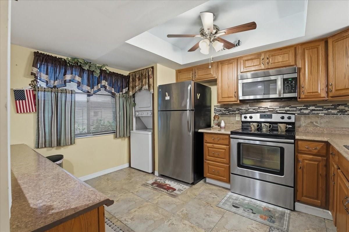 Welcome to effortless Florida living in the enchanting 55+ community of Country Oaks! This delightful maintenance-free condo offers the perfect blend of comfort, convenience, and an active Florida lifestyle. Featuring 2 spacious bedrooms and 2 full baths, this residence welcomes you with a large, light-filled living and dining area complete with sliding glass doors that open to a private screened patio—ideal for morning coffee or evening relaxation. The kitchen is thoughtfully designed with abundant cabinet space, stainless steel appliances, a stylish tile backsplash, and an elegant tray ceiling. A convenient stacking washer and dryer are discreetly tucked away for easy everyday living. Retreat to the serene primary suite, your personal sanctuary, boasting an oversized walk-in closet and direct access to the screened patio through sliding doors. The patio also includes a handy storage closet—perfect for beach gear, coolers, seasonal décor, and more. Enjoy true peace of mind with an HOA that covers an extensive list of amenities, including cable, water, sewer, trash, lawn care, exterior maintenance (including roof), pest control, and beautifully maintained grounds, lakes, and courtyards. Residents also enjoy access to a refreshing community pool and the support of an on-site manager, creating a truly effortless lifestyle. Ideally located near top dining, shopping, entertainment, stunning Gulf beaches, and major highways, this home offers the best of both relaxation and accessibility. Discover the charm and convenience of Country Oaks—where every day feels like a vacation!