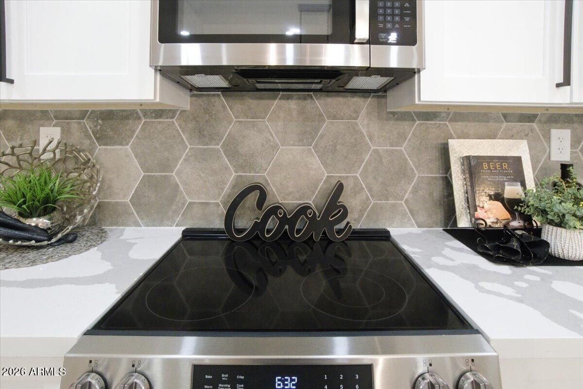 - Refrigerator, Built-in Microwave, Dishwasher, Disposal, Electric Range