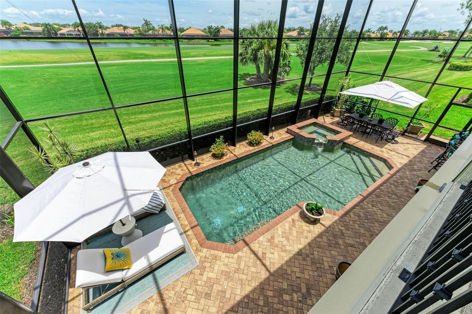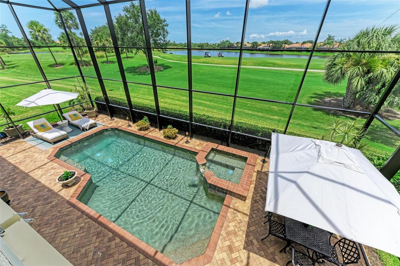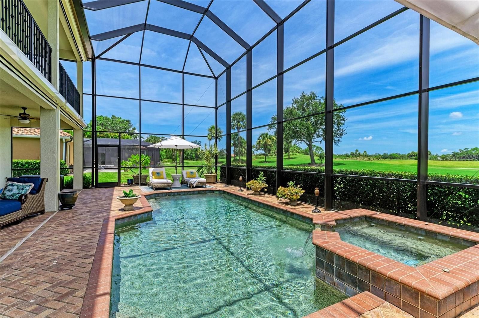 Welcome to The Estates at River Strand Golf & Country Club! This exquisite 5 bedroom, 4 bath home has been lovingly cared for and stylishly updated and includes a den, a loft, and spacious bonus room! The newly renovated (2023) gourmet kitchen has quartz countertops with pop up outlets and matching quartz backsplash, two tone cabinets, new high end stainless steel appliances with range hood, custom soft close cabinetry, a pantry, under counter LED lighting, and ledger stone touches that match the fireplace. The kitchen flows into the family room with a new electric 74 " Ledger Stone Fireplace with marble mantel and hearth, sliding doors to the lanai, and golf course views. The large dining room is off the kitchen and is perfect for entertaining. The private, brick paver lanai has a NEW screen cage, plenty of covered space, a bar/grill , a hot tub, heated pool, and a pool bath entrance. The grand split staircase has newly installed engineered hardwood floors that continue throughout the upstairs. The owner’s suite is luxuriously appointed with beautiful golf course and lake views, walk-in custom built closets , and a slider door to lanai patio. The ensuite has dual vanities, a garden tub, and a walk-in shower. The three additional bedrooms are perfect for family and guests, two of which have entrance to the covered second story lanai patio and expansive views. The upstairs also has a loft and a HUGE bonus room with a bathroom that could be used as an additional bedroom. The pics say it all about the thoughtful touches that went into this beautiful home! Additional upgrades include lighting, fan fixtures, kitchen hardware, as well exterior/interior paint, new pool pump, remote control hurricane see through drop down covers with remote control and Bond bridge for wi-fi app control, 2 NEW A/C units with programmable thermostats, a whole home water softner & Reverse Osmosis, Engineered Hardwood flooring has 100 yr warranty! This immaculate home has over $150k of upgrades! River Strand Golf & Country Club offers so many amenities for your lifestyle; Recently renovated 27 Hole Andrew Green designed golf course, aqua driving range, 9 Har Tru Tennis Courts, 8 Pickleball Courts, 2 Resort Style Pools, 6 additional pools, Clubhouse with restaurant, social events, Tiki Bar, 2 fitness centers, 24- hour security, and lawn maintenance! Conveniently located near I-75, Costco, UTC Mall, and our beautiful Gulf Beaches! Make this Dream Home yours!
