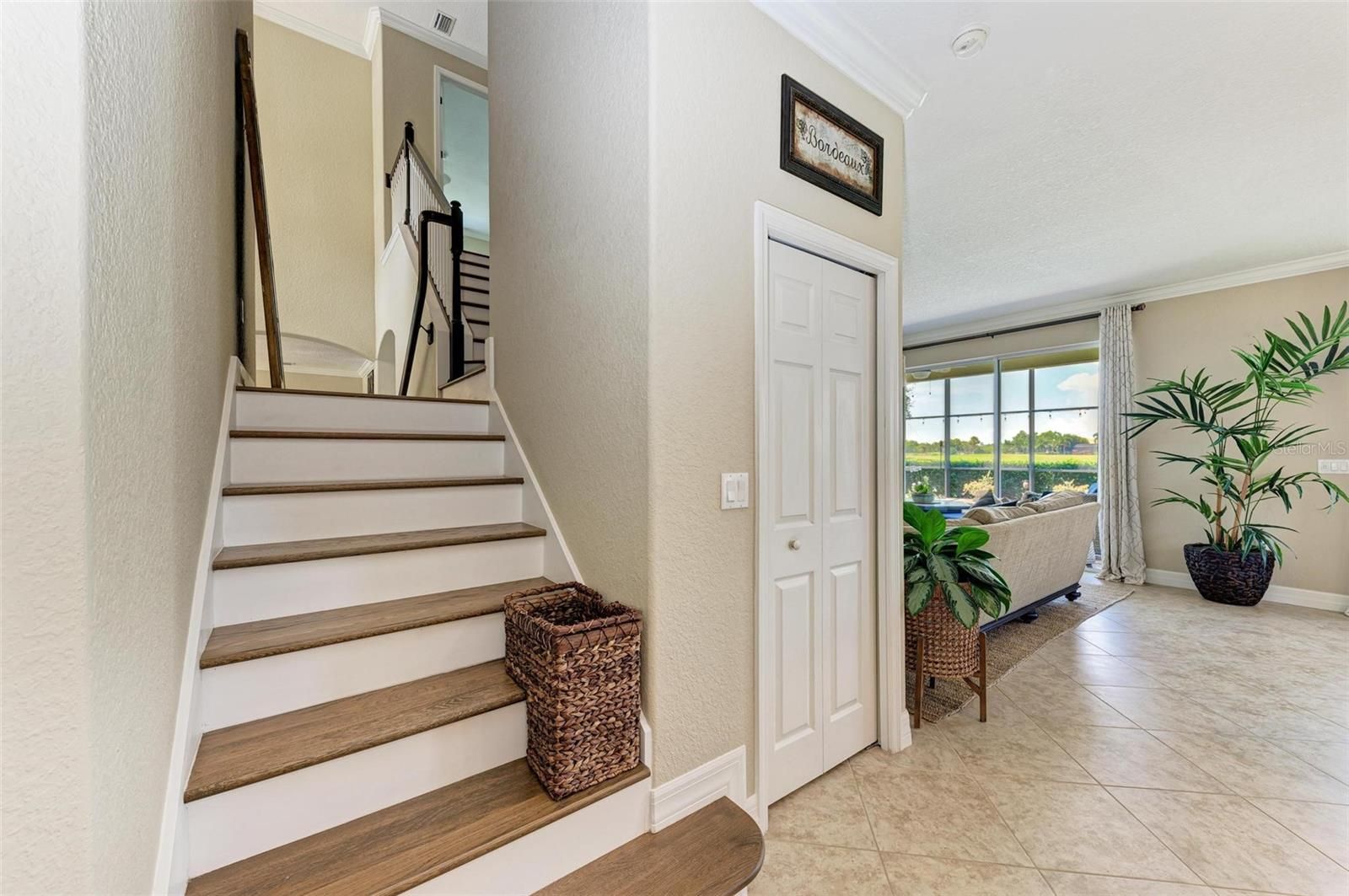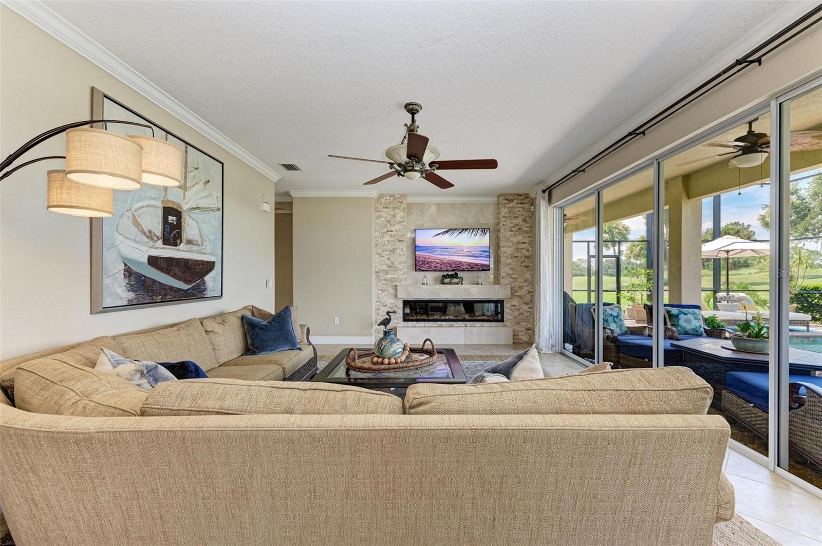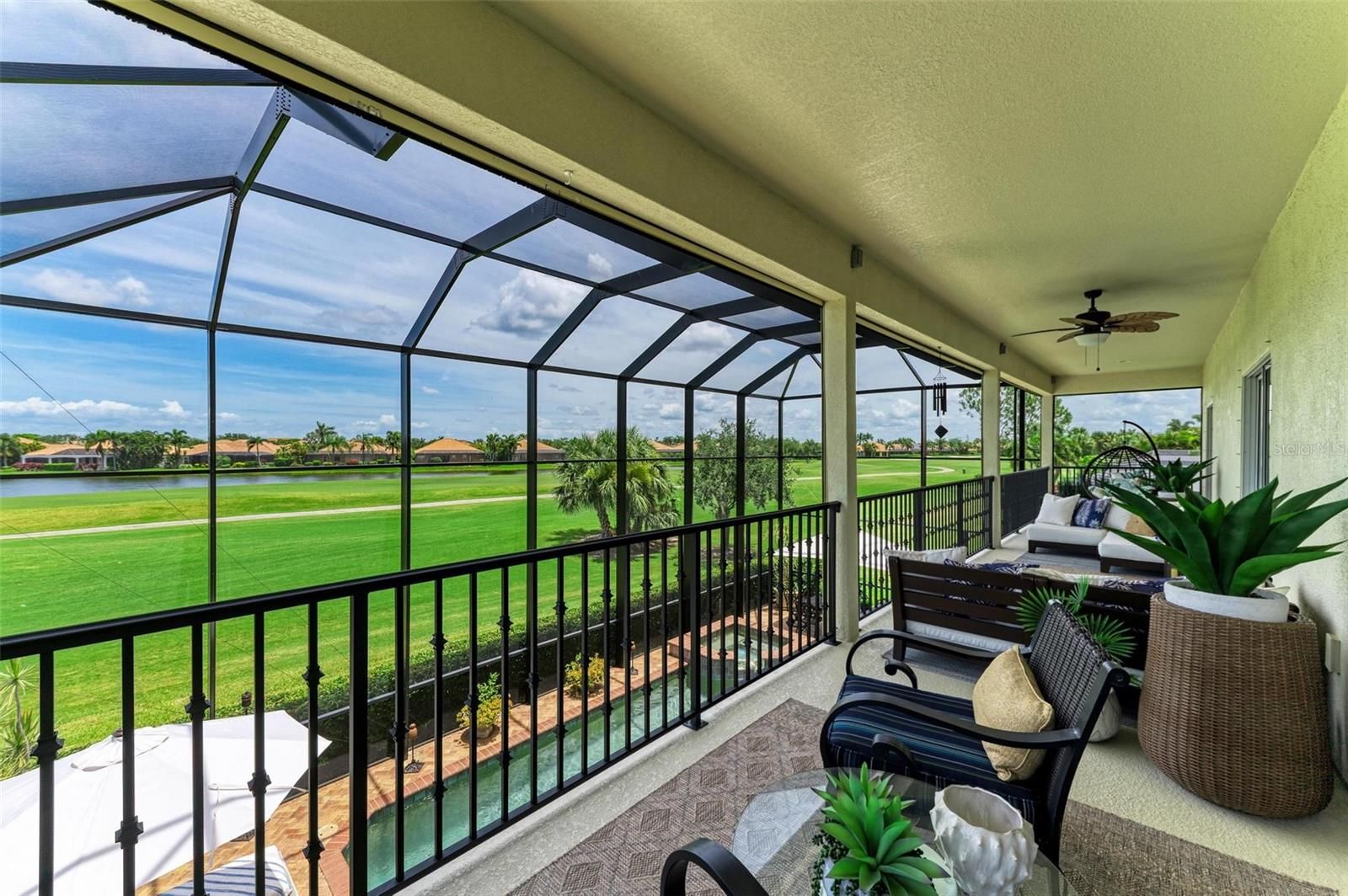 Welcome to The Estates at River Strand Golf & Country Club! This exquisite 5 bedroom, 4 bath home has been lovingly cared for and stylishly updated and includes a den, a loft, and spacious bonus room! The newly renovated (2023) gourmet kitchen has quartz countertops with pop up outlets and matching quartz backsplash, two tone cabinets, new high end stainless steel appliances with range hood, custom soft close cabinetry, a pantry, under counter LED lighting, and ledger stone touches that match the fireplace. The kitchen flows into the family room with a new electric 74 " Ledger Stone Fireplace with marble mantel and hearth, sliding doors to the lanai, and golf course views. The large dining room is off the kitchen and is perfect for entertaining. The private, brick paver lanai has a NEW screen cage, plenty of covered space, a bar/grill , a hot tub, heated pool, and a pool bath entrance. The grand split staircase has newly installed engineered hardwood floors that continue throughout the upstairs. The owner’s suite is luxuriously appointed with beautiful golf course and lake views, walk-in custom built closets , and a slider door to lanai patio. The ensuite has dual vanities, a garden tub, and a walk-in shower. The three additional bedrooms are perfect for family and guests, two of which have entrance to the covered second story lanai patio and expansive views. The upstairs also has a loft and a HUGE bonus room with a bathroom that could be used as an additional bedroom. The pics say it all about the thoughtful touches that went into this beautiful home! Additional upgrades include lighting, fan fixtures, kitchen hardware, as well exterior/interior paint, new pool pump, remote control hurricane see through drop down covers with remote control and Bond bridge for wi-fi app control, 2 NEW A/C units with programmable thermostats, a whole home water softner & Reverse Osmosis, Engineered Hardwood flooring has 100 yr warranty! This immaculate home has over $150k of upgrades! River Strand Golf & Country Club offers so many amenities for your lifestyle; Recently renovated 27 Hole Andrew Green designed golf course, aqua driving range, 9 Har Tru Tennis Courts, 8 Pickleball Courts, 2 Resort Style Pools, 6 additional pools, Clubhouse with restaurant, social events, Tiki Bar, 2 fitness centers, 24- hour security, and lawn maintenance! Conveniently located near I-75, Costco, UTC Mall, and our beautiful Gulf Beaches! Make this Dream Home yours!
