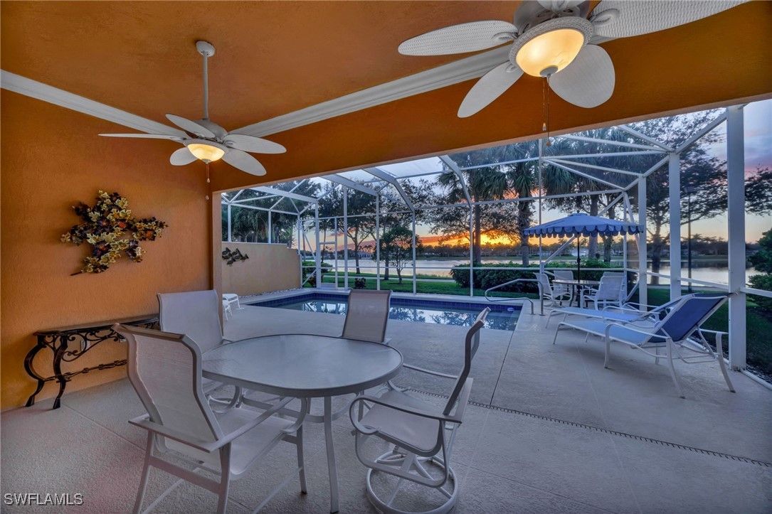 OAKMONT ON THE BIG LAKE LOCATION FACING WEST WITH A BRIDGE VIEW, 3 YEAR OLD ROOF, DESIRABLE SIDE LOAD GARAGE, CUSTOM QAURTZITE KITCHEN , CUSTOM WALL UNIT , FRESH PAINT , EXTENDED PORCELAIN TILE, WOOD FLOORING IN ALL BEDROOMS, NEW EPOXY GARAGE FLOOR,UPGRADED STAINLESS STEEL APPLIANCES. Don't forget all of the features that you can not purchase with a new Divosta Home: 12 & 10 FT CEILINGS, Poured concrete walls, Smooth coat walls inside through-out, finished closets systems, 6 ft privacy wall ON BACK LANAI, central vac, Verona Walk offers 24 hr. guarded gated entry, lighted tennis, bocce ball, basketball and pickle ball courts, resort-size community Lagoon pool, lap pool, tot lot, over 20 miles trails, 24/7 gym, post office, café/restaurant, ice cream Shoppe, hair salon, car wash, gas station, library, computer center, ballroom, card rooms, and a full-time activities director. Convenient to both Naples and Marco Island beaches, shops and fine dining, regional hospital and Edison college nearby. The low HOA dues also include lawn care & irrigation, basic cable TV.