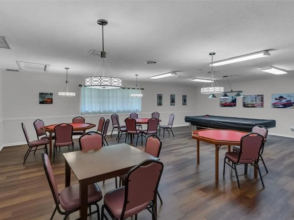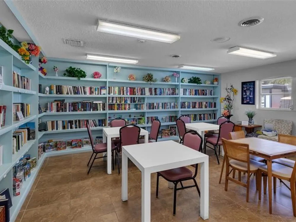 - Includes: Billiard Room, Clubhouse-Clubroom, Common Laundry, Community Room, Elevator, Fitness Center, Extra Storage, Heated Pool, Library, Shuffleboard, Trash Chute