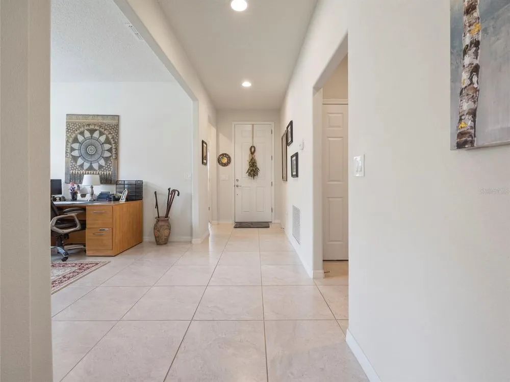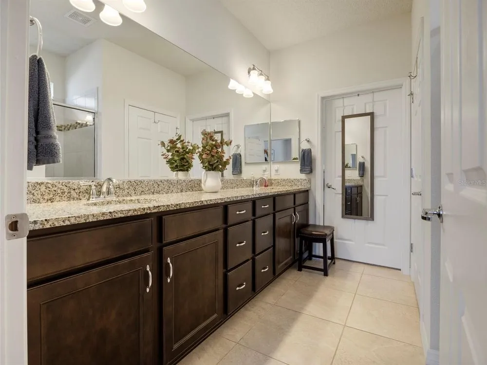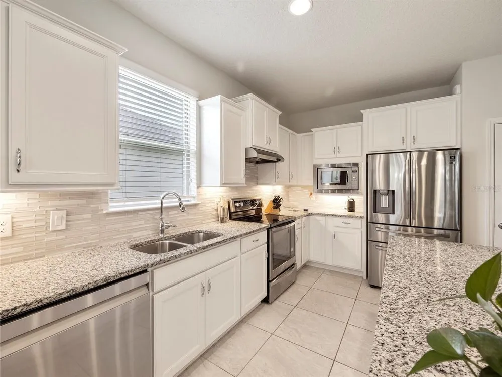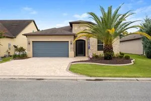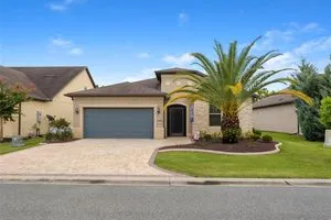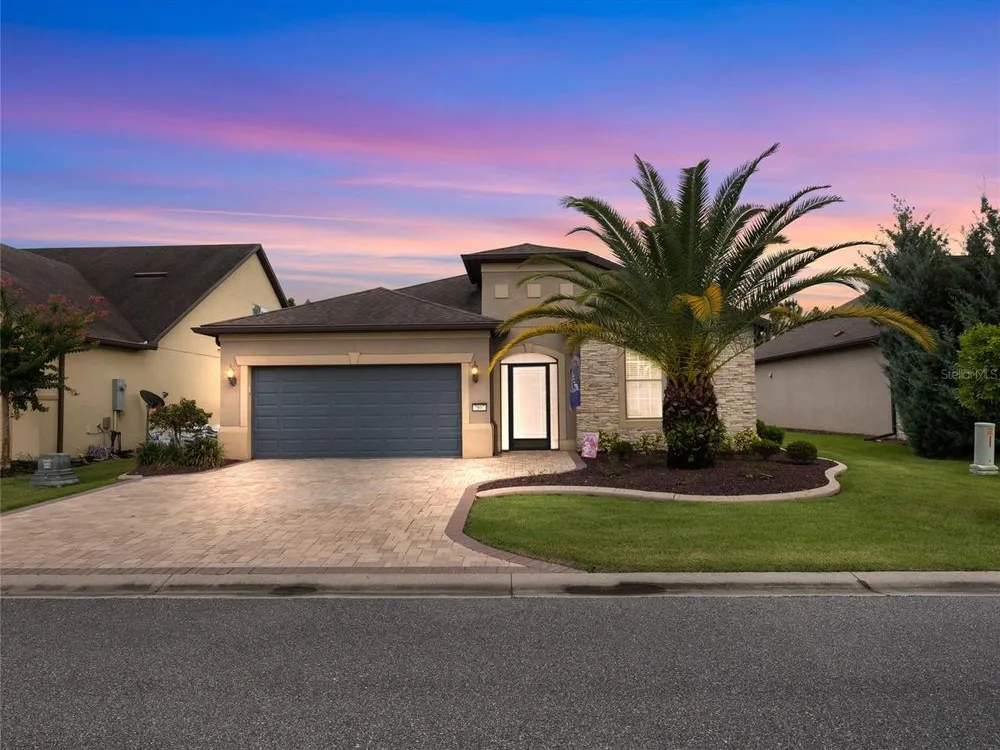 Discover effortless living in this beautifully maintained Abbeyville model with a sunroom, ideally nestled in the serene, resort-style Stone Creek by Del Webb community. The exterior is aesthetically pleasing, showcasing upgraded landscaping, hardscape, stonework, a screened front porch and a paver driveway and walkway. Inside, enjoy tile flooring throughout the main living areas and bathrooms, illuminated by ceiling fans and natural light through tasteful blinds. The chef's kitchen boasts modern stainless steel appliances, stunning staggered cabinets, sleek granite countertops, an elegant backsplash, under-cabinet lighting, and eye-catching pendant fixtures, making it perfect for every culinary adventure. Retreat to the spacious primary suite, complete with a tiled shower, granite vanity, and a generous walk-in closet. The guest bath offers a tiled tub and granite countertops for added comfort. The versatile flex room adapts to your needs, making it perfect as a home office, den, or creative space. The laundry room promotes added convenience with its large storage closet. Outside, unwind year-round on your screened, covered lanai, ideal for savoring morning coffee or evening relaxation. Additional features include a water softener, sliding glass doors, and an extended 2-car garage. Stone Creek offers a wealth of nearby amenities, including golf courses, pools, fitness centers, and social clubs. Don’t miss this opportunity. Schedule your private showing and experience resort-inspired living today!