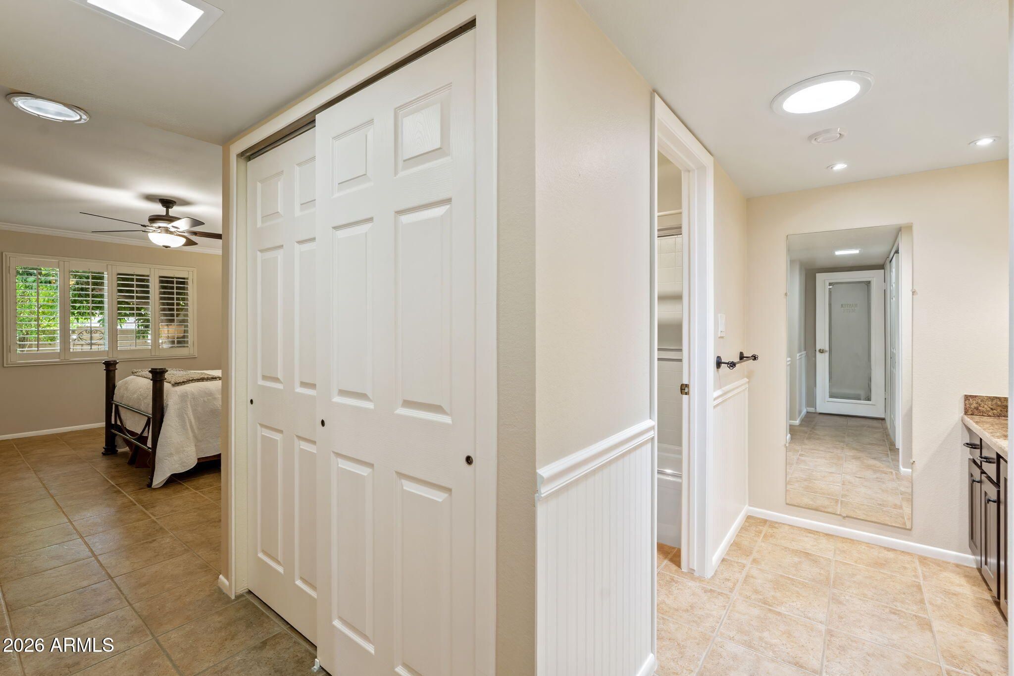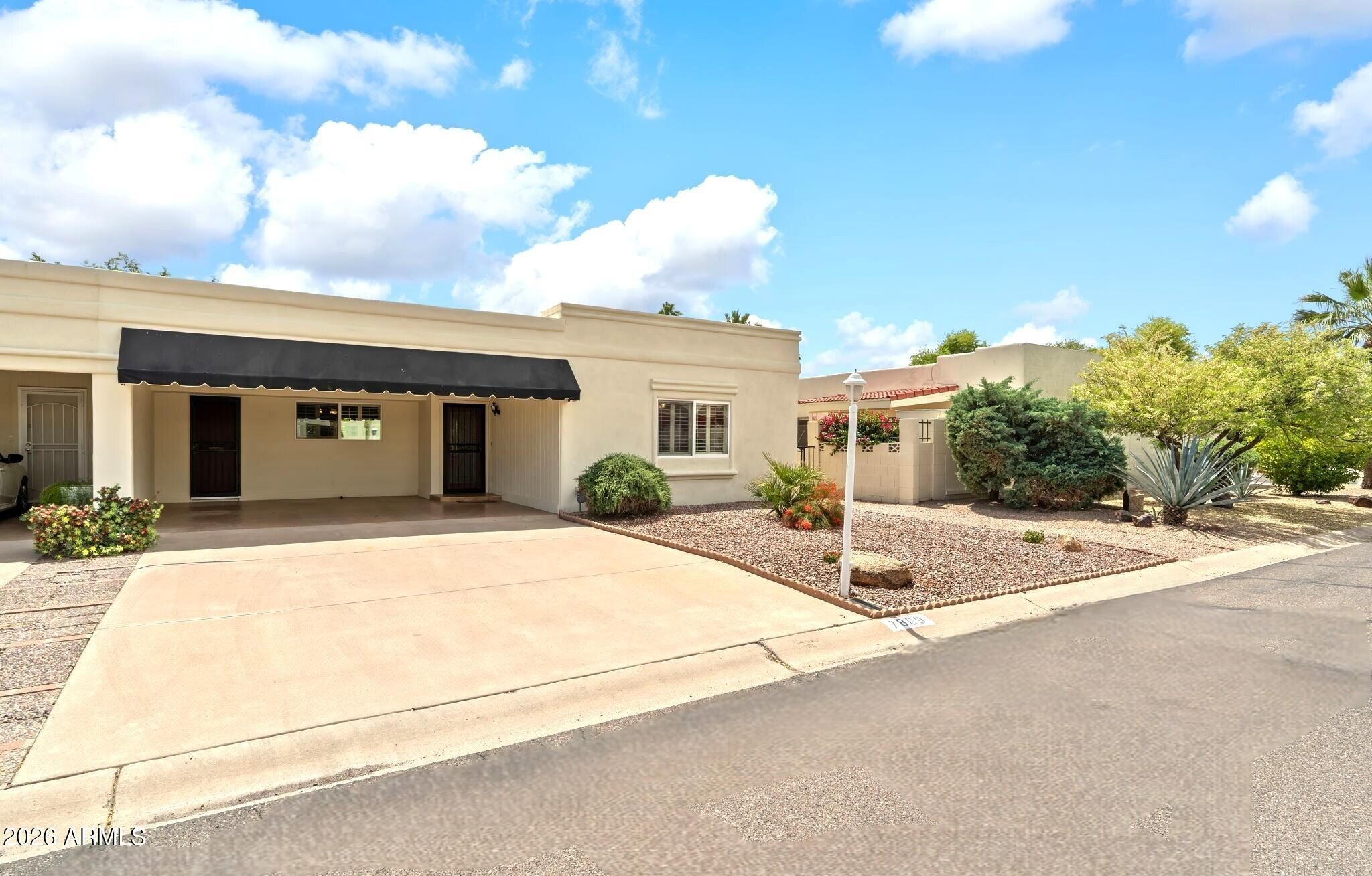 RARELY AVAILABLE in Villa Monterey's Seville Park, a *55+ Community *Large two bedroom SINGLE LEVEL floorplan END UNIT *Desirable TWO CAR CARPORT *Meticulously maintained and it shows! *NEW exterior stucco and paint *BRAND NEW ROOF *NEW interior paint *NEW gas water heater *AIR CONDITIONER/HEAT PUMP replaced in 2018 *DUAL PANE PELLA windows *PLANTATION SHUTTERS on every window and FLOOR-TO-CEILING in living room *NEUTRAL tile throughout *WHITE, SHAKER STYLE Kitchen cabinets, Corian counters, under cabinet lighting, upgraded appliances, BREAKFAST NOOK *Bathrooms updated (vanities, lighting, tile, glass door in primary) *SPACIOUS living areas with skylights, crown molding *STORAGE abounds with TRIPLE PRIMARY closets, hall linen closet and CUSTOM WALL UNIT in second bedroom *LEADED GLASS DOORS *Private and SECLUDED COVERED PATIO (with storage shed), opens to lushly landscaped common area with SPARKLING POOL *Laundry/Utility room *WASHER/DRYER conveys *Pet friendly *Close to OLD TOWN SCOTTSDALE, Fashion Square Mall, Scottsdale's Waterfront, CHAPARRAL LAKE & PARK, Golf Courses, Fine and Casual Dining, Greenbelt, Camelback Mountain, Talking Stick Resort, Spring Training Venues and much more *SEE THIS HOME TODAY!