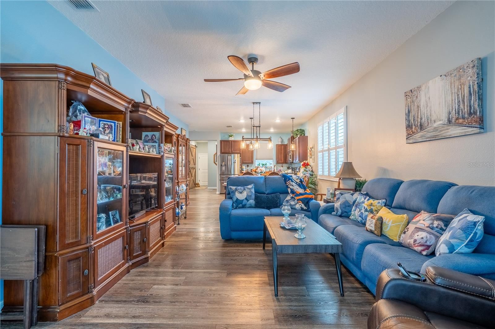 - Living/Dining Room, Open Floorplan, Smart Home, Solid Surface Counters, Solid-Wood Cabinets, Split Bedrooms, Thermostat, Walk-In Closet(s), Window Treatments