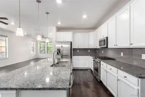 - Built-in Features, Ceiling Fan(s), Eat-in Kitchen, Granite Counters, High Ceilings, High Speed Internet, Kitchen Island, Open Floorplan, Pantry, Primary Suite, Solid Surface Counters, Vaulted Ceiling(s), Walk-In Closet(s)