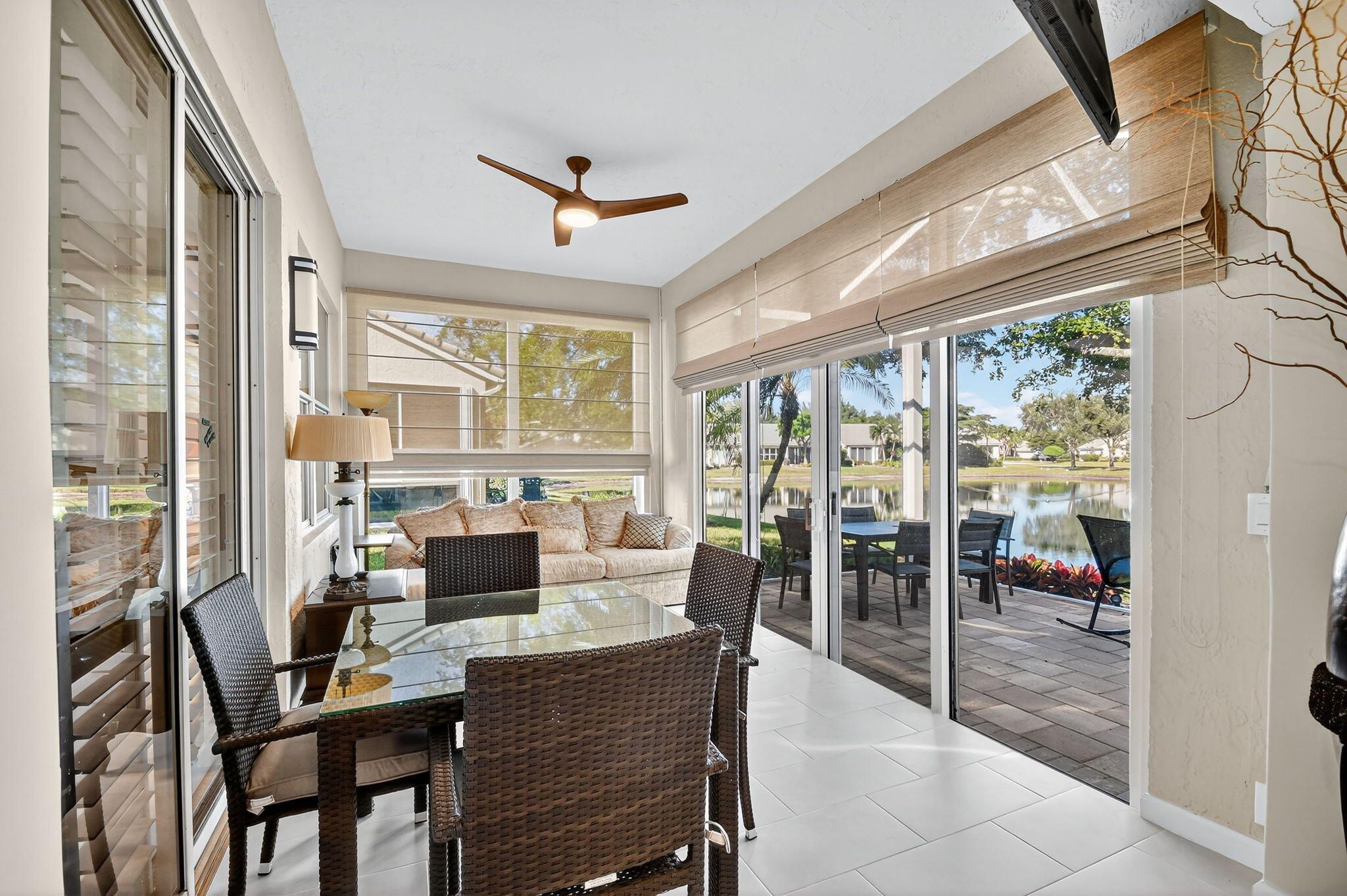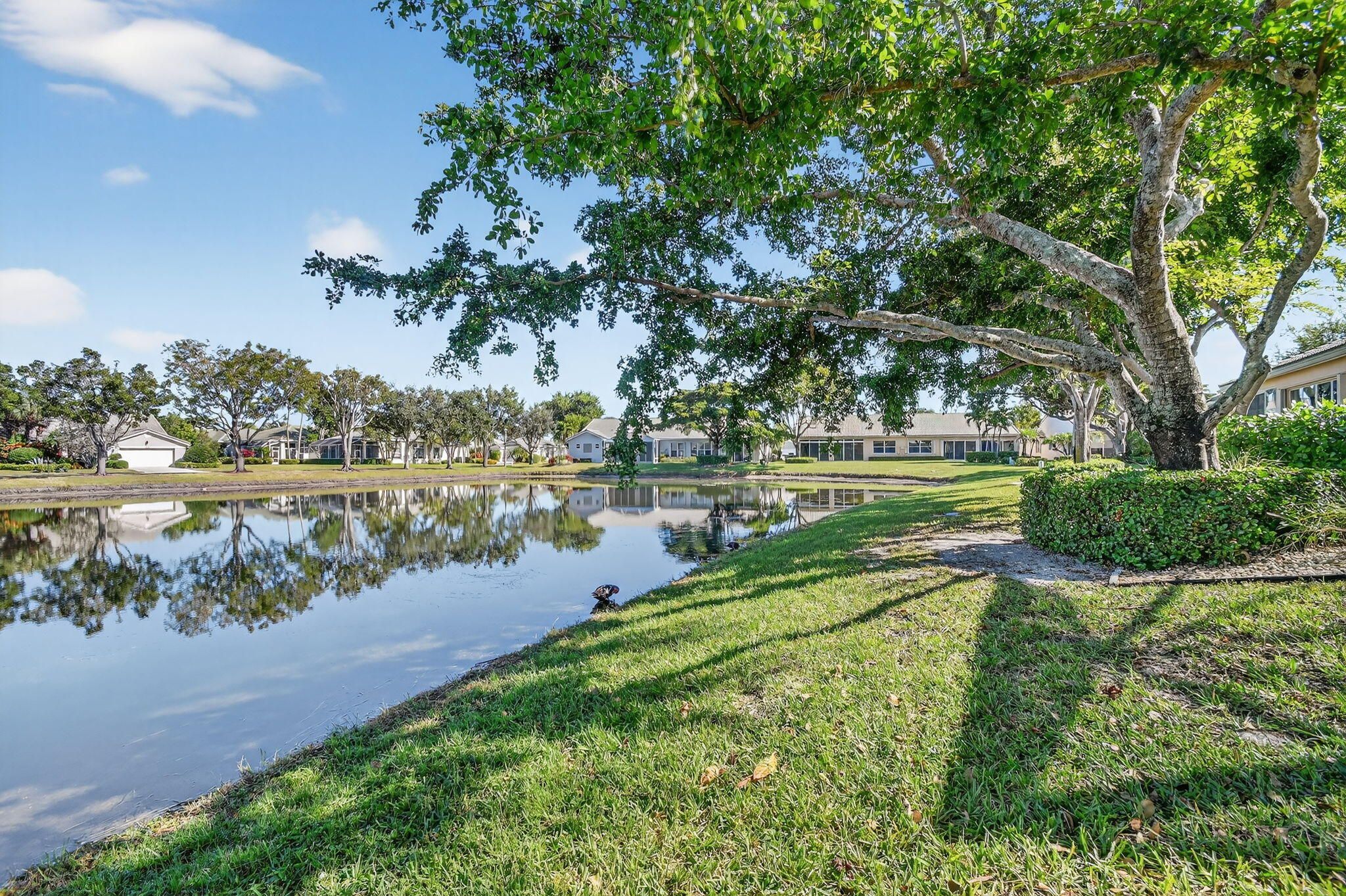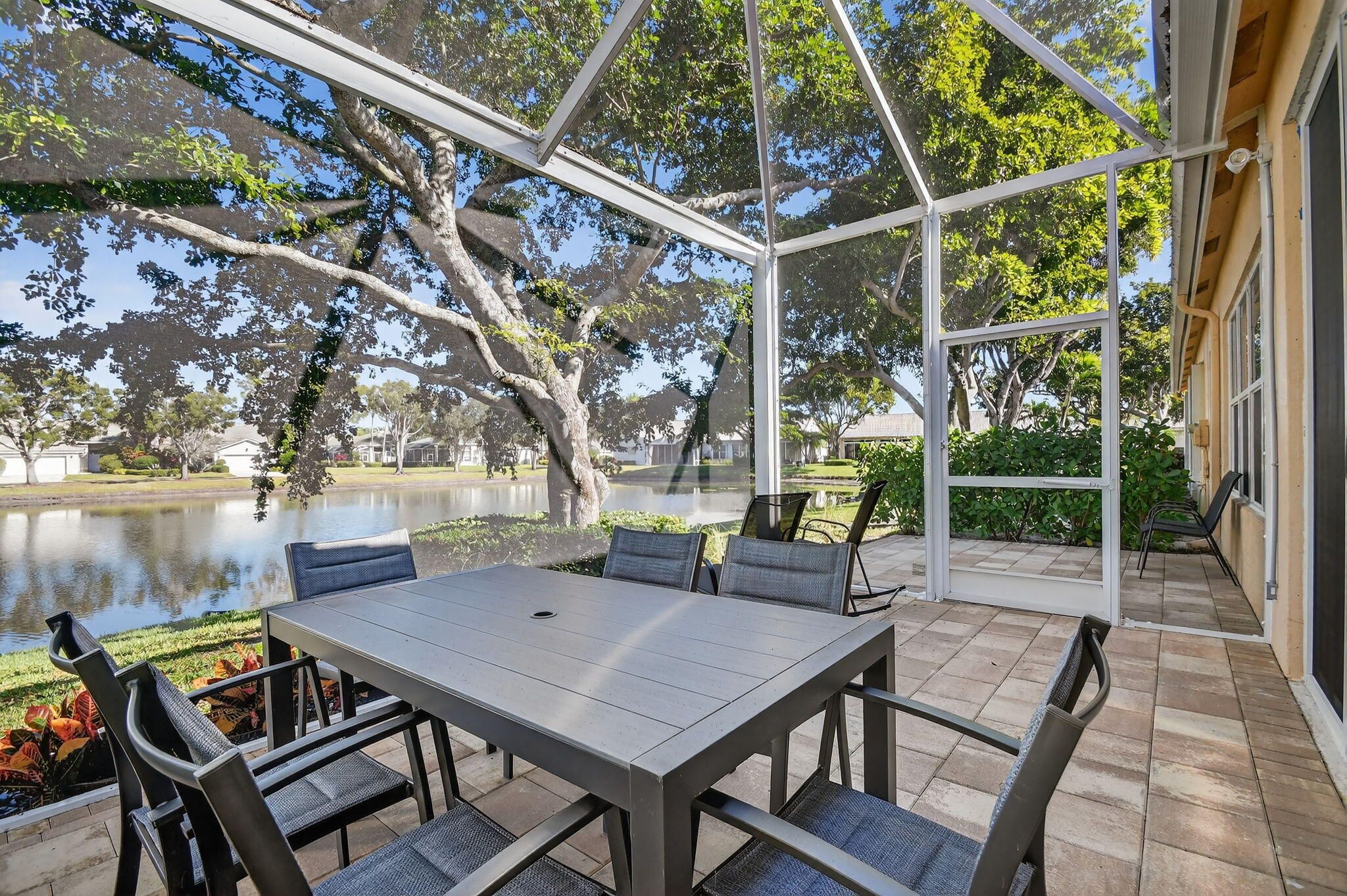 Welcome home to your slice of Florida at Aberdeen Country Club! A rare find-Redone 3BR/2BA Villa MOVE-IN READY. NEW IMPACT GLASS, current owner added AC sqft to enjoy the stunning lake view even more. The open concept living with an eat-in kitchen, formal dining, & 3 sitting additional living areas make entertaining easy. The kitchen features timeless Wood 42'' kitchen cabinets & thick stone countertops; both bathrooms are also upgraded. Classic Plantation shutters dress the window. Enjoy sunrise, sunset and the wildlife in your NEW SCREENED LANAI & NEW PATIO overlooking the lake. Your spacious laundry room leads to the 2 car newly epoxied garage. This villa is mint! Show and sell! Buyer & buyer's broker to verify all information contained herein-see more