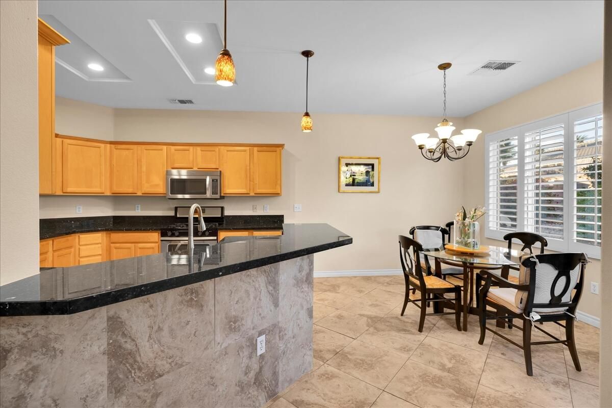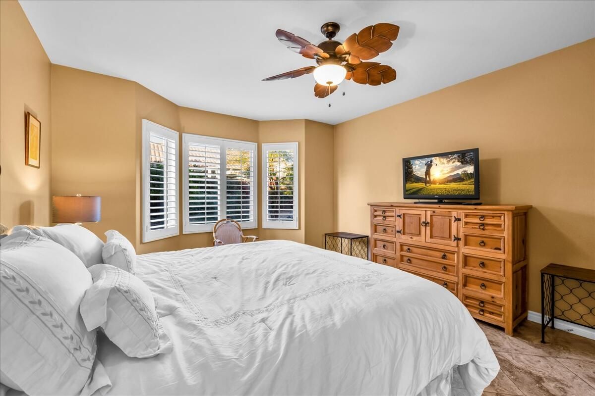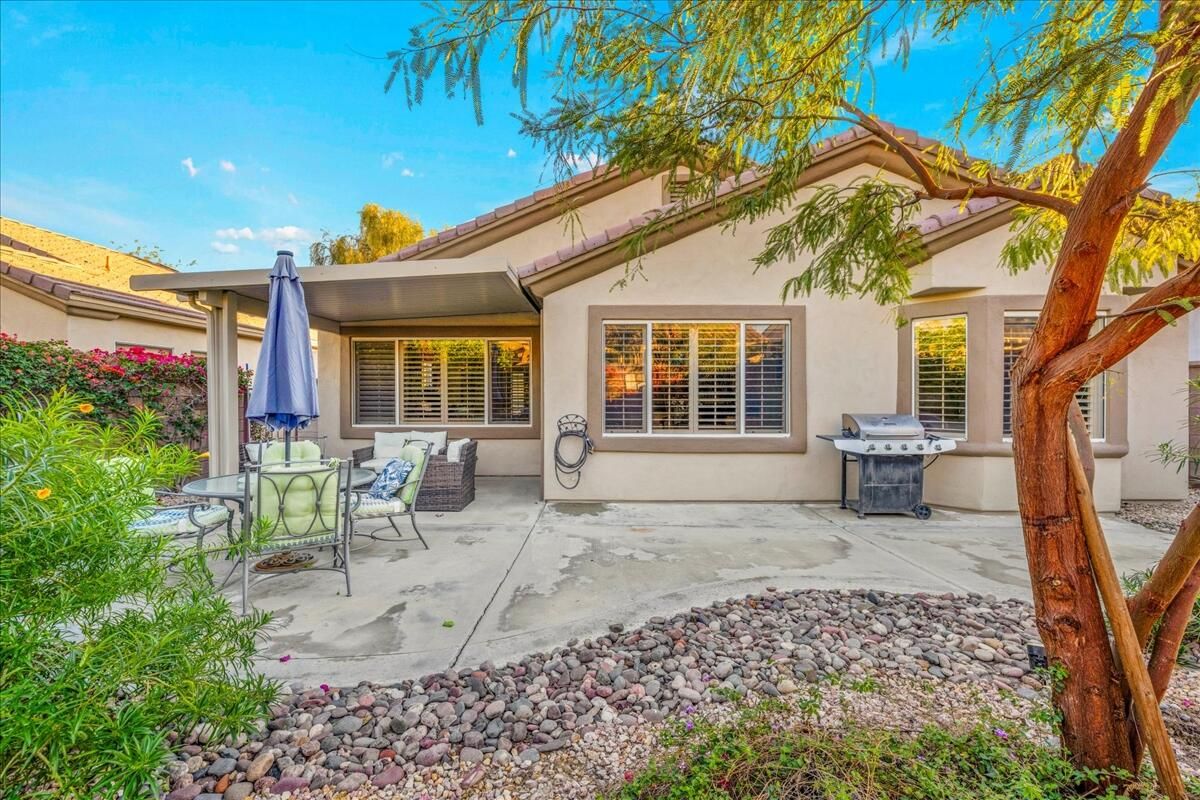 Barbados with Casita | The Ultimate Active Adult Retreat This highly sought-after Barbados floor plan offers the perfect layout for those who love to host. The standout feature is the spacious detached casita, which provides a private third bedroom and bathroom with its own separate entrance. This versatile space is ideal for a guest suite or home office, and it is also a fantastic option for those looking to generate extra rental income. Inside the main residence, you'll find 1,666 square feet of comfortable, Open Briht living space featuring extensive neutral tile, elegant plantation shutters, and maple cabinetry throughout. The kitchen is equipped with granite counters, a breakfast bar, and updated appliances. The primary suite serves as a relaxing retreat, complete with a bay window, a large walk-in closet, and a master bath featuring dual sinks and a glass-enclosed shower. The outdoor living space is just as impressive, boasting a north-facing backyard with an extended patio all surrounded by lush, mature desert landscaping. For those with extra gear, the garage has been extended by four feet, providing the essential depth needed for a golf cart or additional storage. The lifestyle at Sun City Palm Desert is designed specifically for a '55 and Better' community that wants to stay active and engaged. Ideally located between the Lakeview and Sunset View clubhouses, this home puts you just minutes away from three distinct clubhouses, two state-of-the-art gyms, an indoor walking track, and both indoor and outdoor pools. Residents enjoy world-class sports facilities including tennis courts, pickleball, and softball fields. This is an incredibly active community with nearly every social club you can imagine. Whether you are looking for a quiet desert oasis, a smart investment for extra income, or a vibrant social calendar, this home puts you right in the heart of the very best Sun City has to offer.