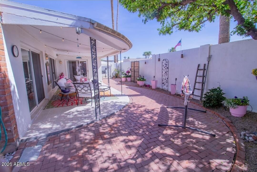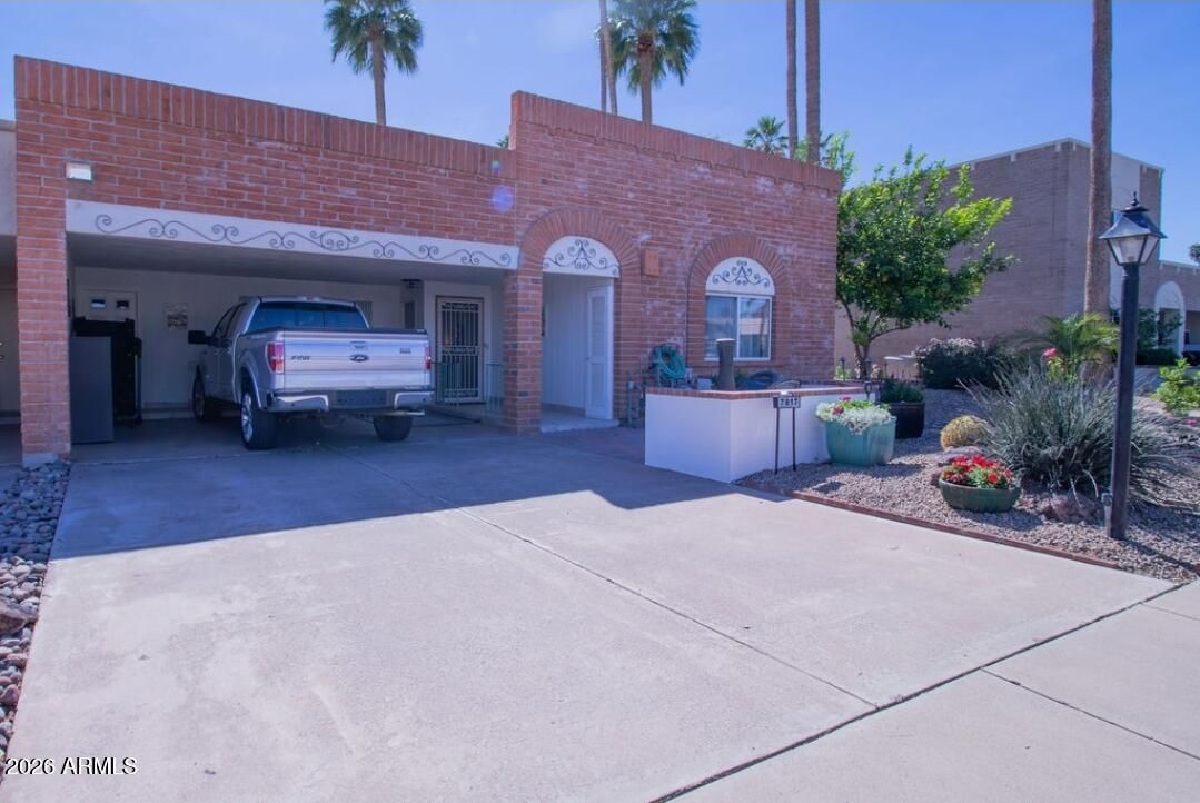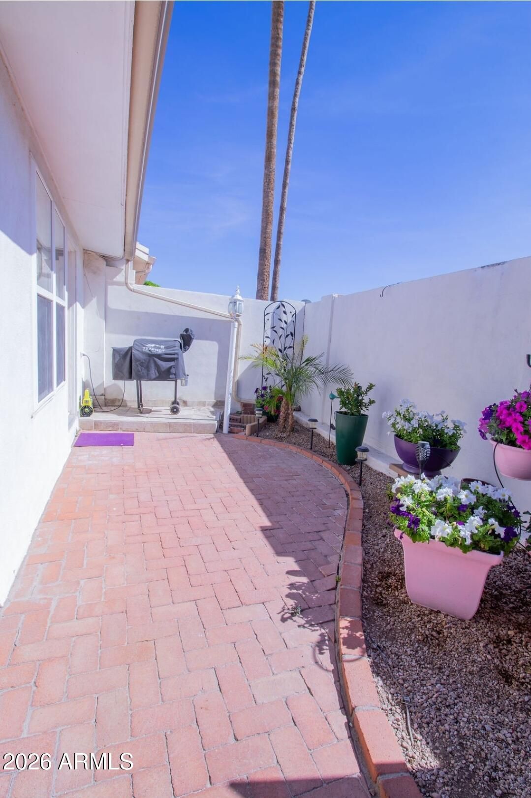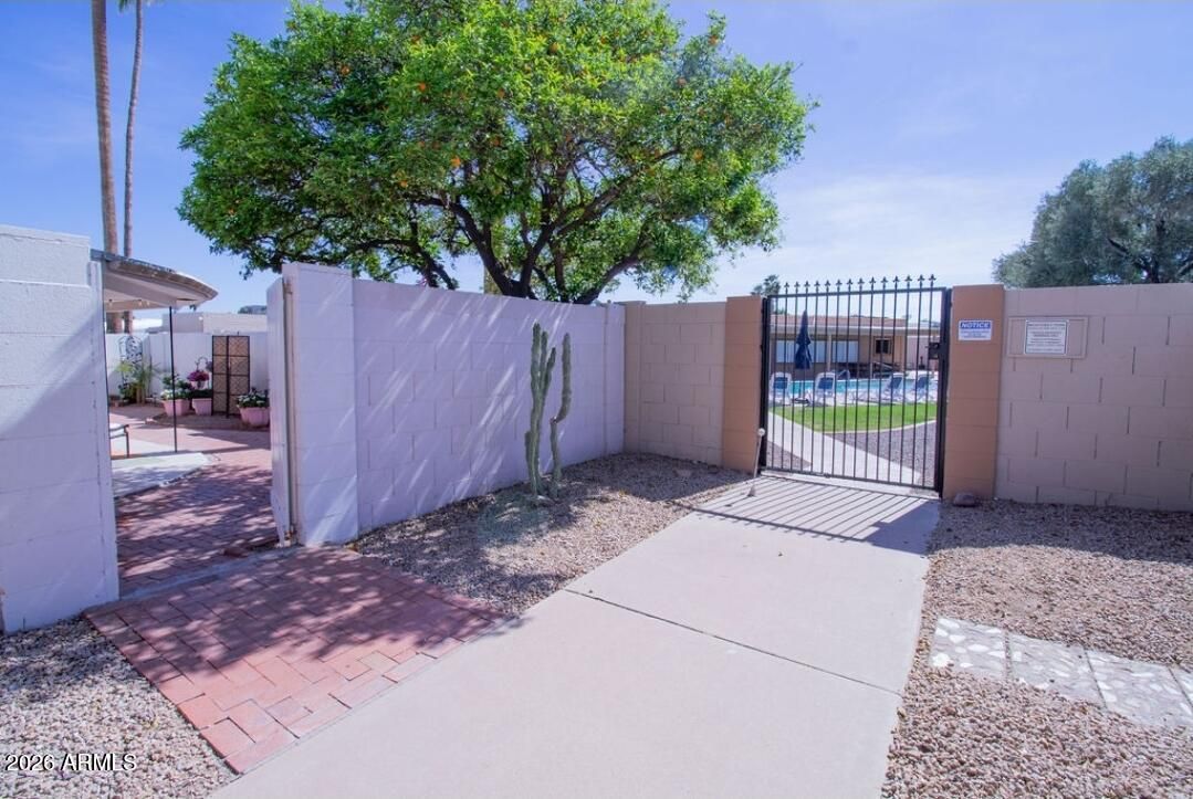 LOCATION! LOCATION! LOCATION! Just a hop skip and a jump from old town Scttsdale and Scottsdale Fashion Center in the coveted Villa Monterey 55+ community sits the cutest little home on the market . Right on the corner next to the pool accessable from the spacious patio, 2 bedrooms and 2 bathrooms this bright space is unmatched in the community. The kitchen has ample cabinets and counterspace. A little elbow grease and fresh paint have done wonders in this home. The primary suite is super spacious and opens to the expansive patio perfect for large gatherings or tranquil relaxation anytime. This particular unit is a rare treasure.