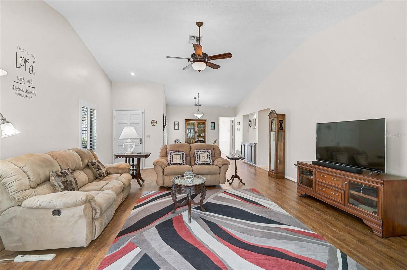 - Ceiling Fan(s), Eat-in Kitchen, Living/Dining Room, Stone Counters, Vaulted Ceiling(s), Window Treatments