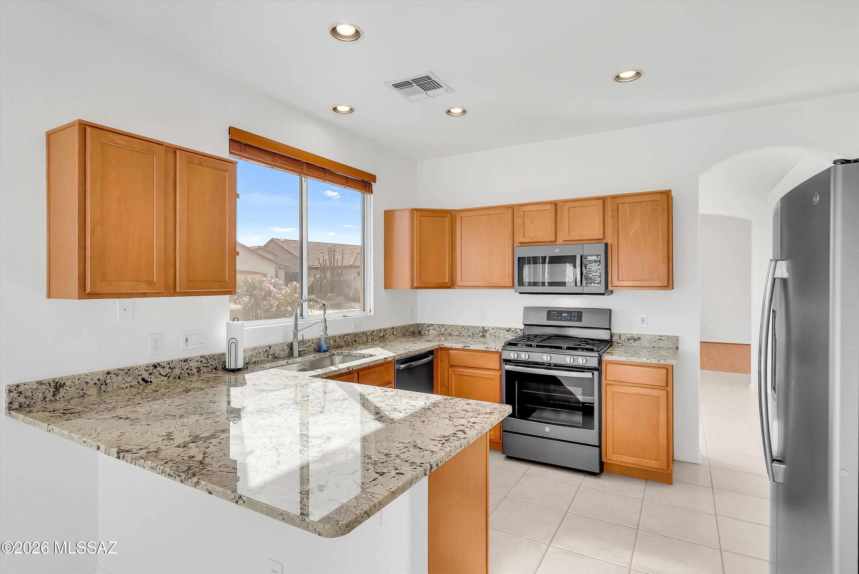 Located in the highly desirable Sunflower active adult community, this beautifully updated corner lot Santa Rita model offers 1,598 sq. ft. of thoughtfully designed living space.Step inside to find fresh interior paint throughout and a seamless blend of tile and laminate flooring--providing both style and easy maintenance. The kitchen shines with brand-new Alaskan White granite countertops and newer appliances making it ideal for everyday living and entertaining. Every countertop in the home has been upgraded to granite, creating a cohesive, high-end finish throughout.Both bathrooms have been tastefully updated with modern fixtures and finishes, offering a clean, contemporary feel. Enjoy all the amenities and lifestyle that Sunflower is known for.