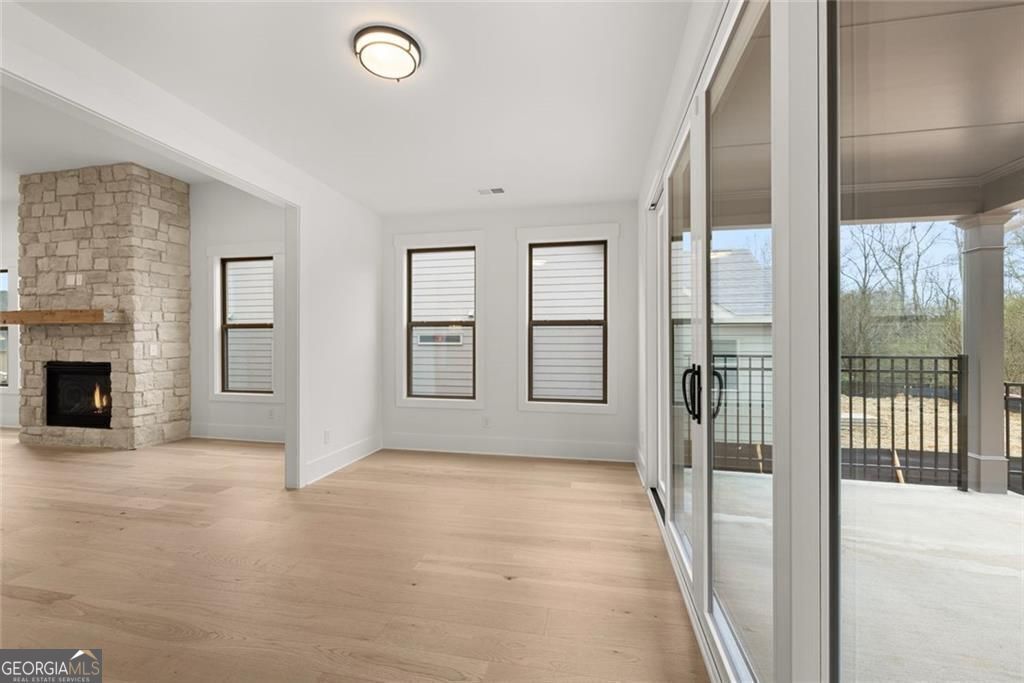 Pearson C plan. This 2 bed 2 1/2 bath is main floor living at its best. It includes a dining room, study, kitchen with large island that opens to the family room and breakfast room. The primary bedroom includes a sitting bay and bath with a huge walk-in closet that also has access to the laundry room. Secondary bedroom includes a walk in closet and easy access to hall bath. A sunroom in the living room that leads to a covered porch with an additional grilling patio. As well as a golf cart garage door. The Award-Winning Builder, Patrick Malloy Communities, provides an Award Winning 55 plus community project, Soleil Belmont Park. It features 471 low maintenance homes situated on large home sites. Located between the picturesque towns of Milton and Canton, Soleil Belmont Park provides a dream setting for active adults aged 55 and above. The Soleil brand has redefined active adult living in Georgia with its resort style of living. Residents of Soleil Belmont Park are privy to an array of amenities: a rejuvenating resort-style pool, a cutting-edge health & fitness center, a cozy coffee and cocktail bar, pickleball/tennis courts, bocce ball, a gourmet kitchen for catering, winding walking trails, flourishing gardens, and a dedicated arts & crafts studio. Further enriching the experience, an on-site lifestyle and travel director ensures an ever-evolving calendar of events and excursions. Joining the Soleil community means bidding adieu to seasonal chores and property upkeep. We offer comprehensive services, allowing residents the freedom to chase passions, kindle friendships, and truly relish life. For the discerning active adult, Soleil Belmont Park isn't just a community, its home.