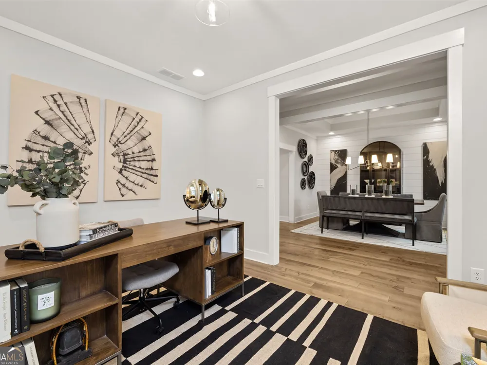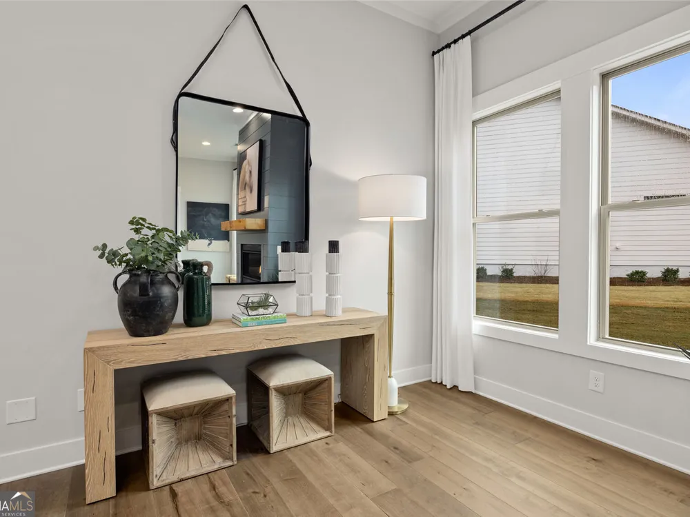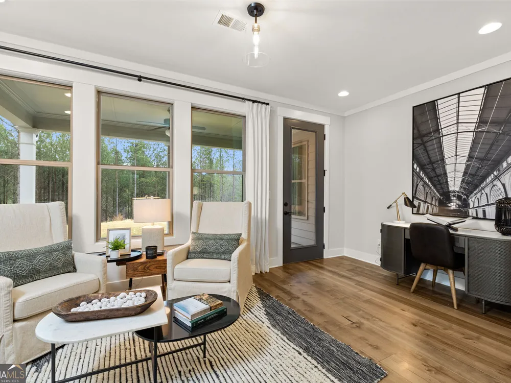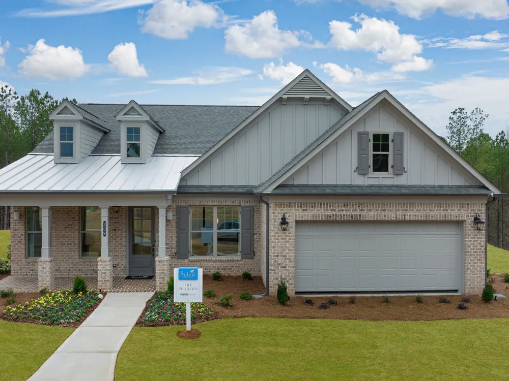 Pearson C plan. This 2 bed 2 1/2 bath is main floor living at its best. It includes a dining room, study, kitchen with large island that opens to the family room and breakfast room. The primary bedroom includes a sitting bay and bath with a huge walk-in closet that also has access to the laundry room. Secondary bedroom includes a walk in closet and easy access to hall bath. A sunroom in the living room that leads to a covered porch with an additional grilling patio. As well as a golf cart garage door. The Award-Winning Builder, Patrick Malloy Communities, provides an Award Winning 55 plus community project, Soleil Belmont Park. It features 471 low maintenance homes situated on large home sites. Located between the picturesque towns of Milton and Canton, Soleil Belmont Park provides a dream setting for active adults aged 55 and above. The Soleil brand has redefined active adult living in Georgia with its resort style of living. Residents of Soleil Belmont Park are privy to an array of amenities: a rejuvenating resort-style pool, a cutting-edge health & fitness center, a cozy coffee and cocktail bar, pickleball/tennis courts, bocce ball, a gourmet kitchen for catering, winding walking trails, flourishing gardens, and a dedicated arts & crafts studio. Further enriching the experience, an on-site lifestyle and travel director ensures an ever-evolving calendar of events and excursions. Joining the Soleil community means bidding adieu to seasonal chores and property upkeep. We offer comprehensive services, allowing residents the freedom to chase passions, kindle friendships, and truly relish life. For the discerning active adult, Soleil Belmont Park isn't just a community, its home. *DISCLAIMER* Photos shown are of the furnished model home and are for illustrative purposes only. Actual finishes, features, and upgrades may vary in this specific home.