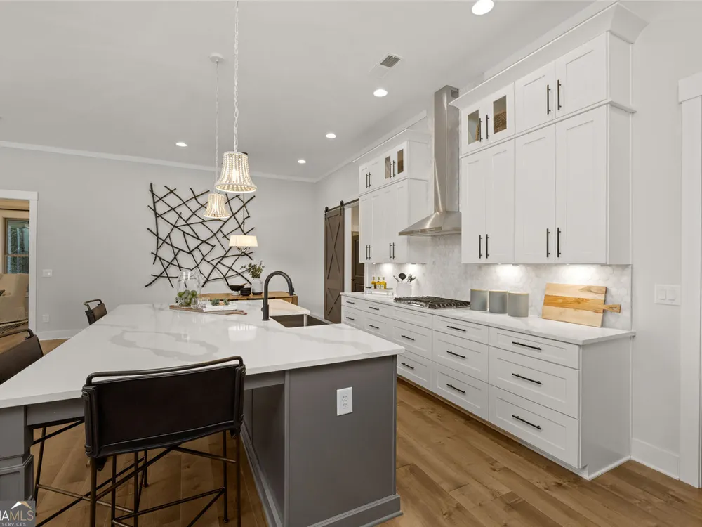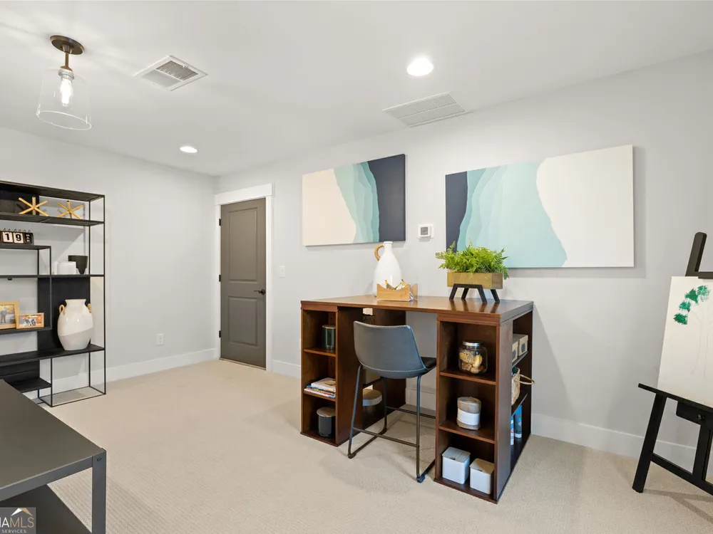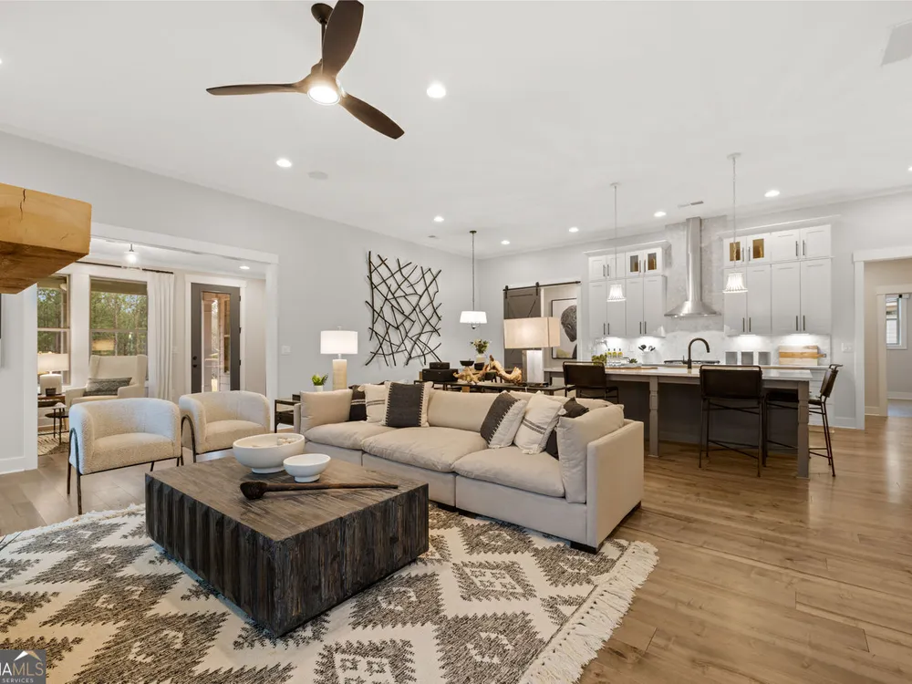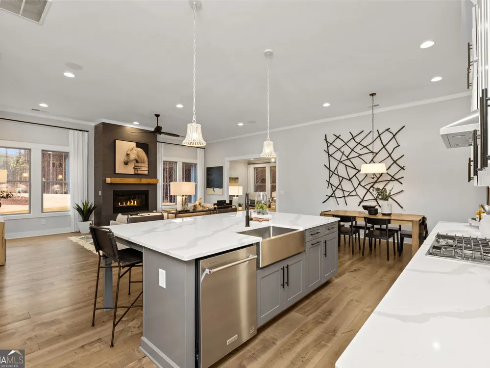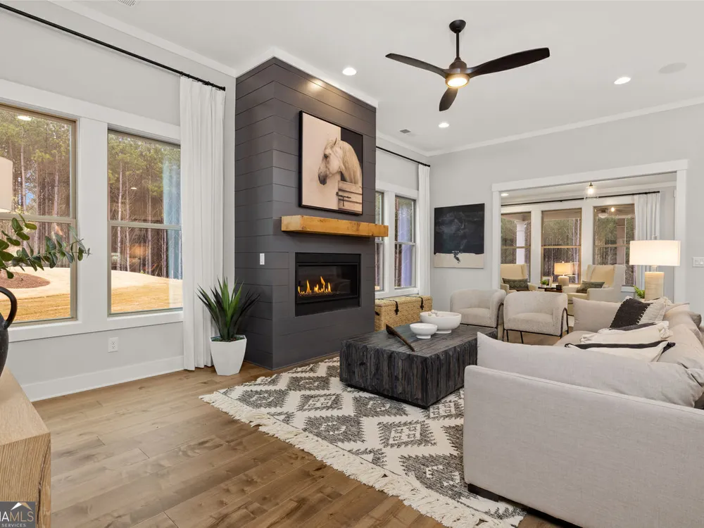 Pearson C plan. This 2 bed 2 1/2 bath is main floor living at its best. It includes a dining room, study, kitchen with large island that opens to the family room and breakfast room. The primary bedroom includes a sitting bay and bath with a huge walk-in closet that also has access to the laundry room. Secondary bedroom includes a walk in closet and easy access to hall bath. A sunroom in the living room that leads to a covered porch with an additional grilling patio. As well as a golf cart garage door. The Award-Winning Builder, Patrick Malloy Communities, provides an Award Winning 55 plus community project, Soleil Belmont Park. It features 471 low maintenance homes situated on large home sites. Located between the picturesque towns of Milton and Canton, Soleil Belmont Park provides a dream setting for active adults aged 55 and above. The Soleil brand has redefined active adult living in Georgia with its resort style of living. Residents of Soleil Belmont Park are privy to an array of amenities: a rejuvenating resort-style pool, a cutting-edge health & fitness center, a cozy coffee and cocktail bar, pickleball/tennis courts, bocce ball, a gourmet kitchen for catering, winding walking trails, flourishing gardens, and a dedicated arts & crafts studio. Further enriching the experience, an on-site lifestyle and travel director ensures an ever-evolving calendar of events and excursions. Joining the Soleil community means bidding adieu to seasonal chores and property upkeep. We offer comprehensive services, allowing residents the freedom to chase passions, kindle friendships, and truly relish life. For the discerning active adult, Soleil Belmont Park isn't just a community, its home. *DISCLAIMER* Photos shown are of the furnished model home and are for illustrative purposes only. Actual finishes, features, and upgrades may vary in this specific home.