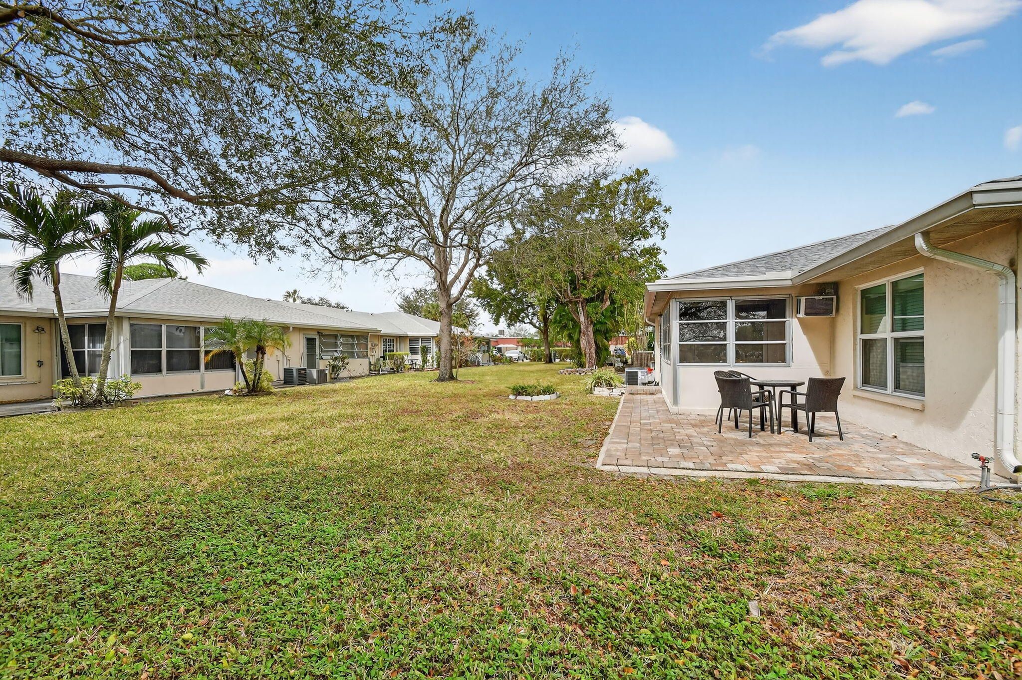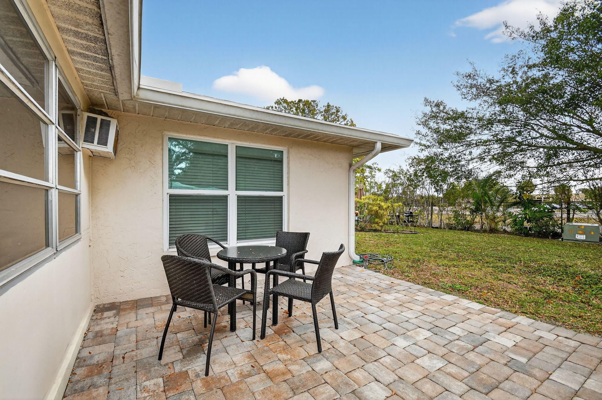 Charming Updated Home with Outdoor Patio Retreat. Step into comfort and style in this beautifully updated 2-bedroom, 2-bath residence with updated kitchen, recently painted, stylish redesigned guest bathroom and for the primary bathroom a walk in shower. Enjoy the spacious living room freshly painted combined with dining area. French doors open to an enclosed patio that can serve as a cozy den, office, or relaxation space. Continue outside to the outdoor patio, perfect for enjoying the Florida weather with friends. This seamless indoor-outdoor flow makes the home feel like your own personal retreat. Located in the desirable Covered Bridge community, residents enjoy a wealth of amenities including a clubhouse, pools, tennis, pickleball, walking trails and enjoying the enjoying the serene lake views. Shopping, restaurants, golf, theaters, and bus routes are all nearby, and the ocean is about eight miles away. A perfect blend of comfort, convenience is ideal for anyone seeking a fresh, inviting place to call home. Roof Installed 2024.