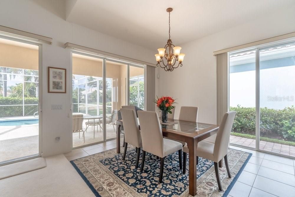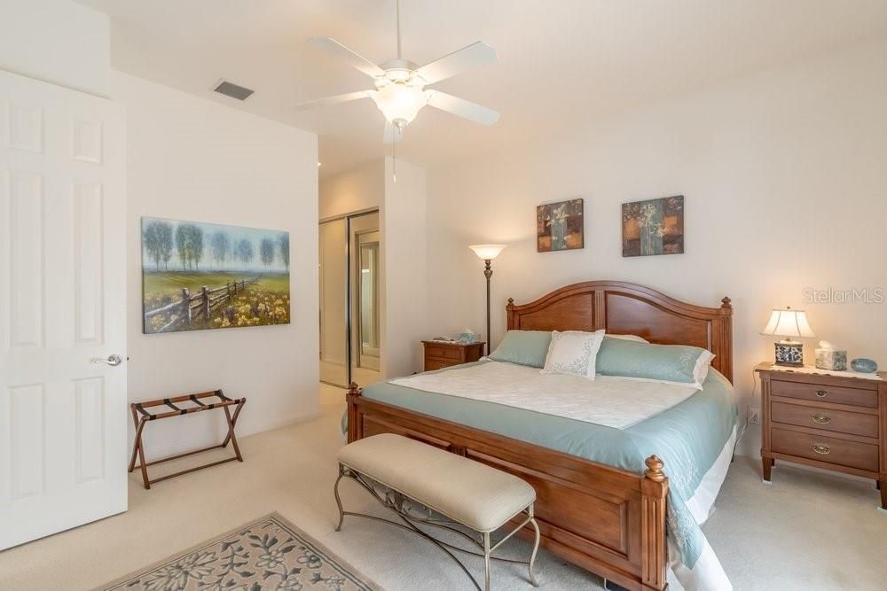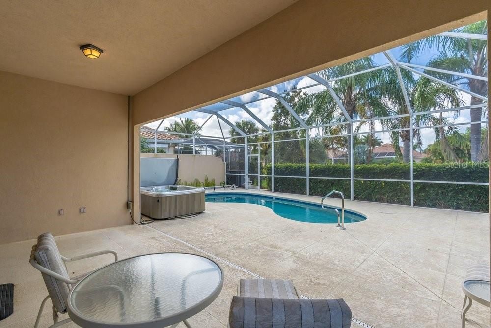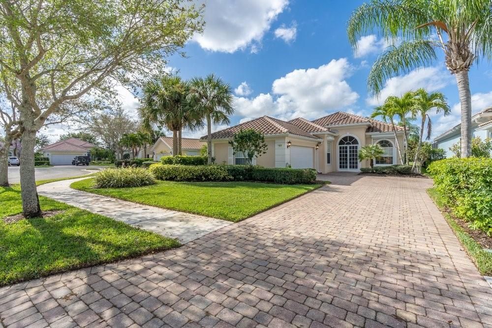 Located in the wonderful community of Verona Walk, this home makes a great first impression the moment you arrive. Lush landscaping, mature palms, a paver driveway, and a classic tile roof all add to the attractive curb appeal. An enclosed front porch welcomes you in, with beautiful arched French doors leading into the home. Inside the foyer you’ll notice the high ceilings and bright, airy feel right away, with neutral paint tones and plenty of natural light throughout. Just off the entry is a den that would make an ideal home office, conveniently connected to the kitchen. The kitchen offers white cabinetry, Corian countertops, and opens to the main living and dining areas. Large sliding doors bring in lots of light and provide a nice view of the pool area out back. The dining area offers plenty of space for gatherings, and the living room features built-in cabinetry and additional sliding doors leading to the patio and pool. The home has a comfortable split bedroom layout, with two nicely sized guest bedrooms and a full bath on one side of the home and the spacious primary suite privately located on the other. The primary bedroom includes sliding doors to the patio, two walk-in closets, and a large bath with dual vanities, a shower, and a relaxing garden tub. Additional features include an indoor laundry room with cabinetry and a utility sink, along with direct access to the attached two-car garage. The home is also equipped with electric hurricane shutters that can be closed with the push of a button for added convenience and peace of mind. Out back, the screened enclosure offers a covered patio area, an above-ground spa, and a private in-ground pool, with a hedge just beyond the screen that adds an extra sense of privacy—an ideal setting to enjoy the Florida lifestyle. Motivated seller!