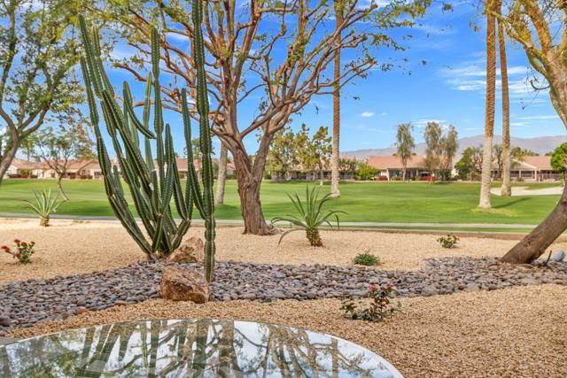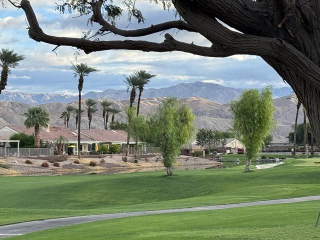Amazing opportunity in Sun City Palm Desert! One of the best values on a premium lot with awesome golf course and mountain views. This 2 bedroom plus den, 2 bathroom home is perfectly positioned to take in the stunning views from the spacious covered back patio - ideal for morning coffee or evening sunsets. Bring your contractor and make this your dream home. Step inside to a light-filled, San Carlos floor plan with high ceilings and thoughtful design throughout. The kitchen features a sit-up bar, ample storage and a breakfast nook which flow into the family room with cozy fireplace and built-in shelving. The flexible den/office space offers additional functionality and can be easily made into a 3rd bedroom. There is a double door entry into the spacious primary suite with sliding door to the back yard. The primary bathroom has double sinks, walk-in closet, soaking tub and separate shower. Enjoy a second private outdoor space with a charming enclosed front courtyard - perfect for relaxing or greeting neighbors. The home also includes a 2 car extended garage for a larger vehicle or extra storage. Come experience the best of desert living with golf, pools, tennis, pickleball, fitness centers, dining and endless social activities - all within a welcoming community.