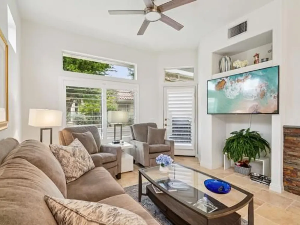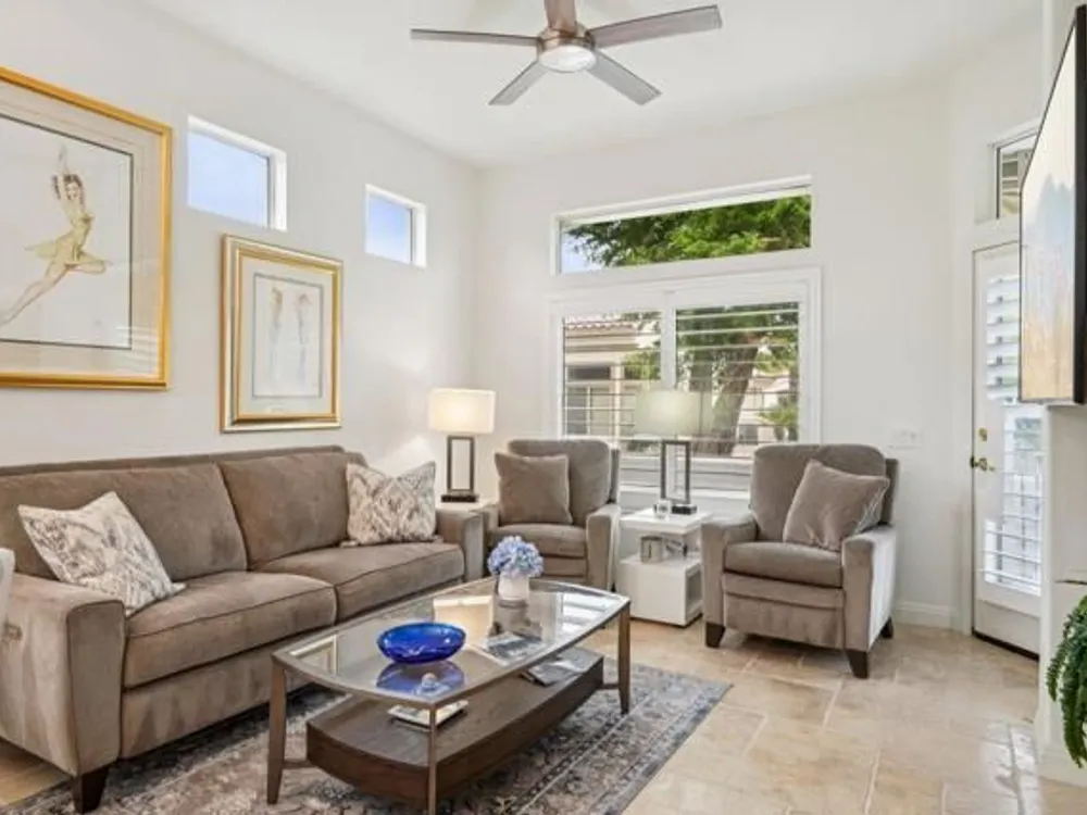 Welcome to 78259 Yucca Blossom Drive, a beautifully refreshed residence nestled in the heart of Sun City. This thoughtfully updated home blends timeless charm with modern sophistication, offering a lifestyle of comfort and elegance.Step inside to discover fresh interior paint that brightens every room, complemented by newly installed plantation shutters throughout adding both style and privacy. The kitchen is a true standout, featuring sleek new porcelain countertops and a brand-new gas cooktop, replacing the previous electric setup for enhanced performance.Every detail has been tastefully curated to elevate daily living, from the refined finishes to the seamless flow of the floor plan. Whether you're entertaining guests or enjoying a quiet evening in, this home provides the perfect backdrop for gracious living.Don't miss the opportunity to own this move-in-ready gem in one of the desert's most desirable communities.
