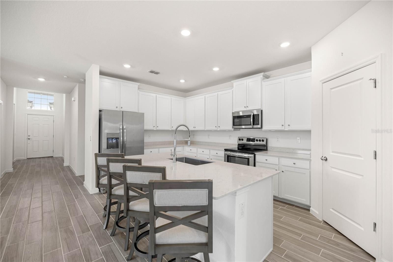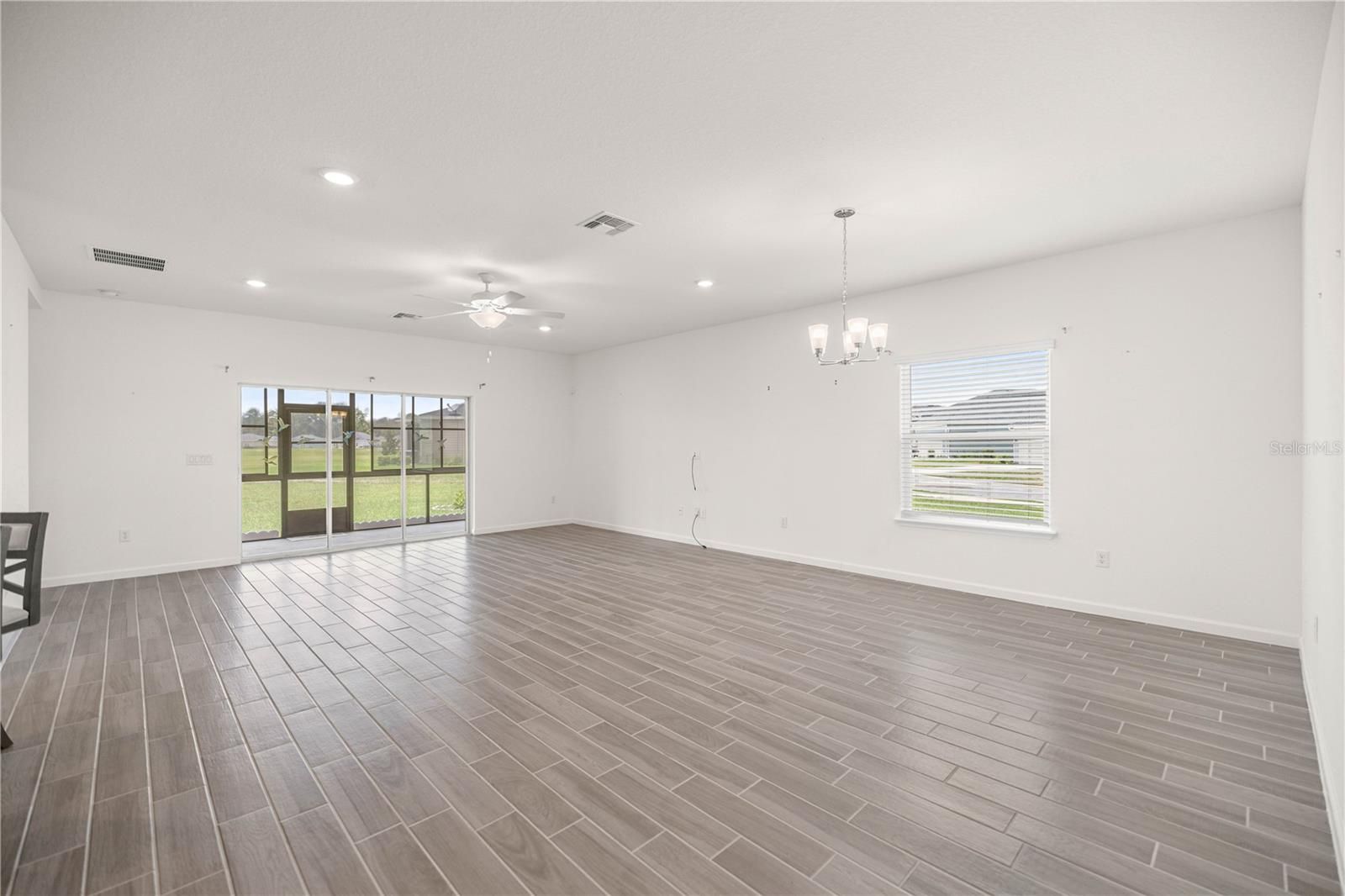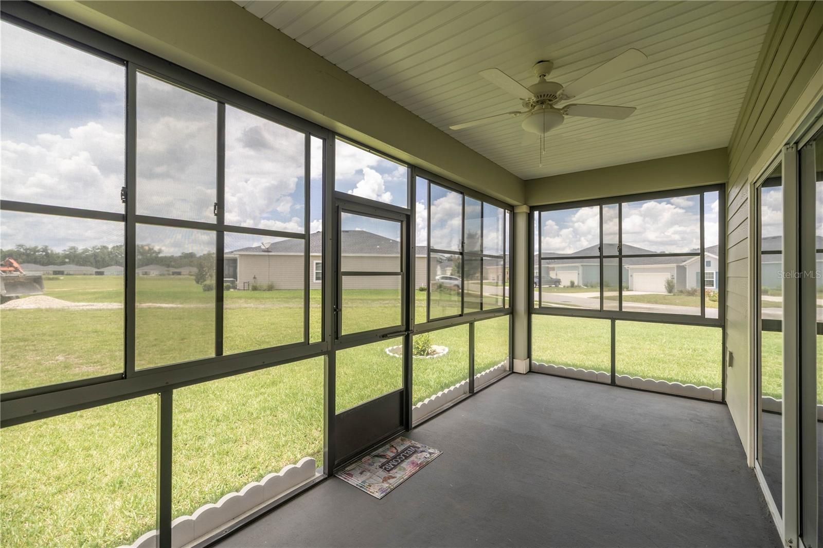 This beautifully upgraded home combines elegance, functionality, and comfort, perfectly designed for active adults aged 55 and better. Situated on a premium corner lot over a quarter acre, this residence features a spacious open-concept layout ideal for both relaxing and entertaining. The heart of the home is the gourmet kitchen, showcasing white 42” cabinets with crown molding, quartz countertops, and a center island—a stylish and practical space that flows effortlessly into the dining nook and gathering room. A rolling wall of glass doors opens to the covered, screened-in lanai, offering the perfect setting for indoor-outdoor living and peaceful enjoyment in any season. The thoughtfully designed layout includes a private owner’s suite tucked away at the rear of the home, a guest bedroom off the foyer, and a flex room ideal for an office, craft room, or hobby space. Located in a brand-new master-planned 55+ community, this home offers not only comfort but also a lifestyle of convenience and luxury. Just minutes from medical facilities, shopping, dining, and only 15 minutes from the World Equestrian Center and Sholom Park, this is a rare opportunity to live in a vibrant, growing area known for its beauty and accessibility.