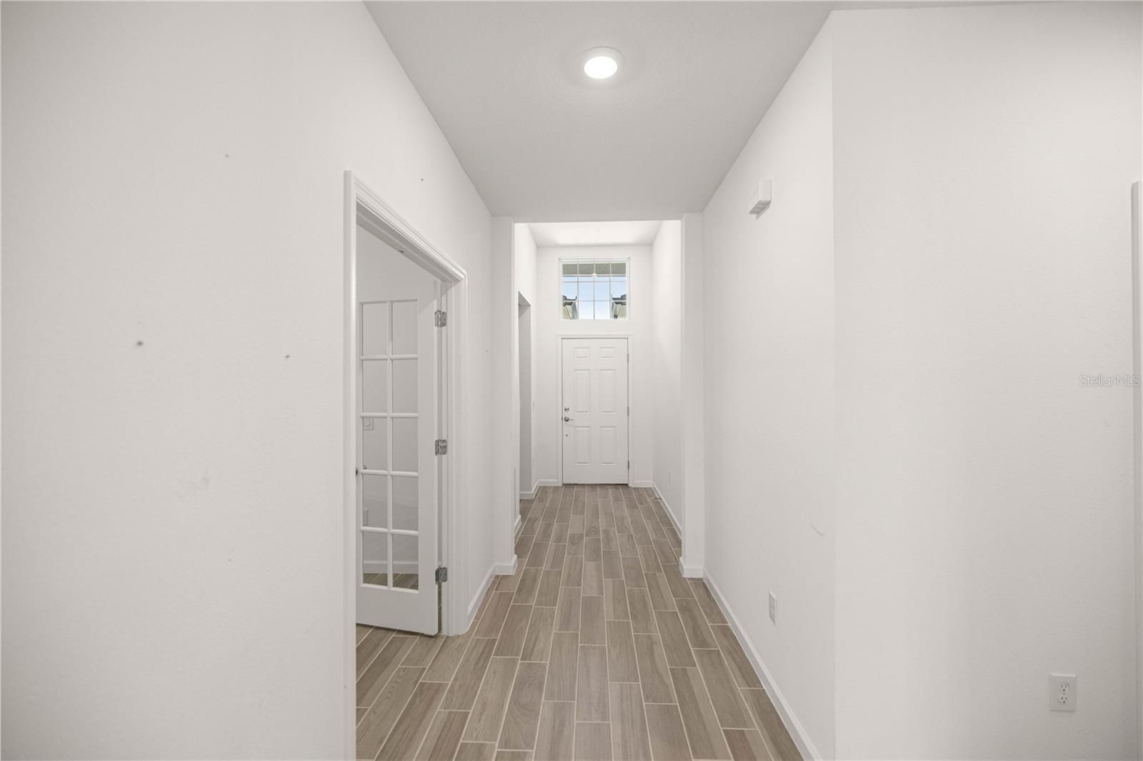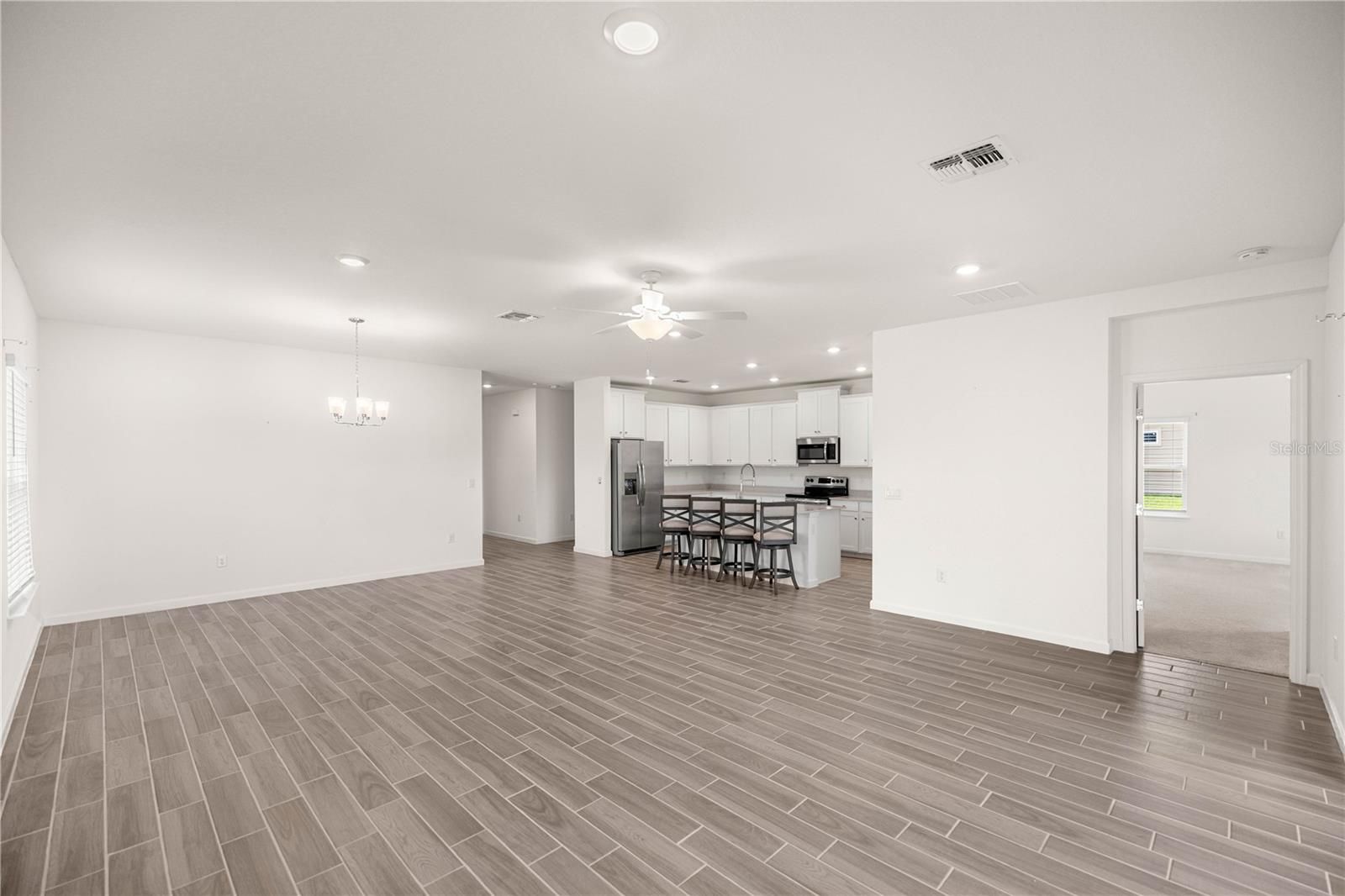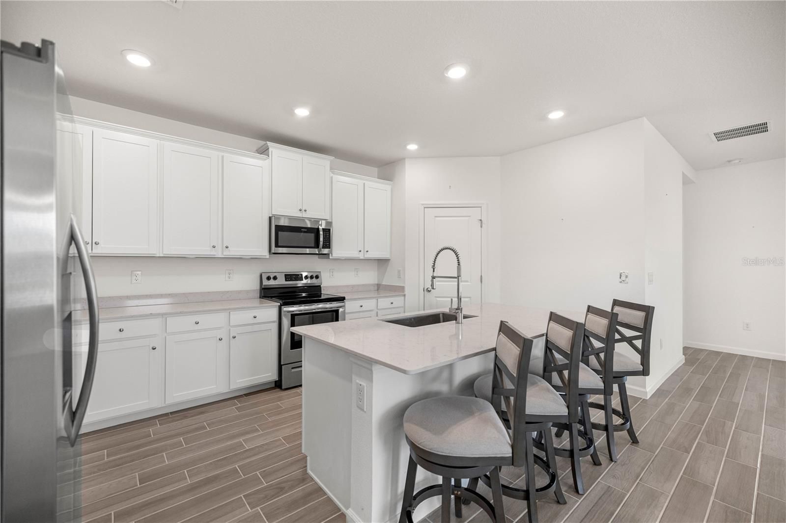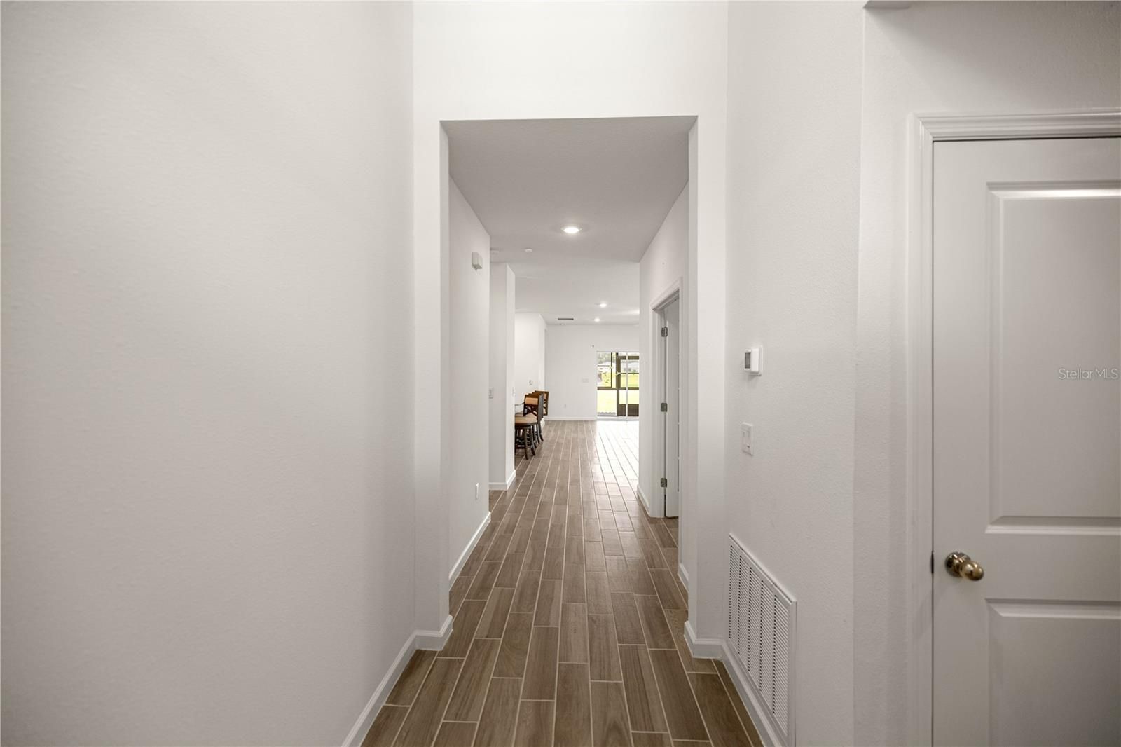 This beautifully upgraded home combines elegance, functionality, and comfort, perfectly designed for active adults aged 55 and better. Situated on a premium corner lot over a quarter acre, this residence features a spacious open-concept layout ideal for both relaxing and entertaining. The heart of the home is the gourmet kitchen, showcasing white 42” cabinets with crown molding, quartz countertops, and a center island—a stylish and practical space that flows effortlessly into the dining nook and gathering room. A rolling wall of glass doors opens to the covered, screened-in lanai, offering the perfect setting for indoor-outdoor living and peaceful enjoyment in any season. The thoughtfully designed layout includes a private owner’s suite tucked away at the rear of the home, a guest bedroom off the foyer, and a flex room ideal for an office, craft room, or hobby space. Located in a brand-new master-planned 55+ community, this home offers not only comfort but also a lifestyle of convenience and luxury. Just minutes from medical facilities, shopping, dining, and only 15 minutes from the World Equestrian Center and Sholom Park, this is a rare opportunity to live in a vibrant, growing area known for its beauty and accessibility.