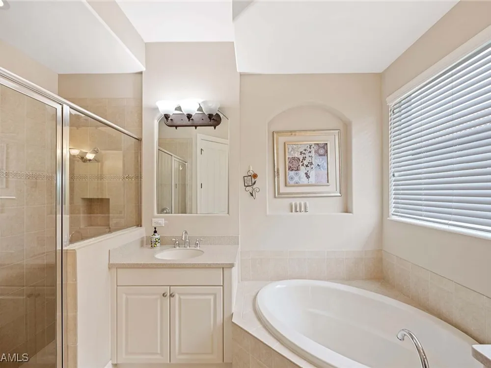 - Bathtub, Tray Ceiling(s), Separate/Formal Dining Room, Dual Sinks, Pantry, Split Bedrooms, Separate Shower