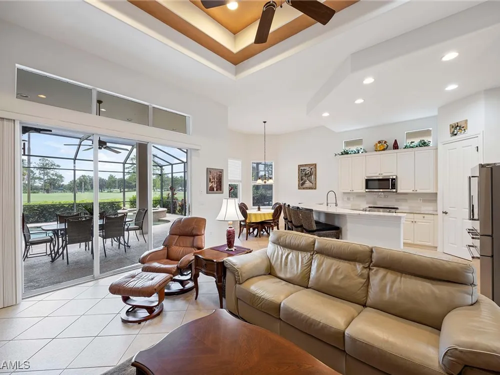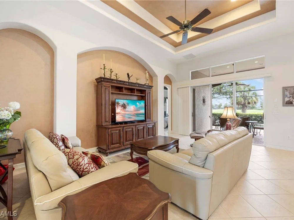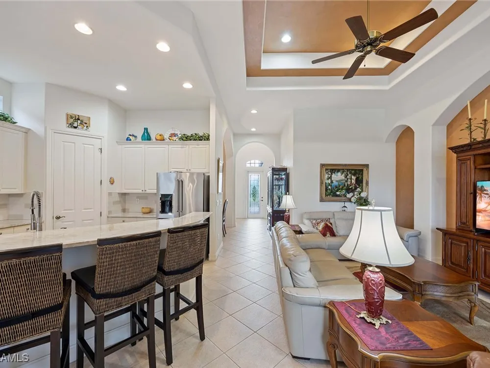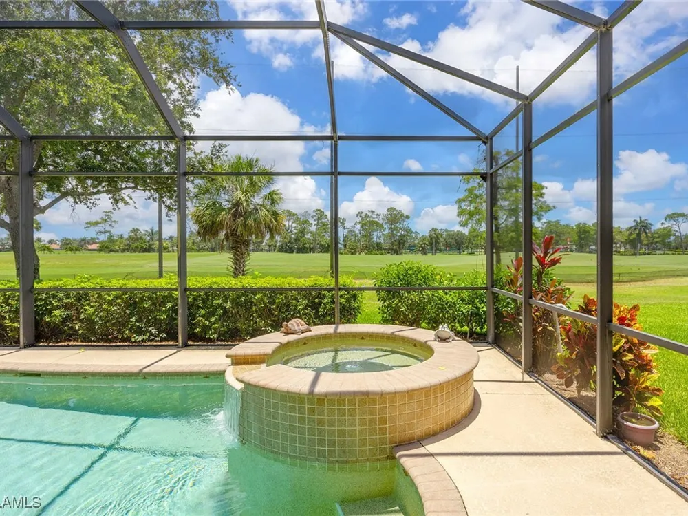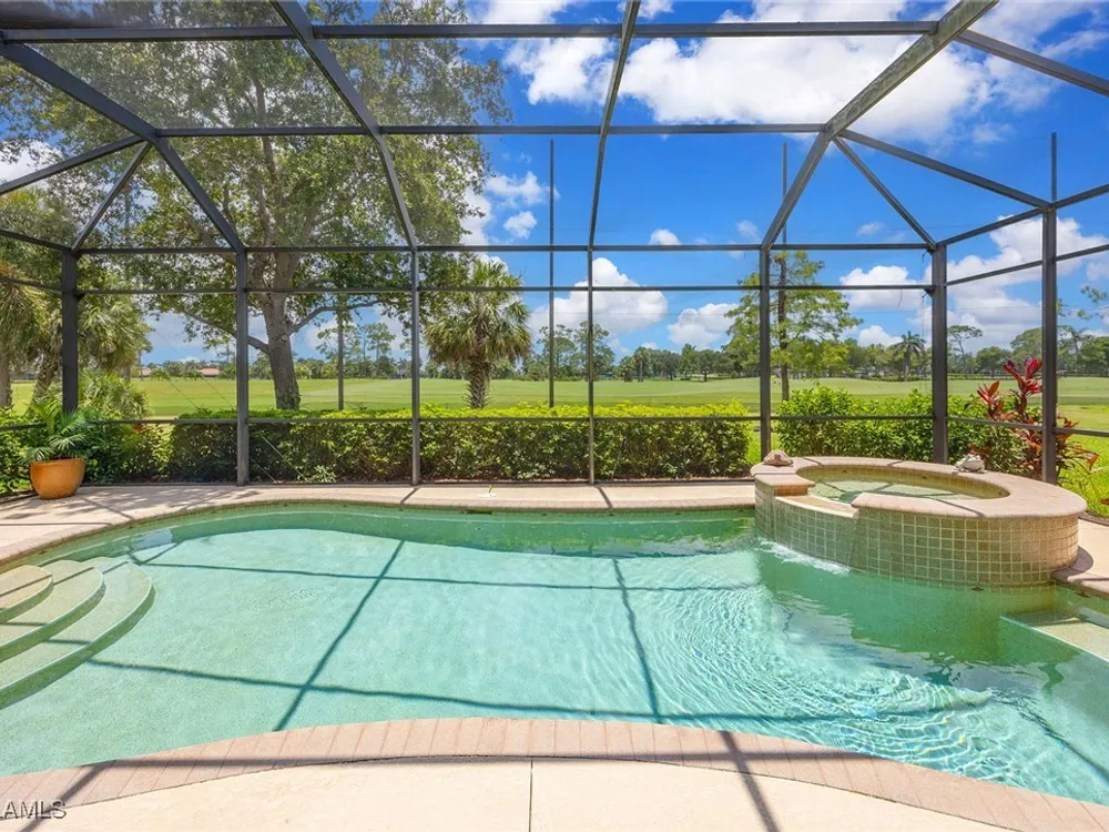 Come home to a well-maintained and updated, Stock Tivoli model, pool home in the gated community of Ashton Place. This bright and airy home boasts scenic views of the Classics Golf course driving range, so no carts intruding on your privacy while you relax in your heated pool or enjoy your spa. This home’s many features include three spacious bedrooms, a den, formal dining room and kitchen open to the great room. The kitchen has been upgraded with mesmerizing, marbled quartzite countertops, and stainless appliances that include a convection range. The front door has decorative impact glass for additional natural light. The guest bath has also been given a facelift. Hard flooring throughout, the living area has diagonal tile and bedrooms have luxury vinyl. There are tray ceilings complementing their height, and custom window treatments. The primary bath features a decorative listello in the spacious shower. This home includes deeded membership to the award-winning Players Club and Spa. The club is considered to be the gold standard in resort community recreation and features three pools, 13 tennis courts, four pickleball, four bocce courts, an attended fitness center and full-service spa. The two club restaurants offer indoor and outdoor casual and elegant dining. Lely Resort is conveniently close to all amenities, restaurants and beaches of Marco Island and downtown Naples.
