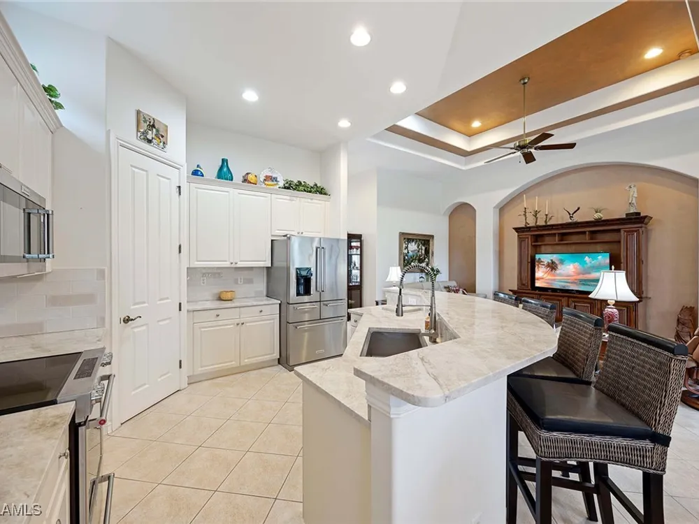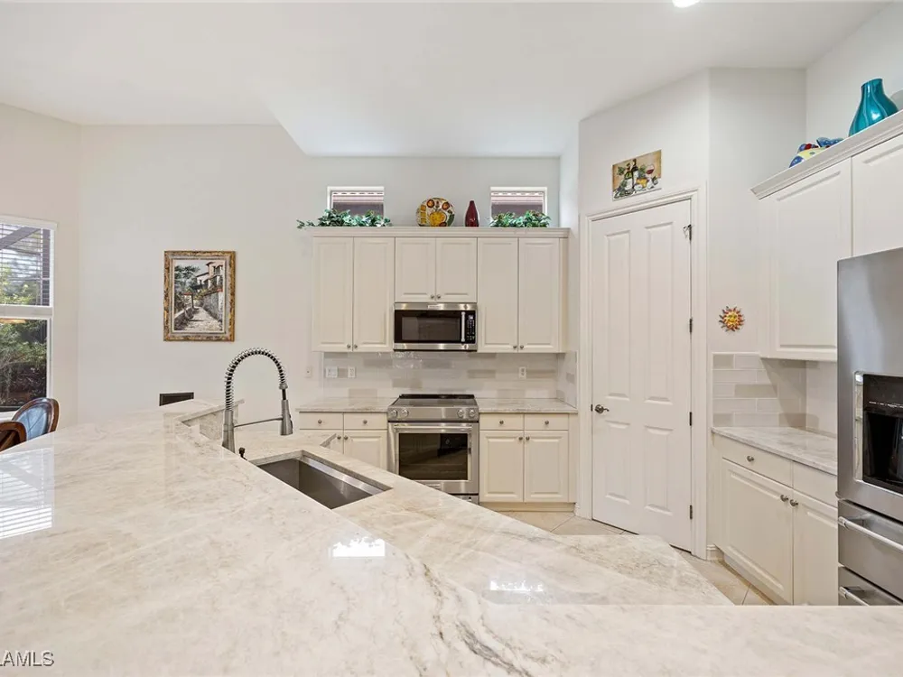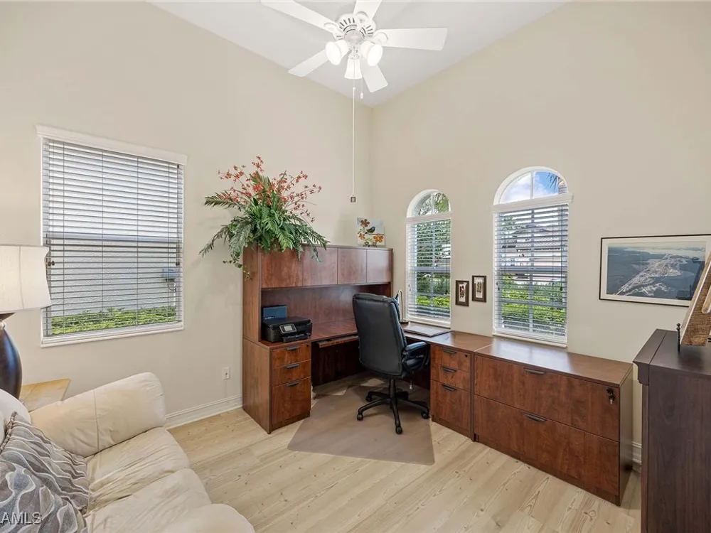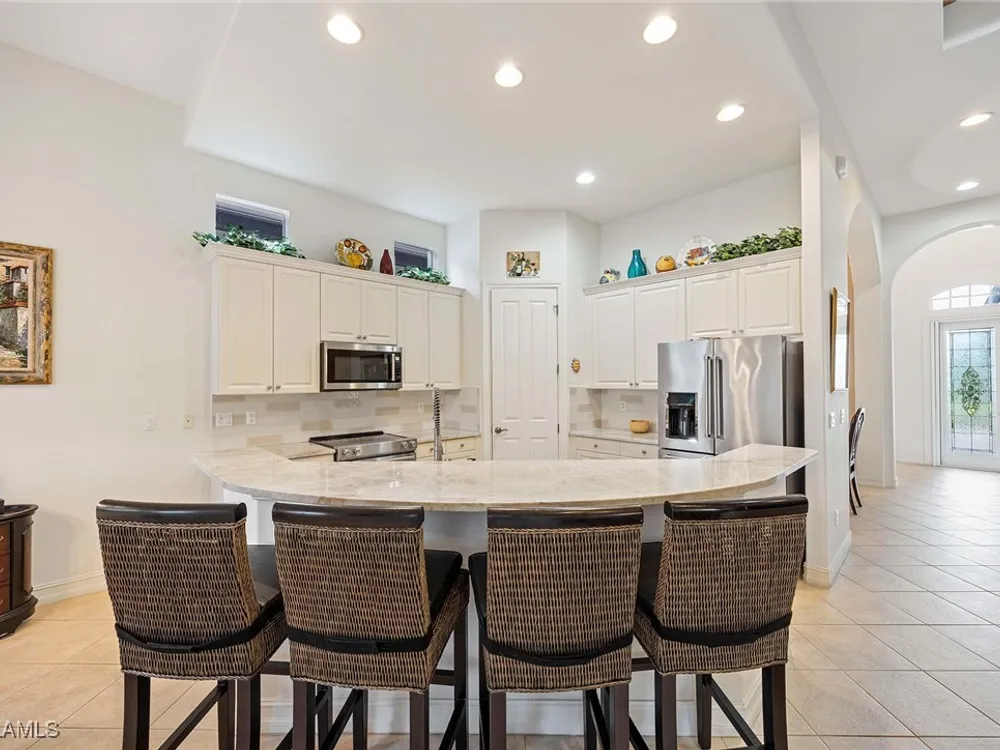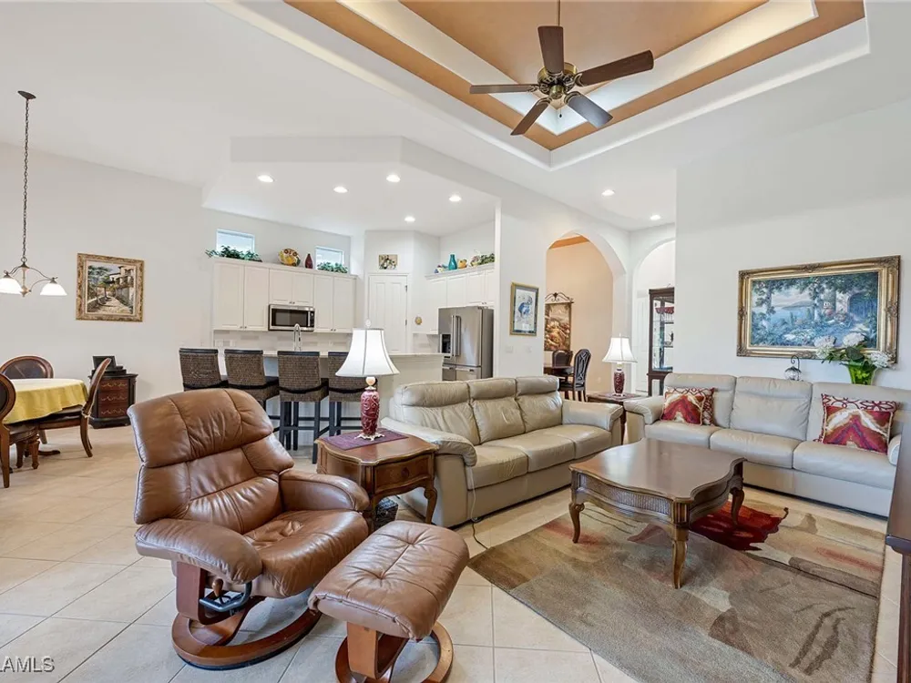 Come home to a well-maintained and updated, Stock Tivoli model, pool home in the gated community of Ashton Place. This bright and airy home boasts scenic views of the Classics Golf course driving range, so no carts intruding on your privacy while you relax in your heated pool or enjoy your spa. This home’s many features include three spacious bedrooms, a den, formal dining room and kitchen open to the great room. The kitchen has been upgraded with mesmerizing, marbled quartzite countertops, and stainless appliances that include a convection range. The front door has decorative impact glass for additional natural light. The guest bath has also been given a facelift. Hard flooring throughout, the living area has diagonal tile and bedrooms have luxury vinyl. There are tray ceilings complementing their height, and custom window treatments. The primary bath features a decorative listello in the spacious shower. This home includes deeded membership to the award-winning Players Club and Spa. The club is considered to be the gold standard in resort community recreation and features three pools, 13 tennis courts, four pickleball, four bocce courts, an attended fitness center and full-service spa. The two club restaurants offer indoor and outdoor casual and elegant dining. Lely Resort is conveniently close to all amenities, restaurants and beaches of Marco Island and downtown Naples.