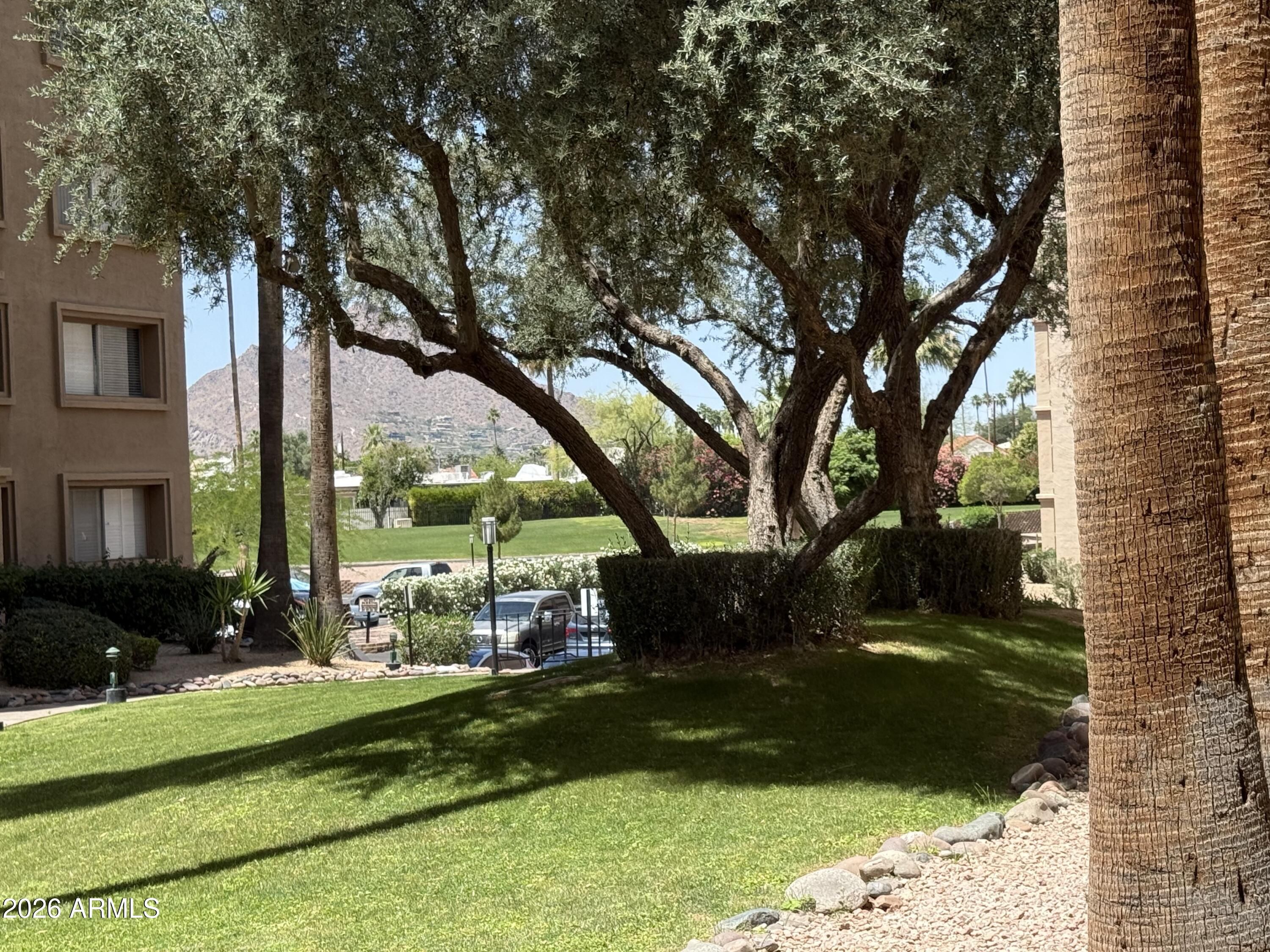 Come home to your private tranquility upon entering this spacious Scottsdale Condo convenientlyl located near picturesque old town Scottsdale and Fashion Square Mall offering a variety of restraurants with your choice of cuisines, shopping and entertainment. This beautifully decorated and remodeled one bedroom ,single level ,first floor condo is nestled within a 24/7 guard gated community and is new to market! Don't miss out on your own personal paradise, with its cozy and relaxing patio overlooking tranquil water fountain and offering mountain views. It's resort living at its finest with 3 pools, spas, saunas, fitness centers, golf, tennis, art & ceramic sudios, fully equpiped woodshop, plus library. Utilites and amenities are included.