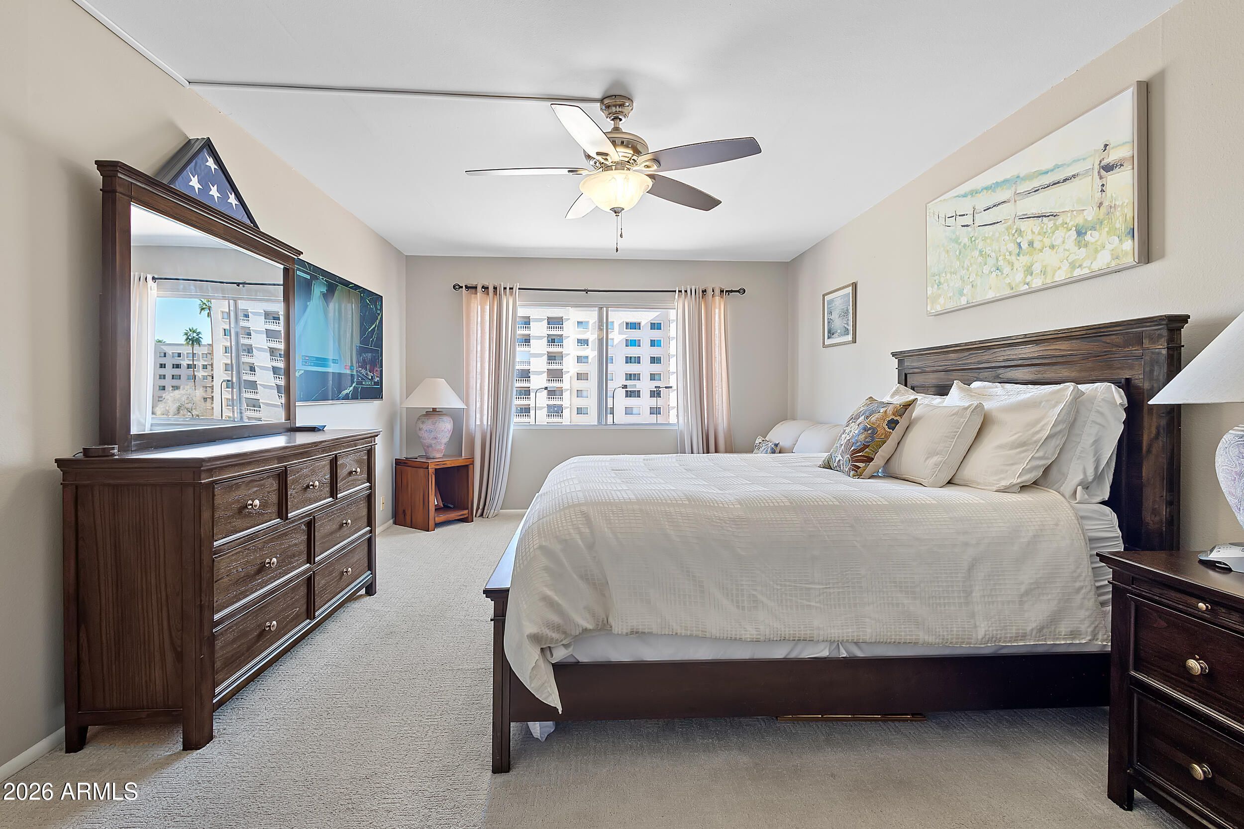 This light, bright, and thoughtfully updated condo offers effortless style and an unbeatable lifestyle - perfect for a first-time homebuyer, downsizer, or seasonal resident seeking lock & leave simplicity. From your living room and private patio, take in beautiful views of the McDowell Mountains and unwind with Arizona sunsets as your backdrop. Inside, the home checks all the boxes with clean neutral finishes, an inviting layout, and a move-in ready feel. The monthly HOA provides exceptional value, covering heat + A/C, water, sewer, trash, and an impressive lineup of amenities - including golf, multiple pools and spas, fitness center, library, art and hobby rooms, tennis, and 24-hour gated security. It is truly resort-style living without the resort-level responsibility.